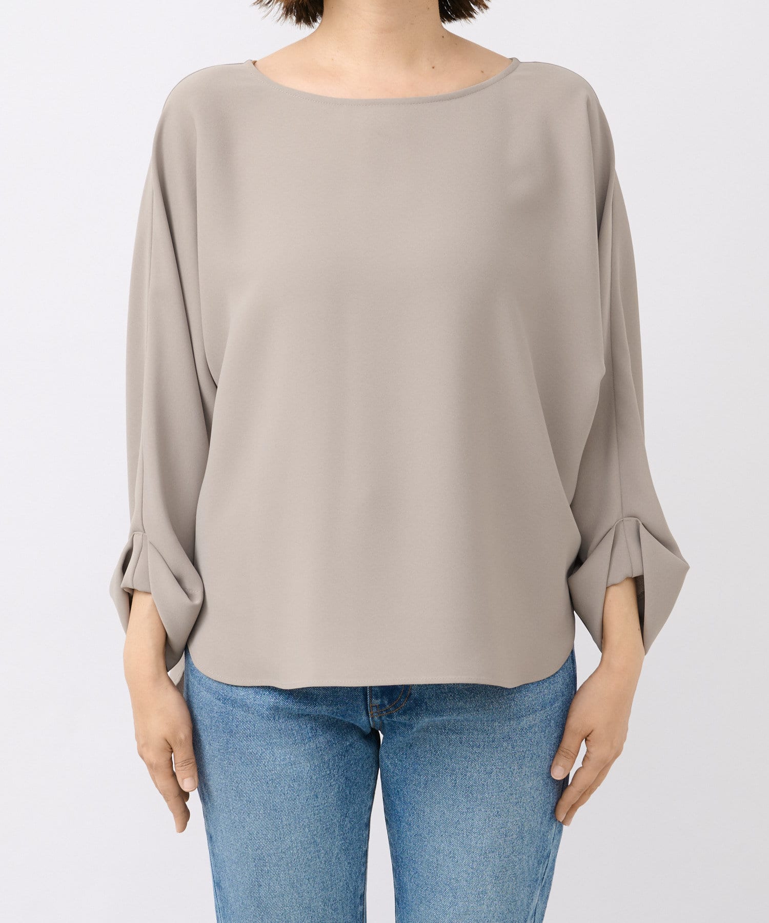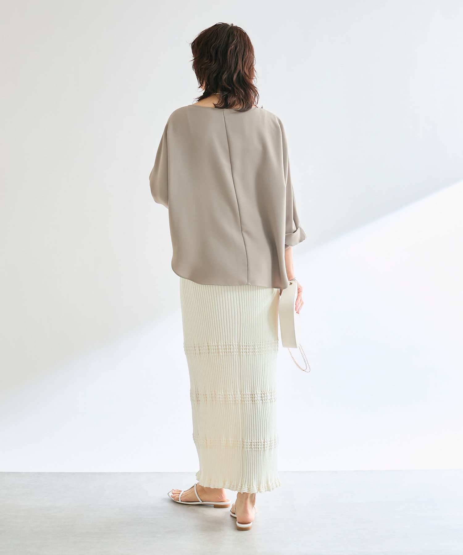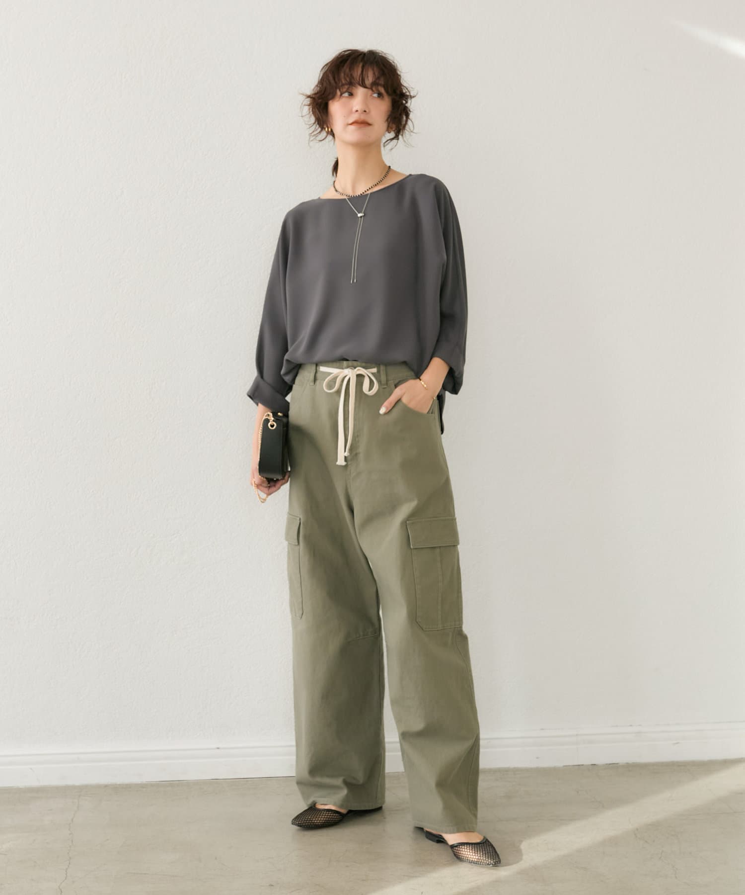 ゆったりとした安心感のあるシルエットとドルマンスリーブで、上半身の華奢見えを叶えます。
