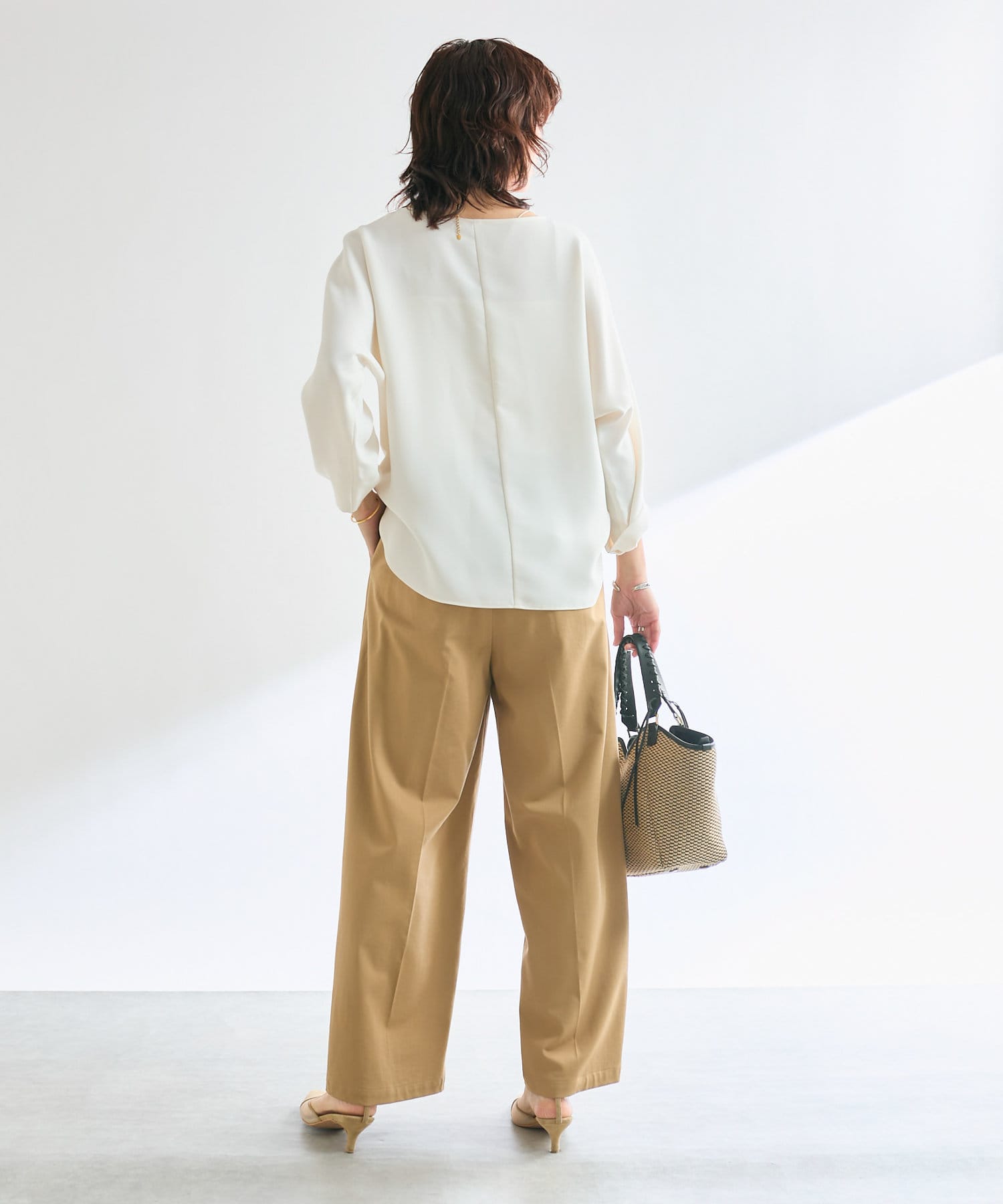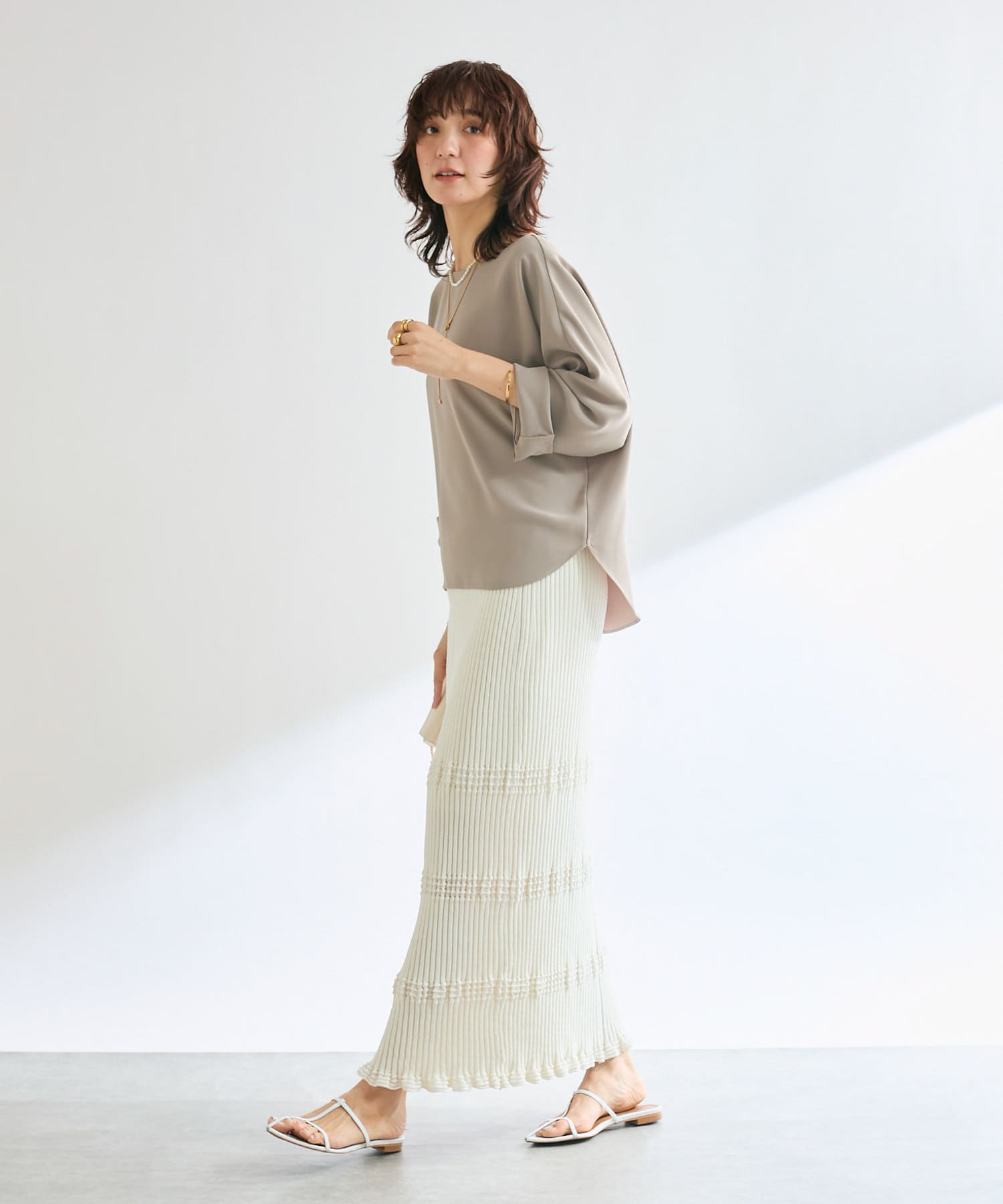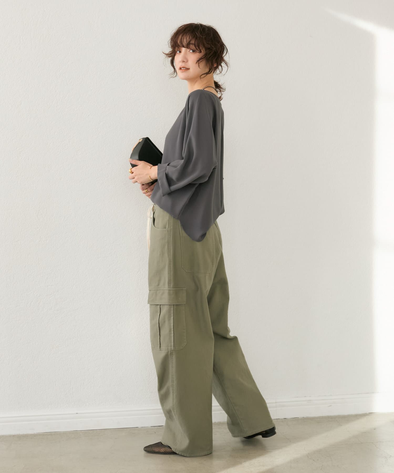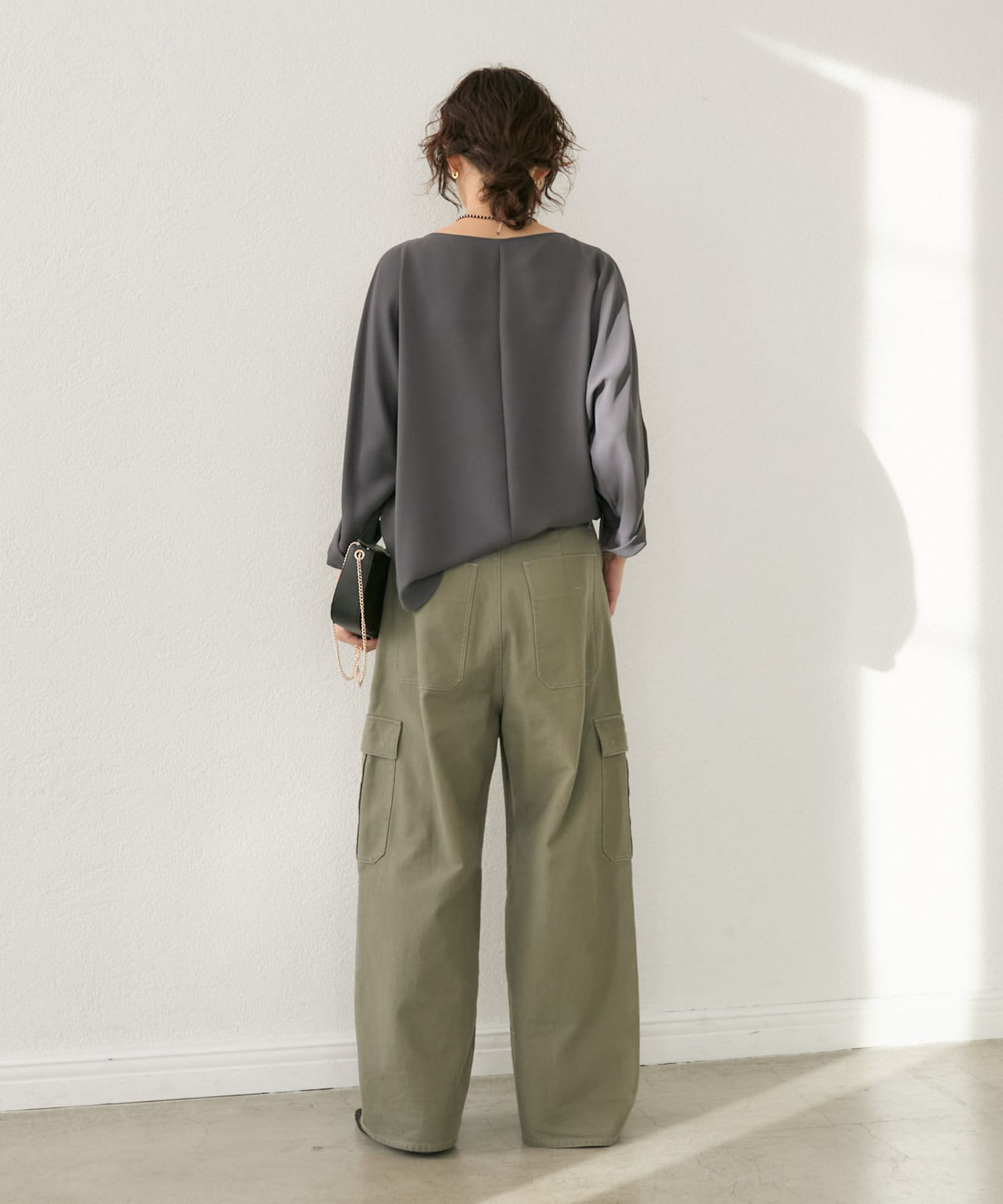 ゆったりとした安心感のあるシルエットとドルマンスリーブで、上半身の華奢見えを叶えます。