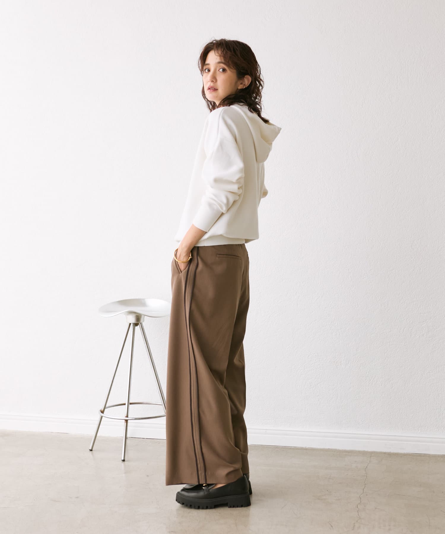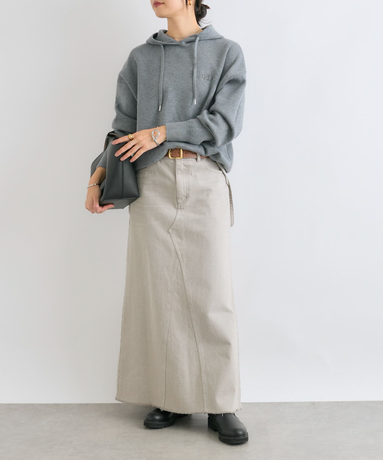 大人な雰囲気のニットフーディ