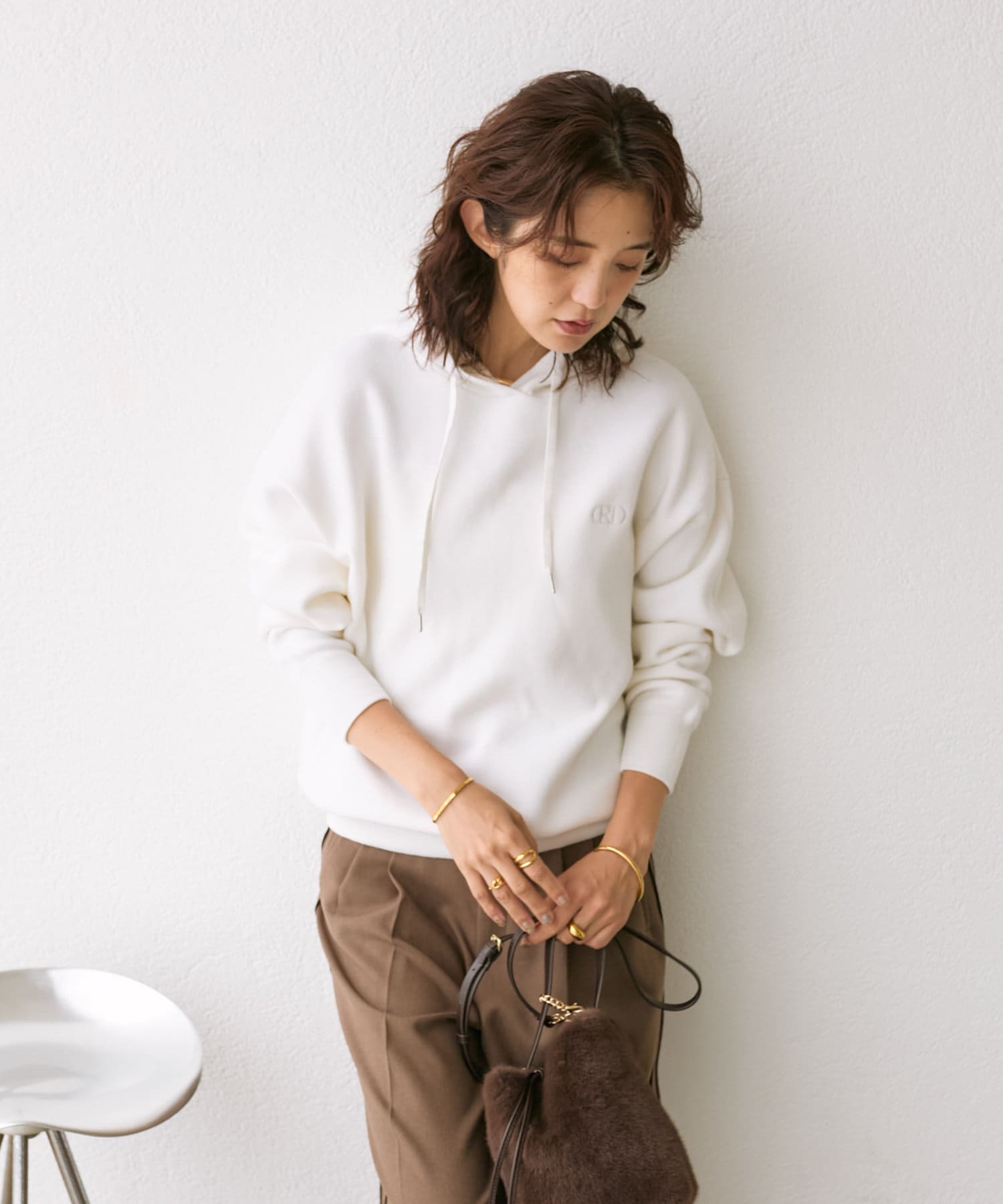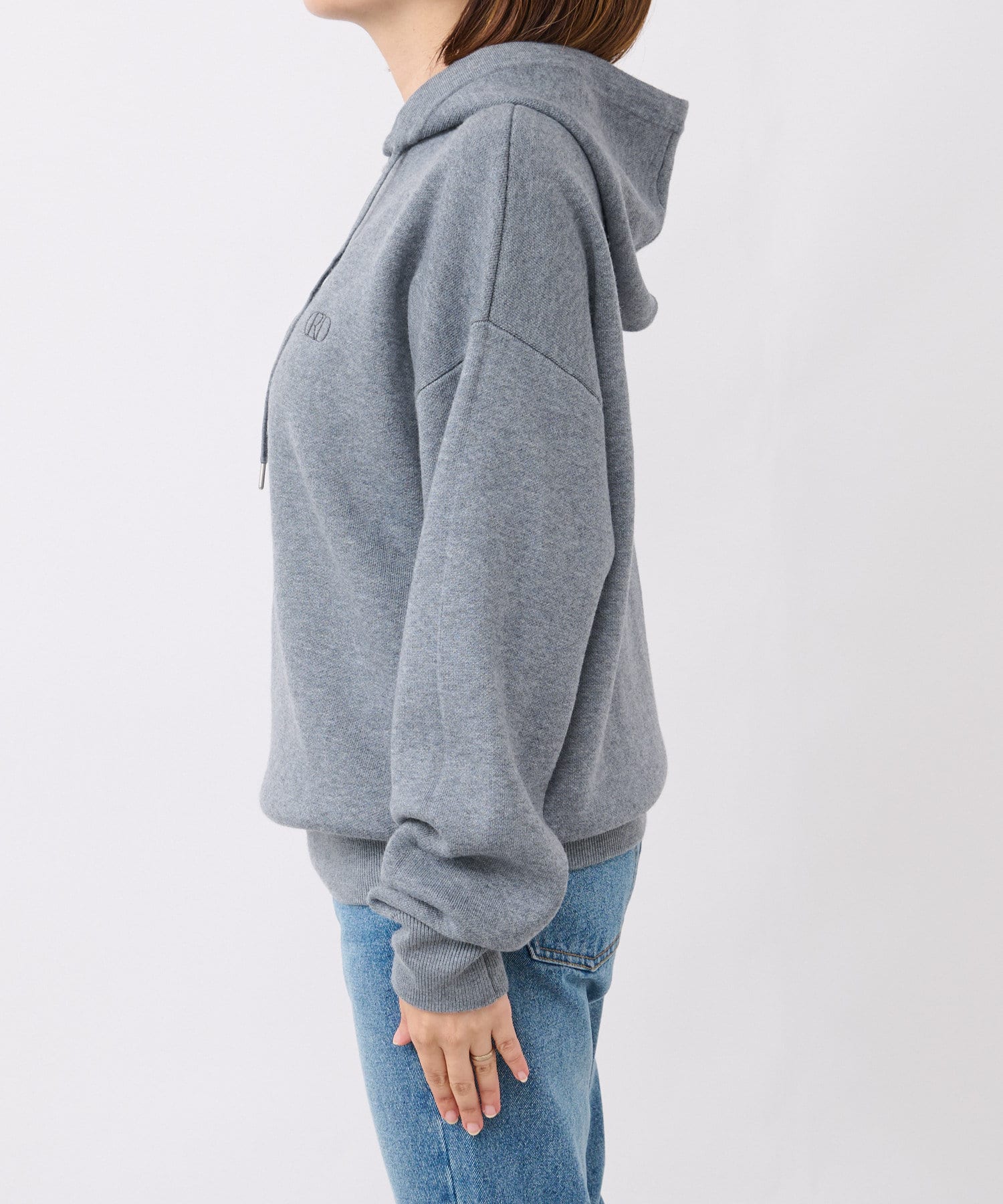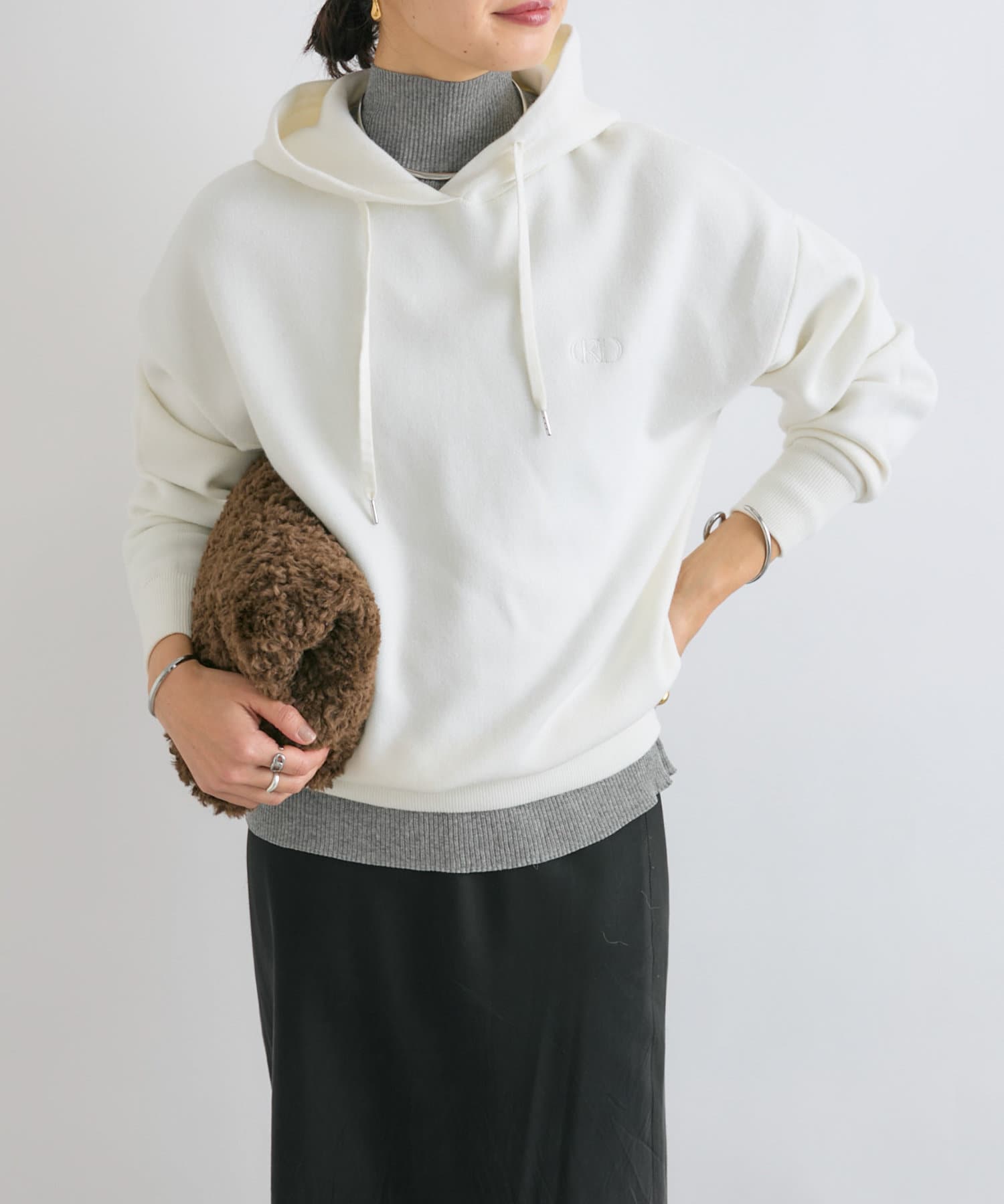 裏毛のスエットにはない高級感のある仕上がりと、左胸のRD(リヴドロワ)マークが光るシンプルで大人なパーカーです。