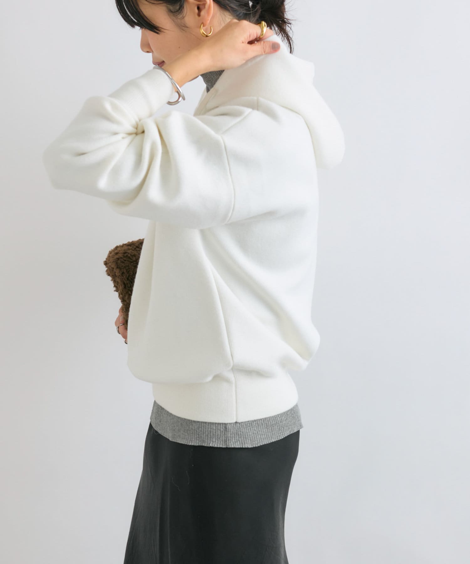 フォルムのある袖や存在感のあるフードも差別化ポイント。