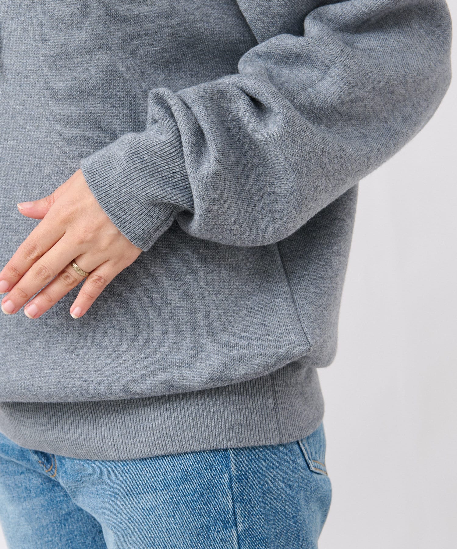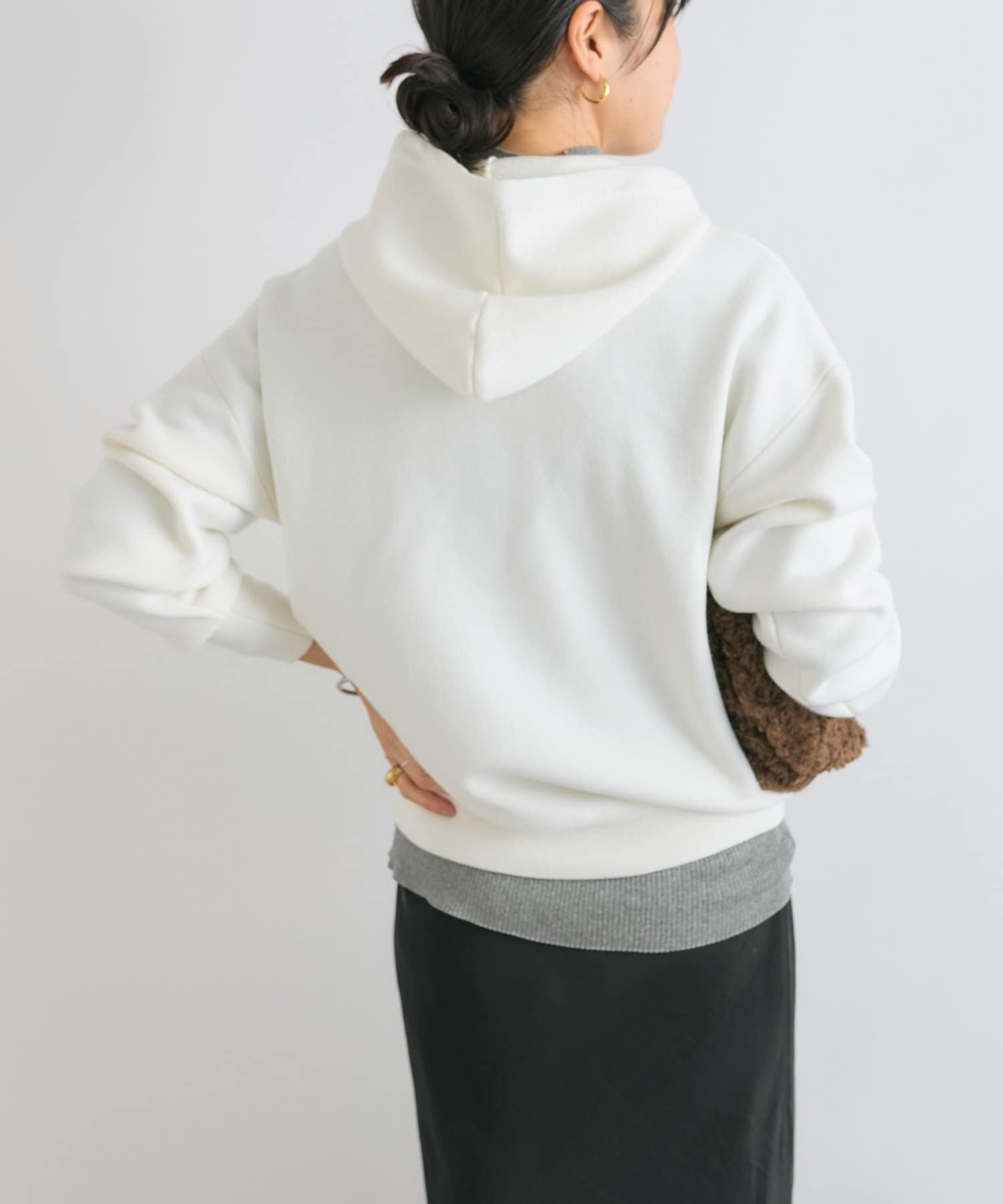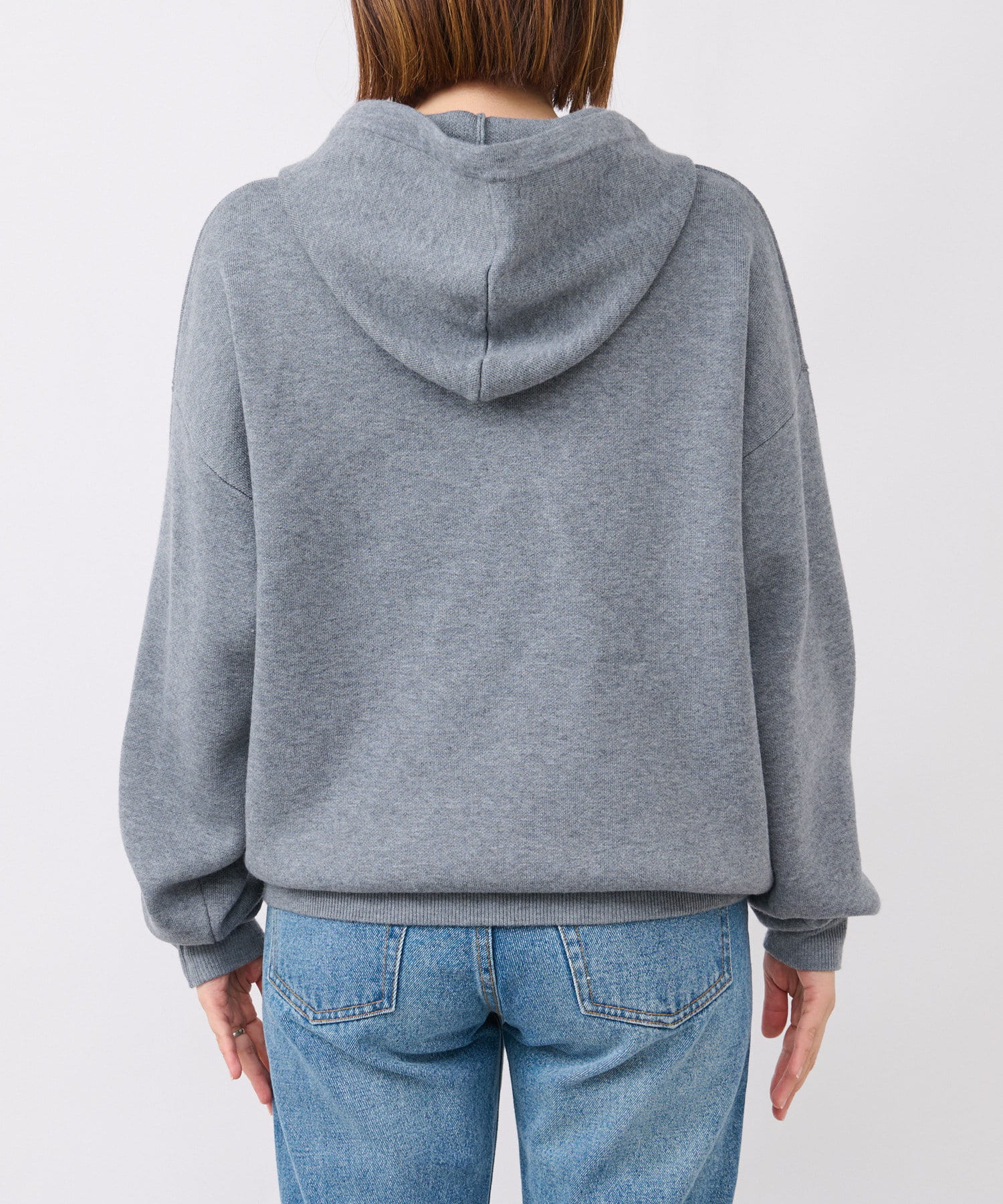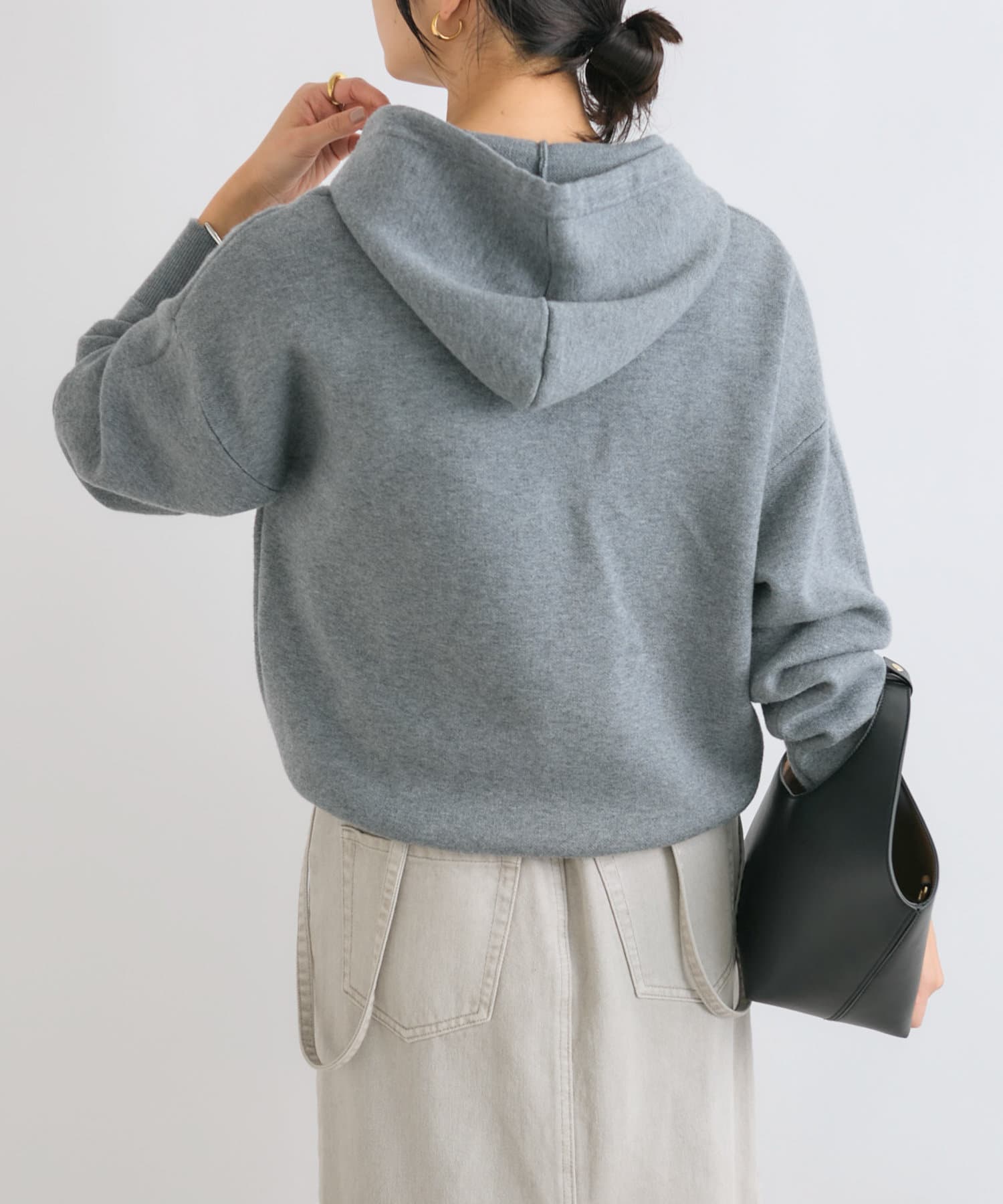 モッチリ、程よく厚みのある編地で作ったニットフーディ。