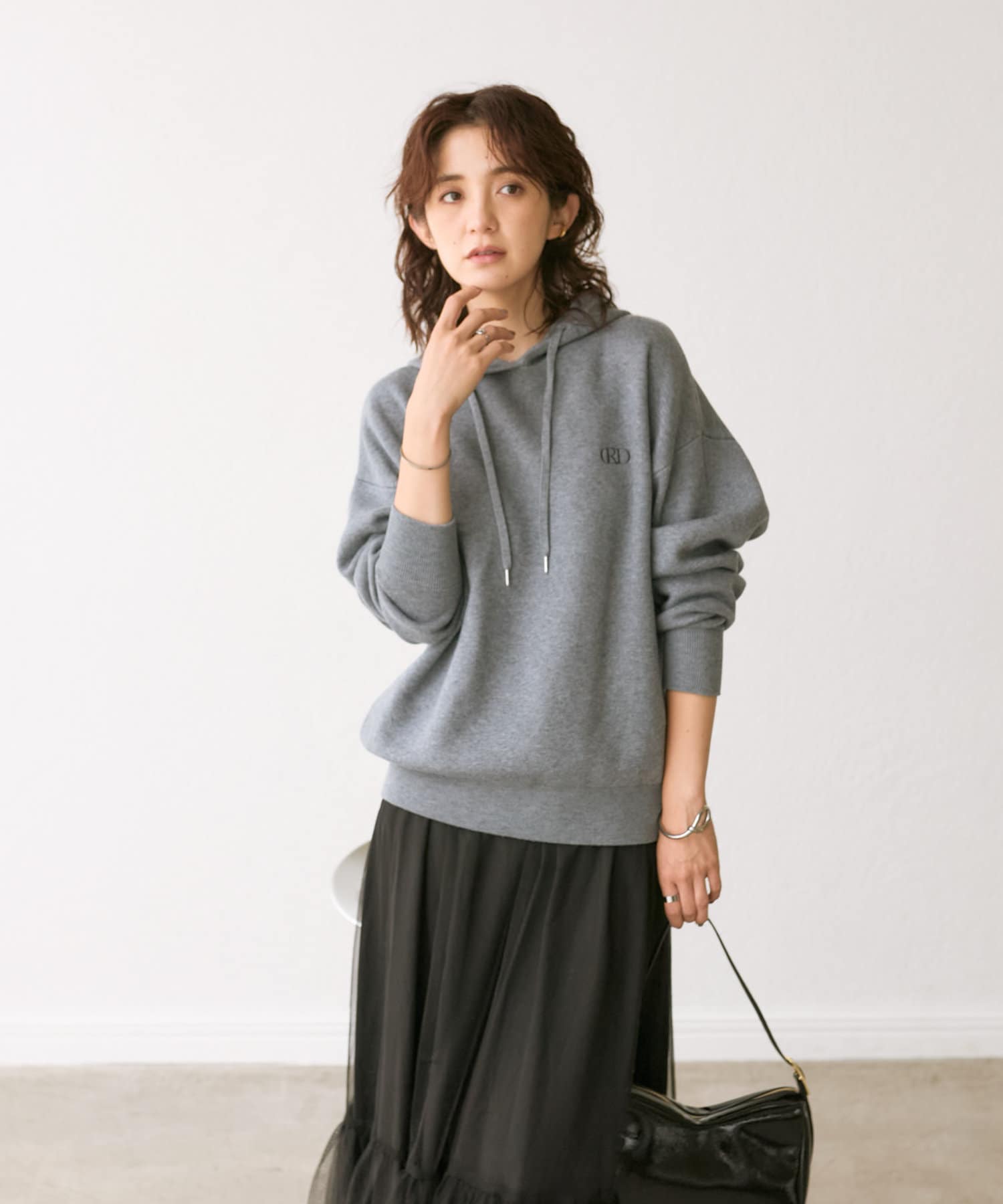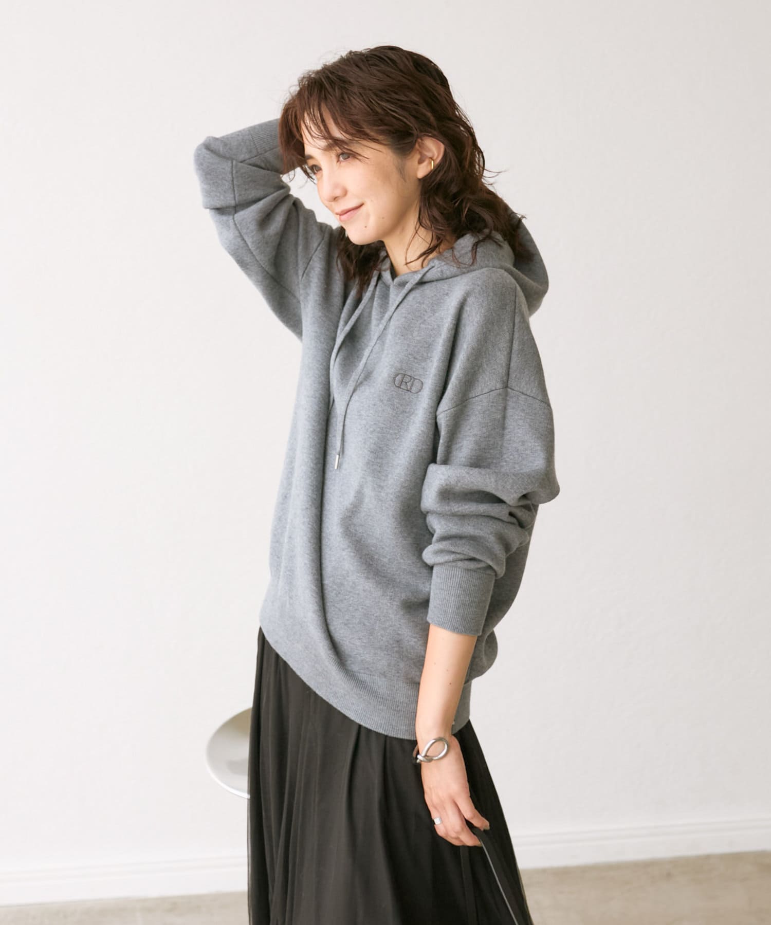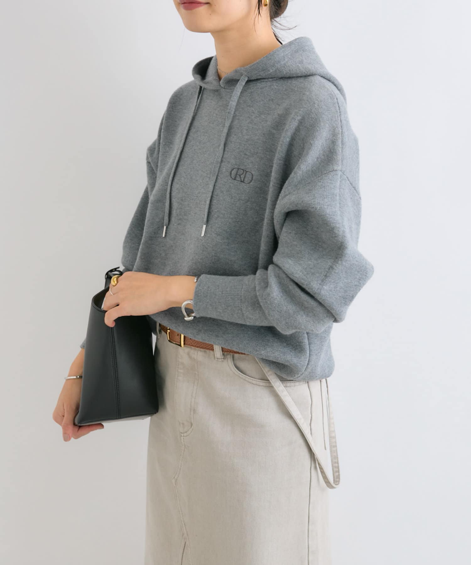 【大人カジュアルに着れる】刺繍ニットフーディ