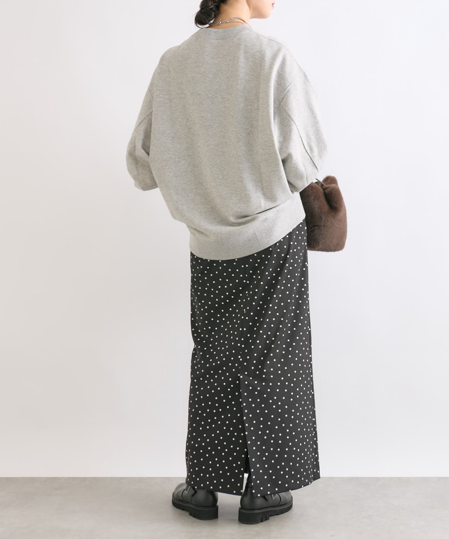 たっぷり目のシルエットですが軽くて薄手なミニ裏毛を使用しているのでゴワつかず、着心地も抜群。