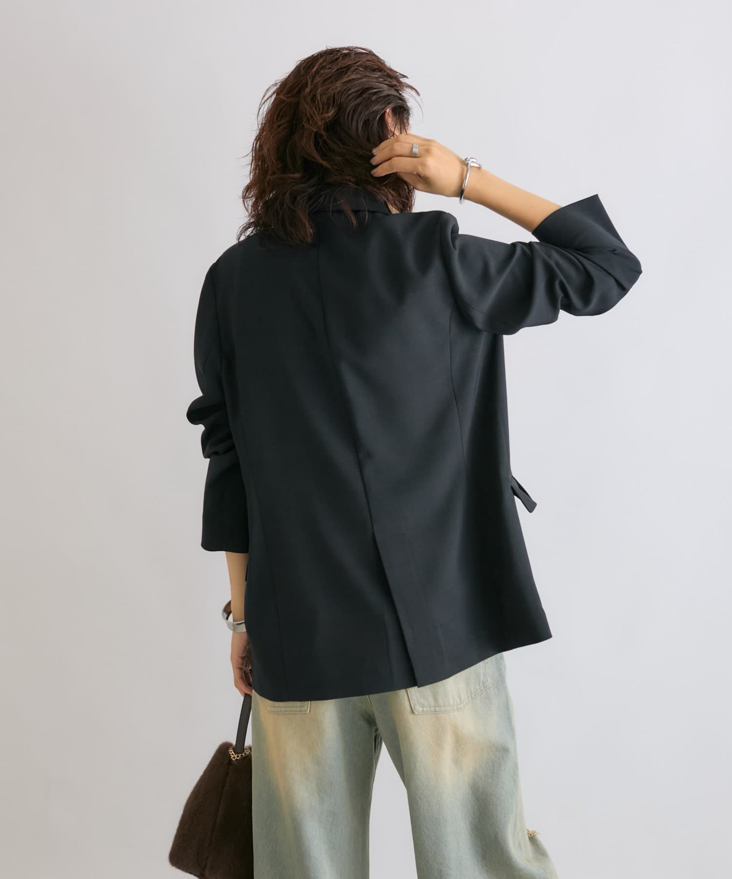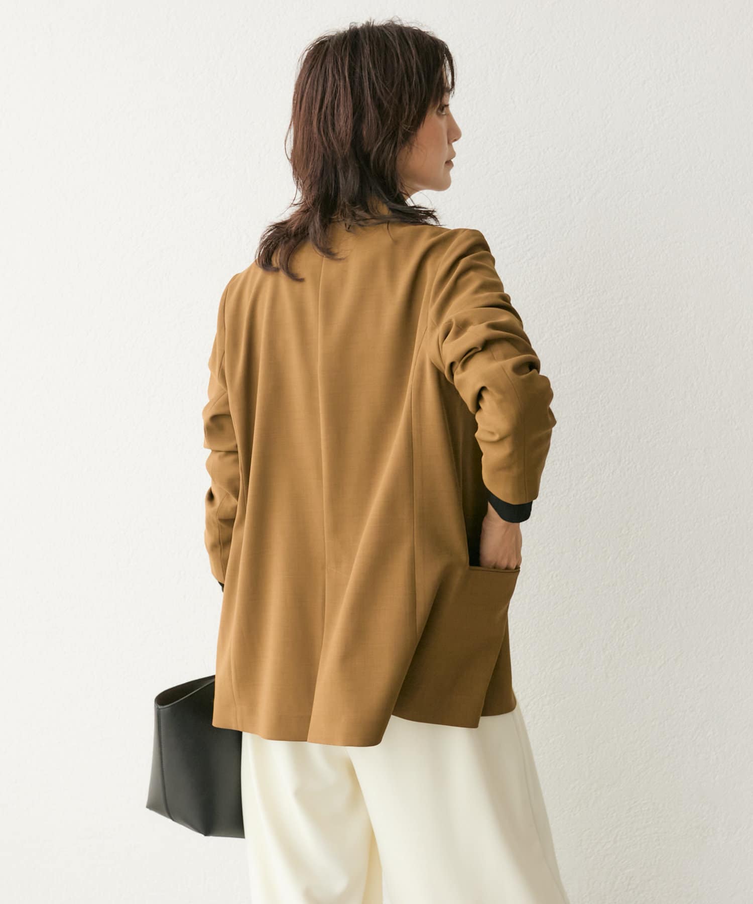 【軽量380g/手洗い可/華奢見え/ロングシーズン着まわせる】ストレッチツイルテーラードジャケット