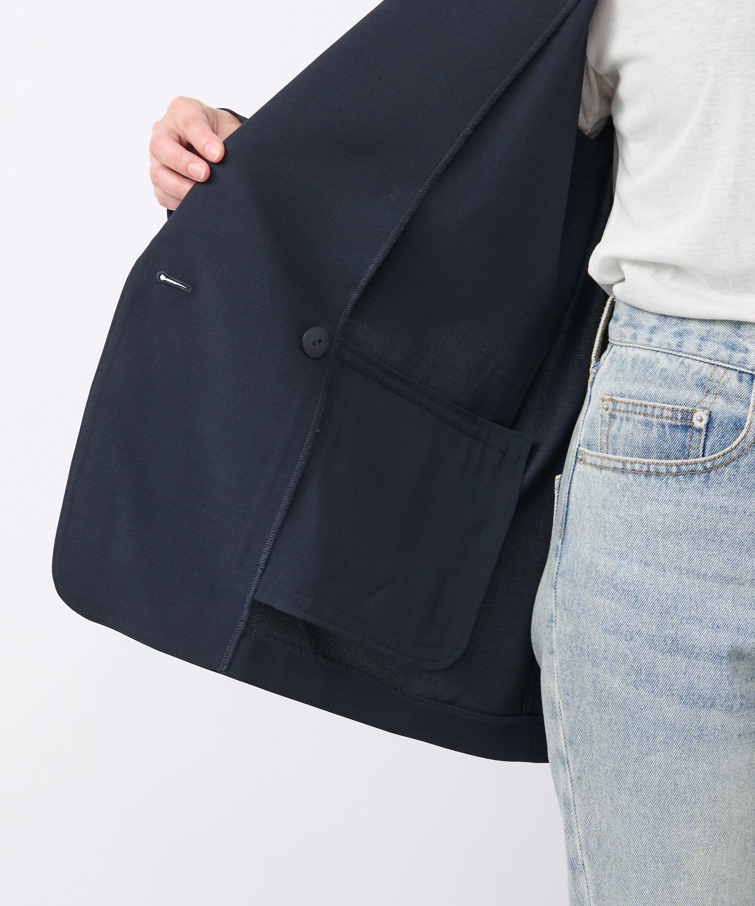 シワが気になりにくいポリエステルツイルを使用したON・OFF兼用で着用できるライトジャケット。