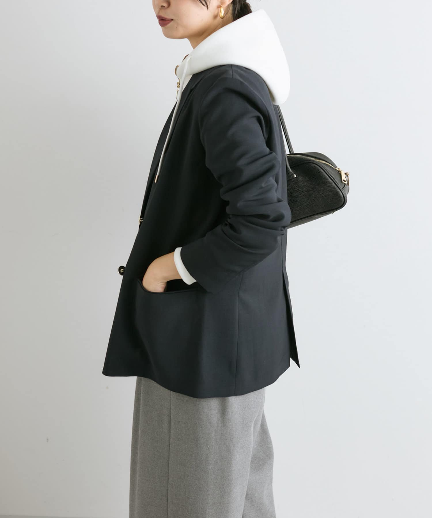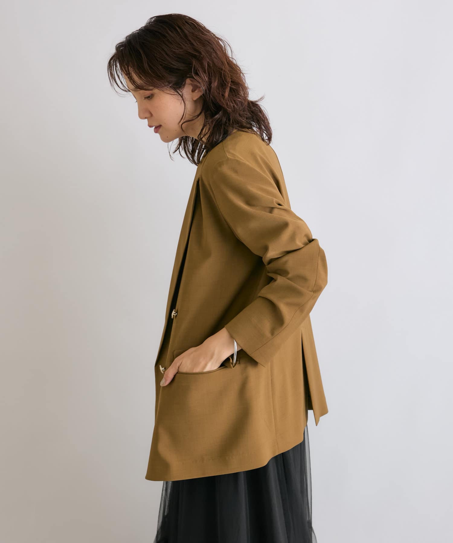 カーディガンよりもきちんとして見えるのでお仕事着としてもおすすめ。秋口は薄手のニットの上から重ねることもできるため、長く着用いただけます。