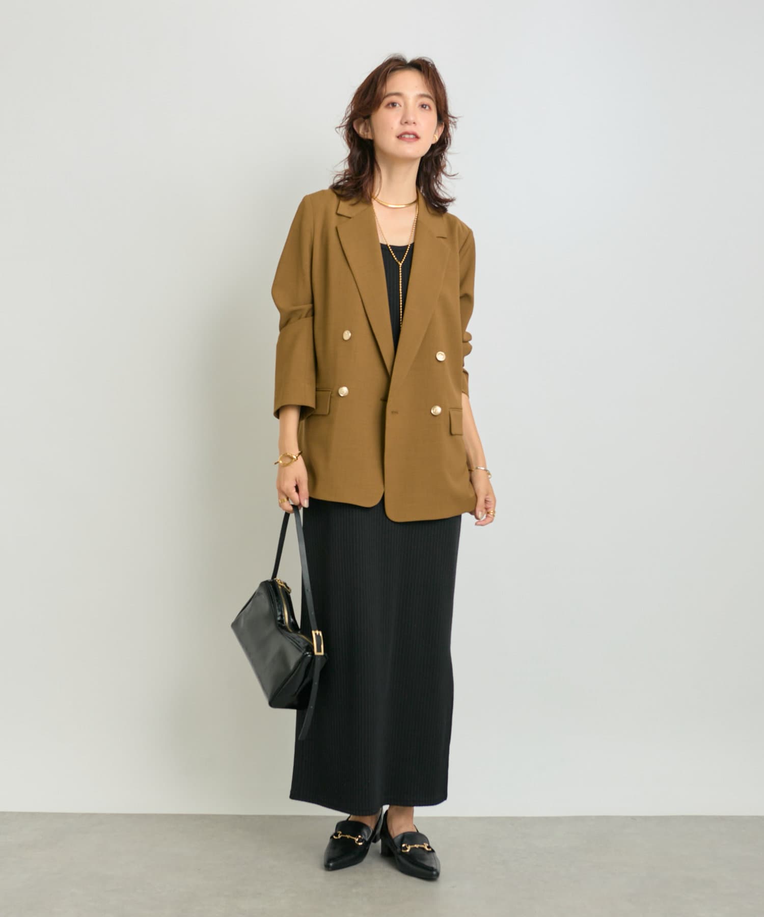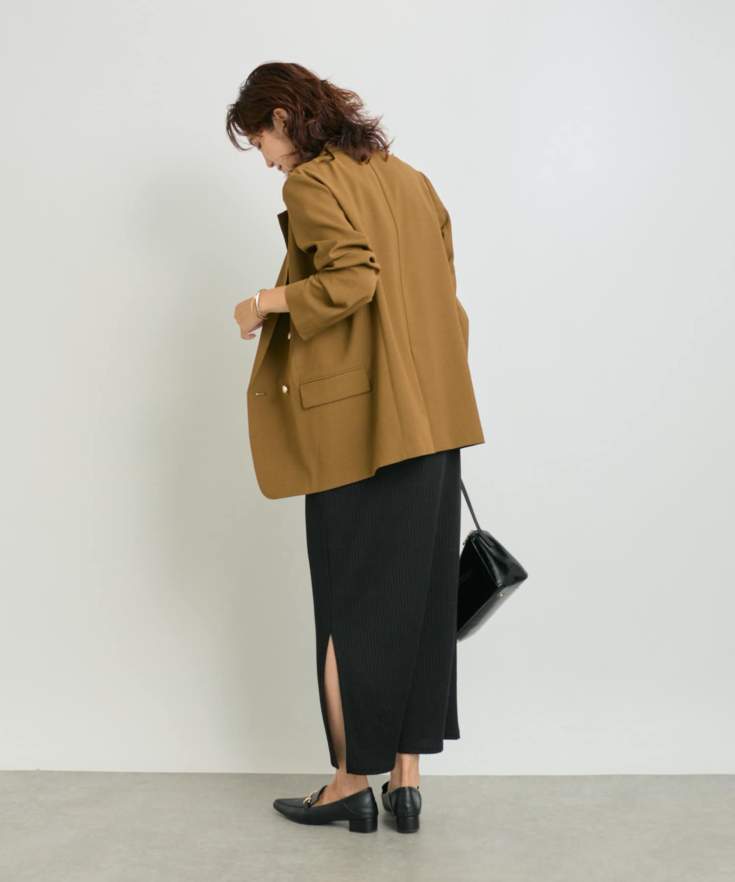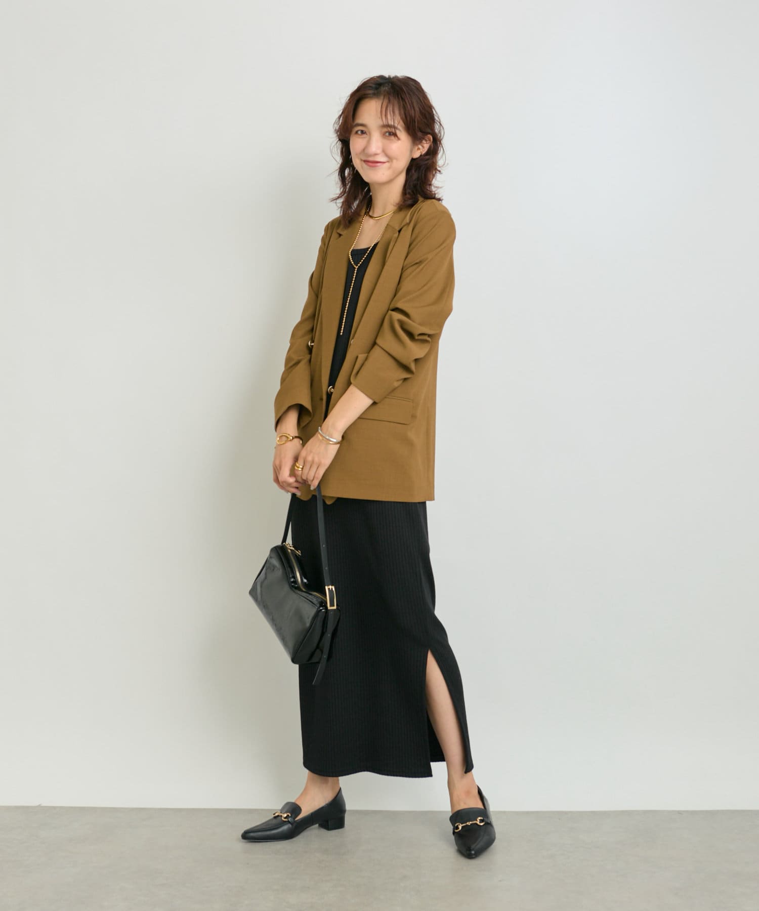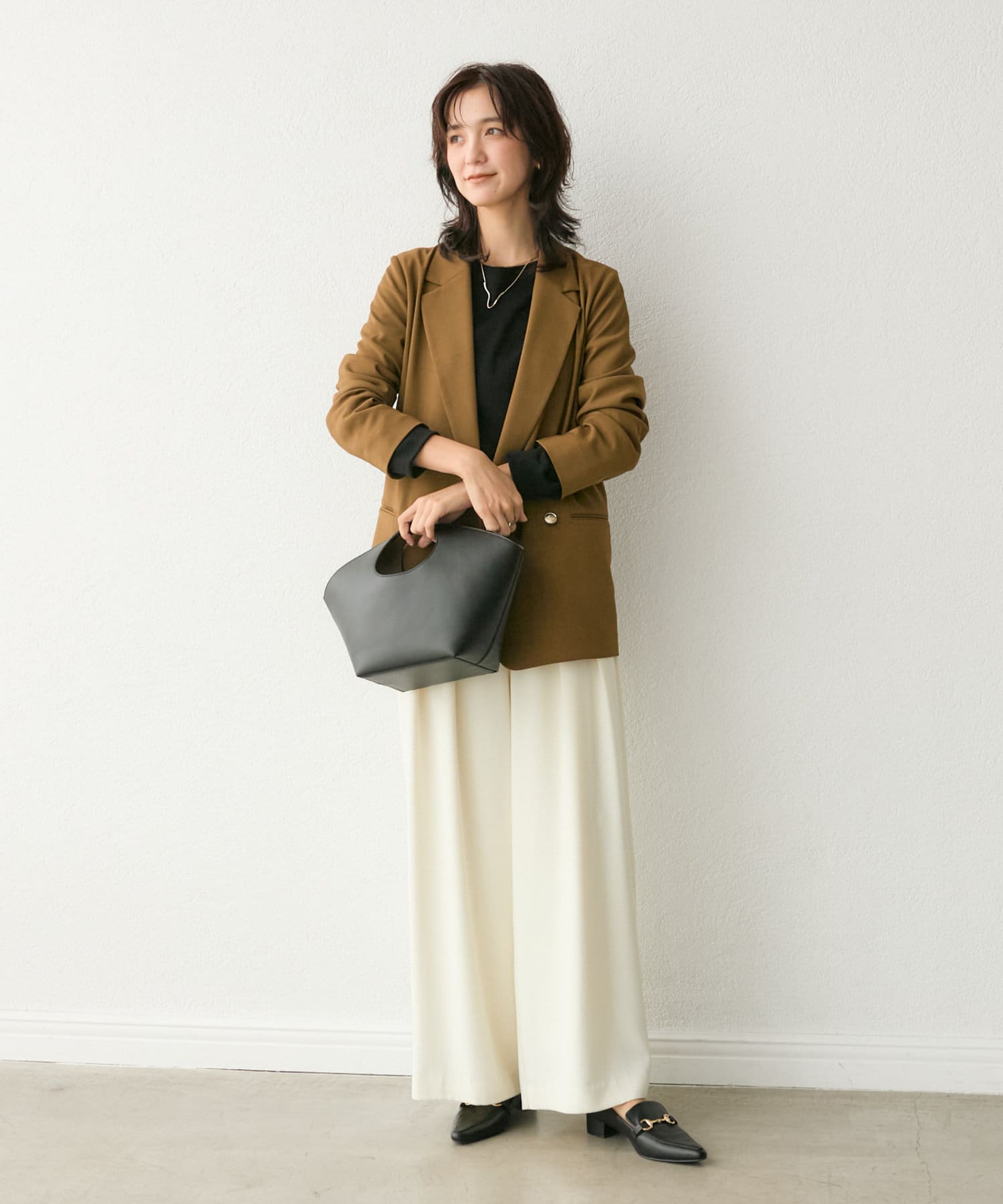 肌寒い時季には、薄手のニット等を合わせてコンパクトにまとめていただくとバランスよくまとまります。