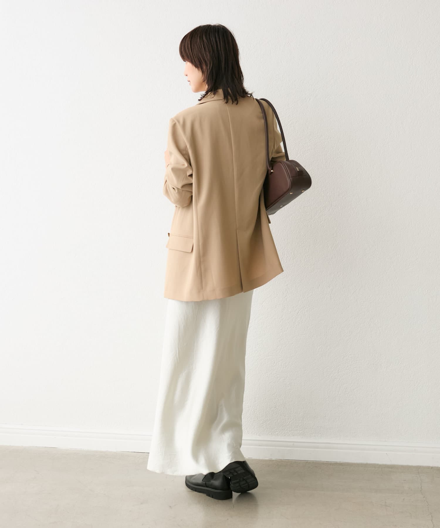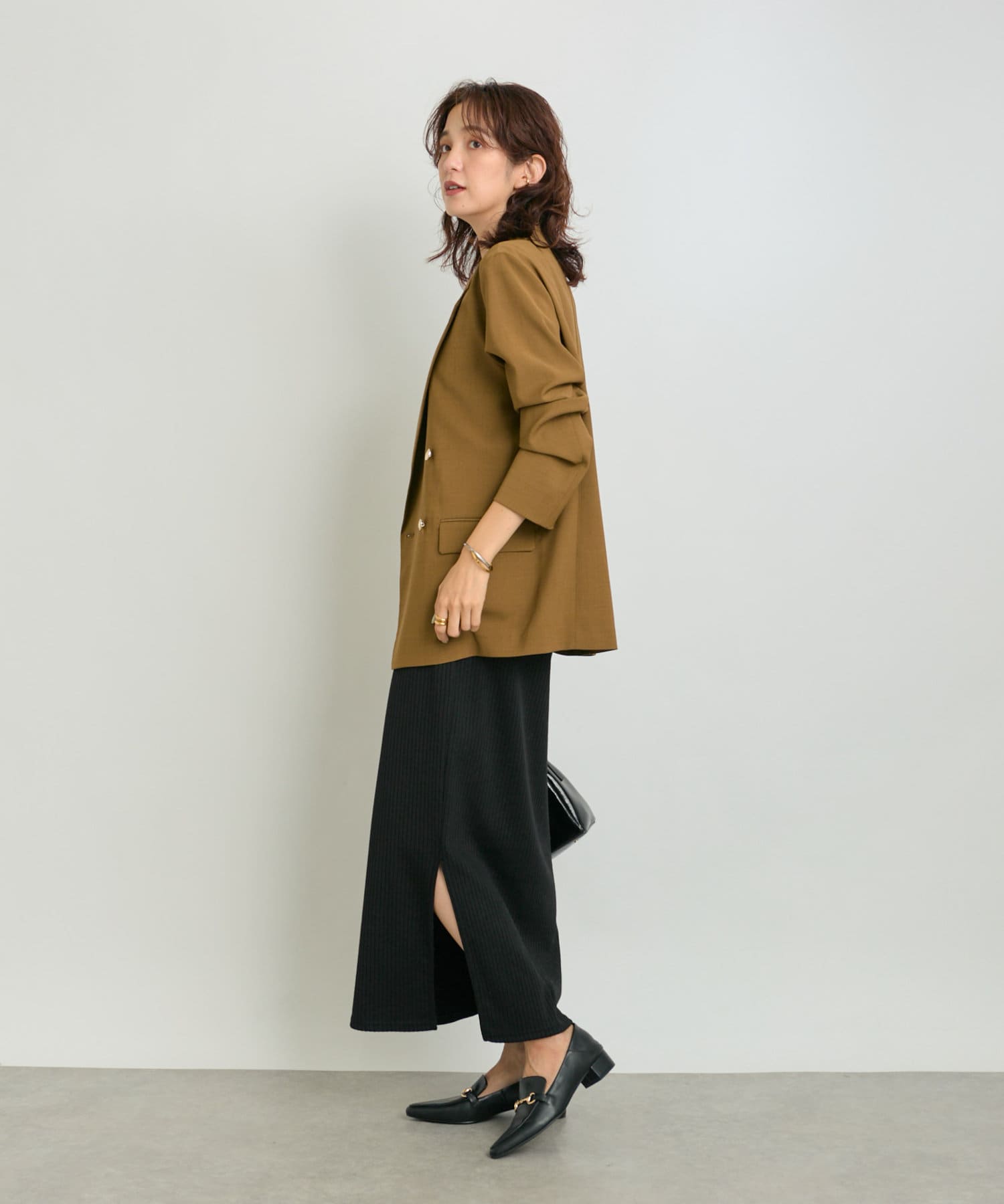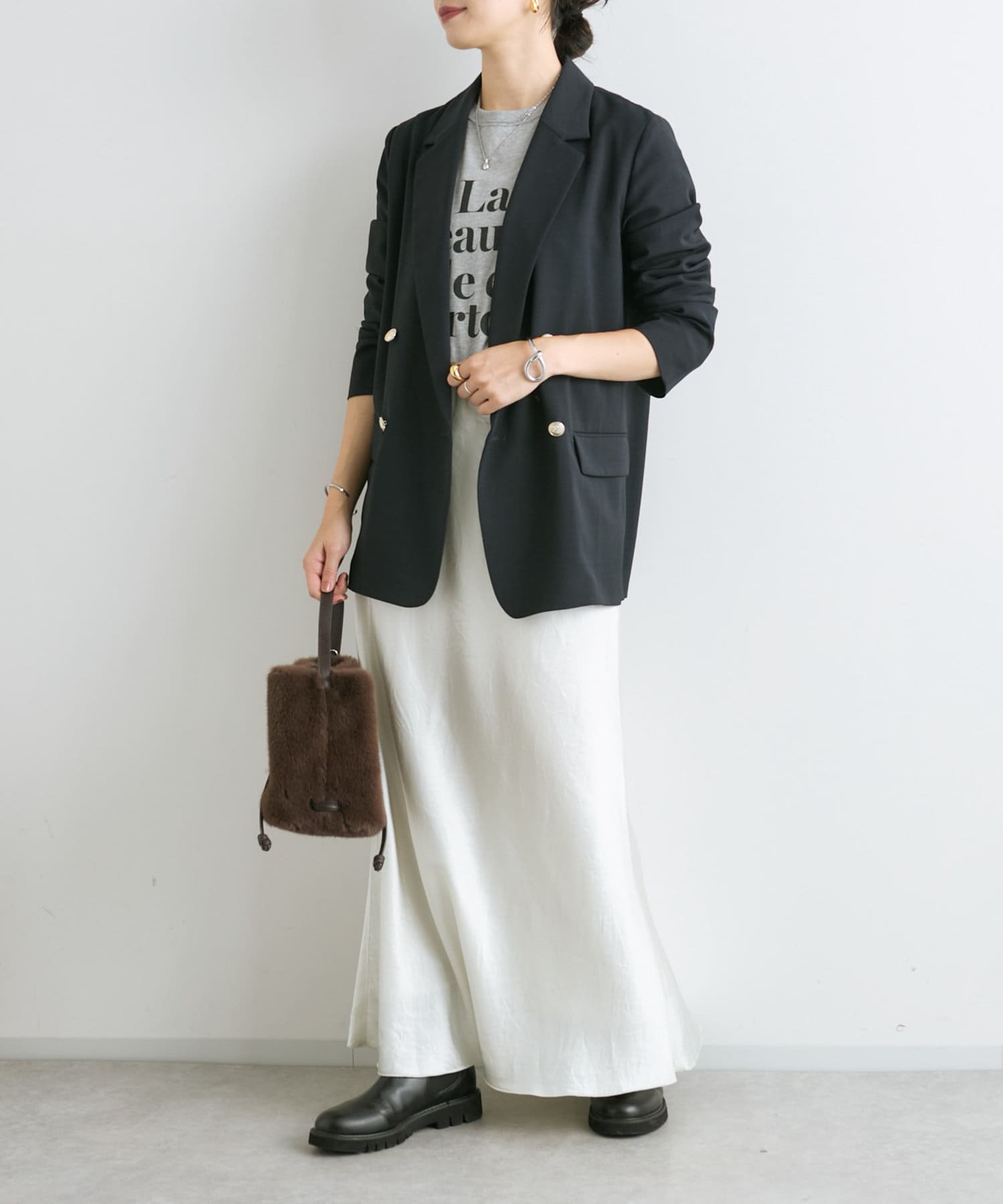 肌寒い時季には、薄手のニット等を合わせてコンパクトにまとめていただくとバランスよくまとまります。