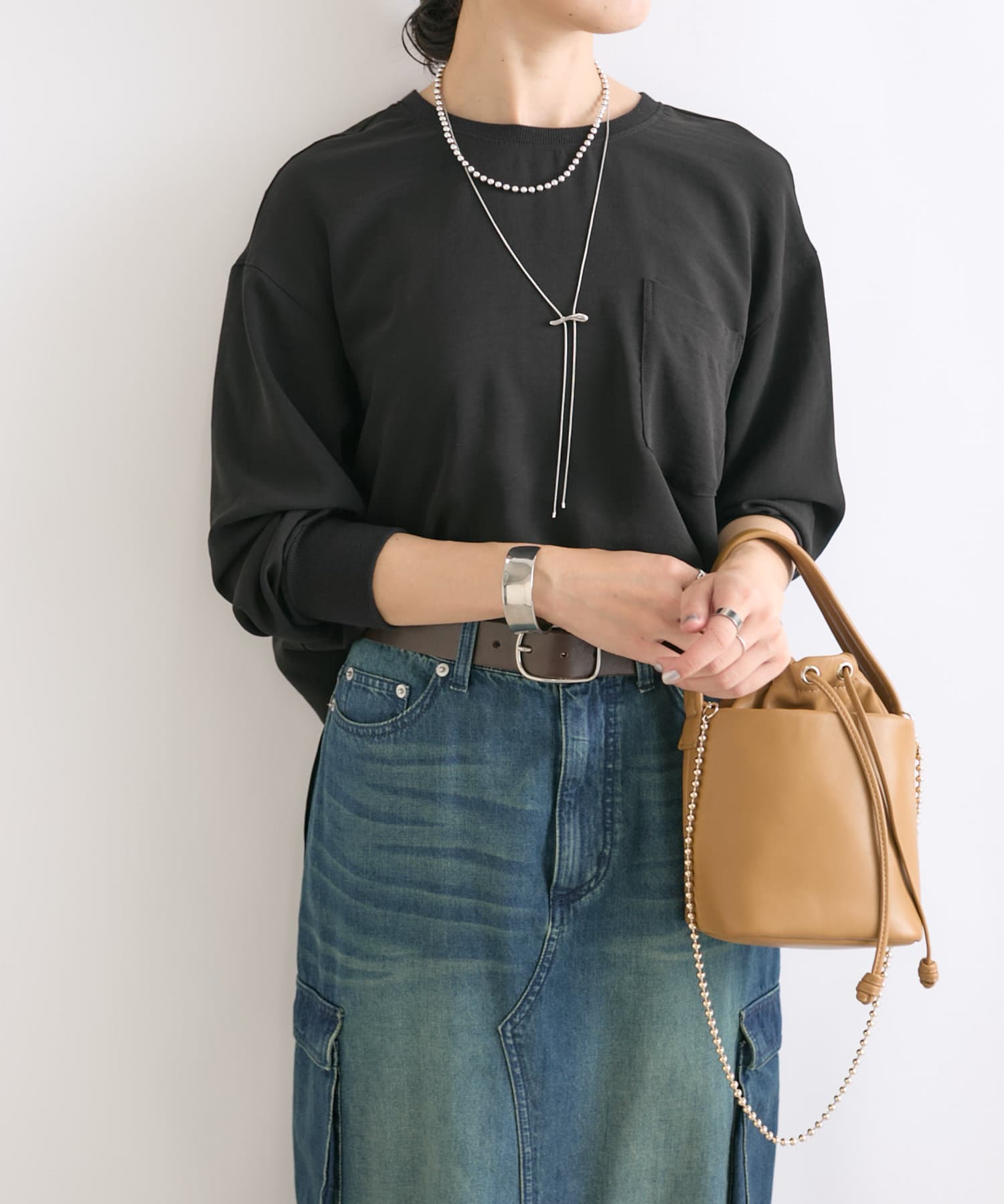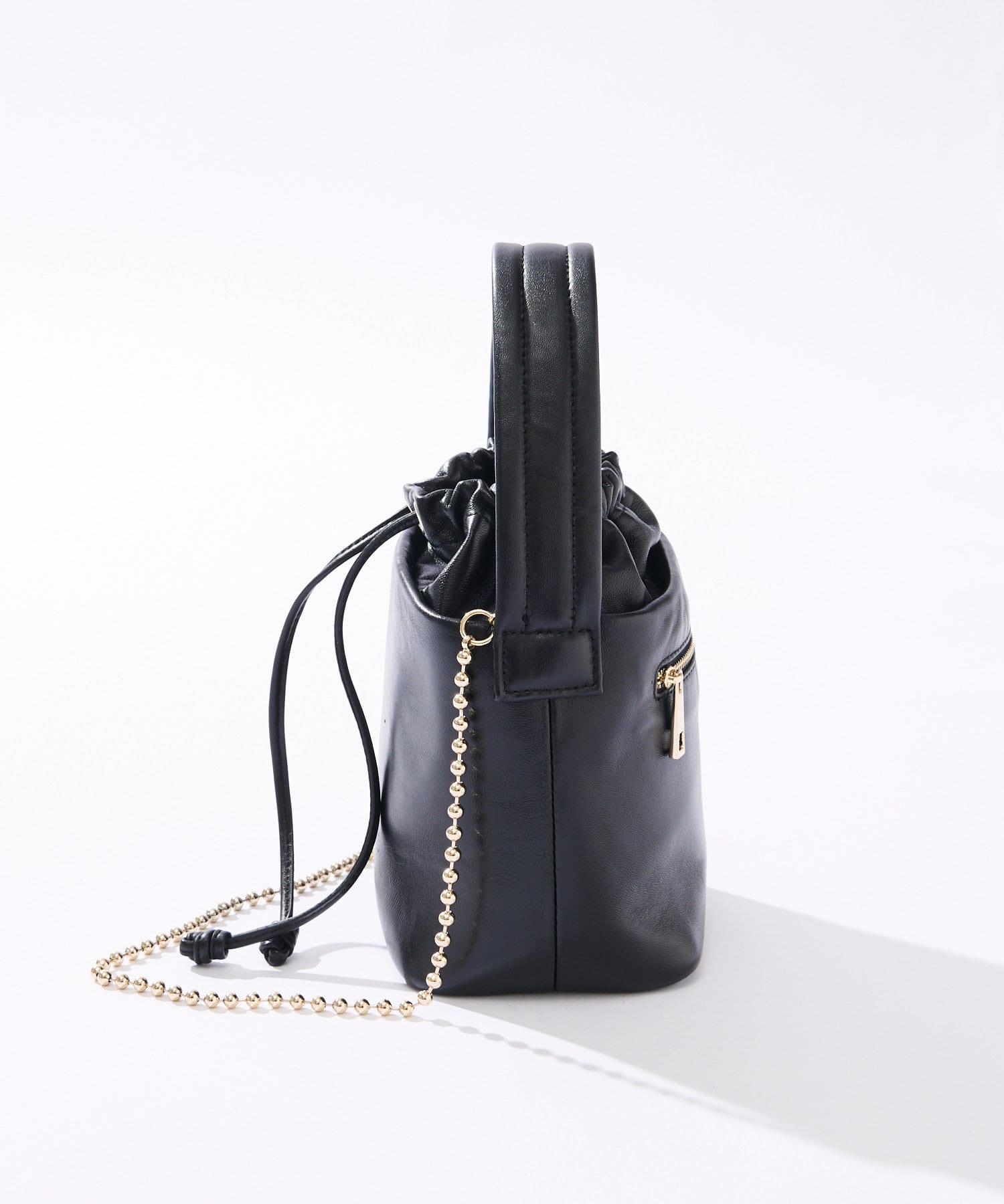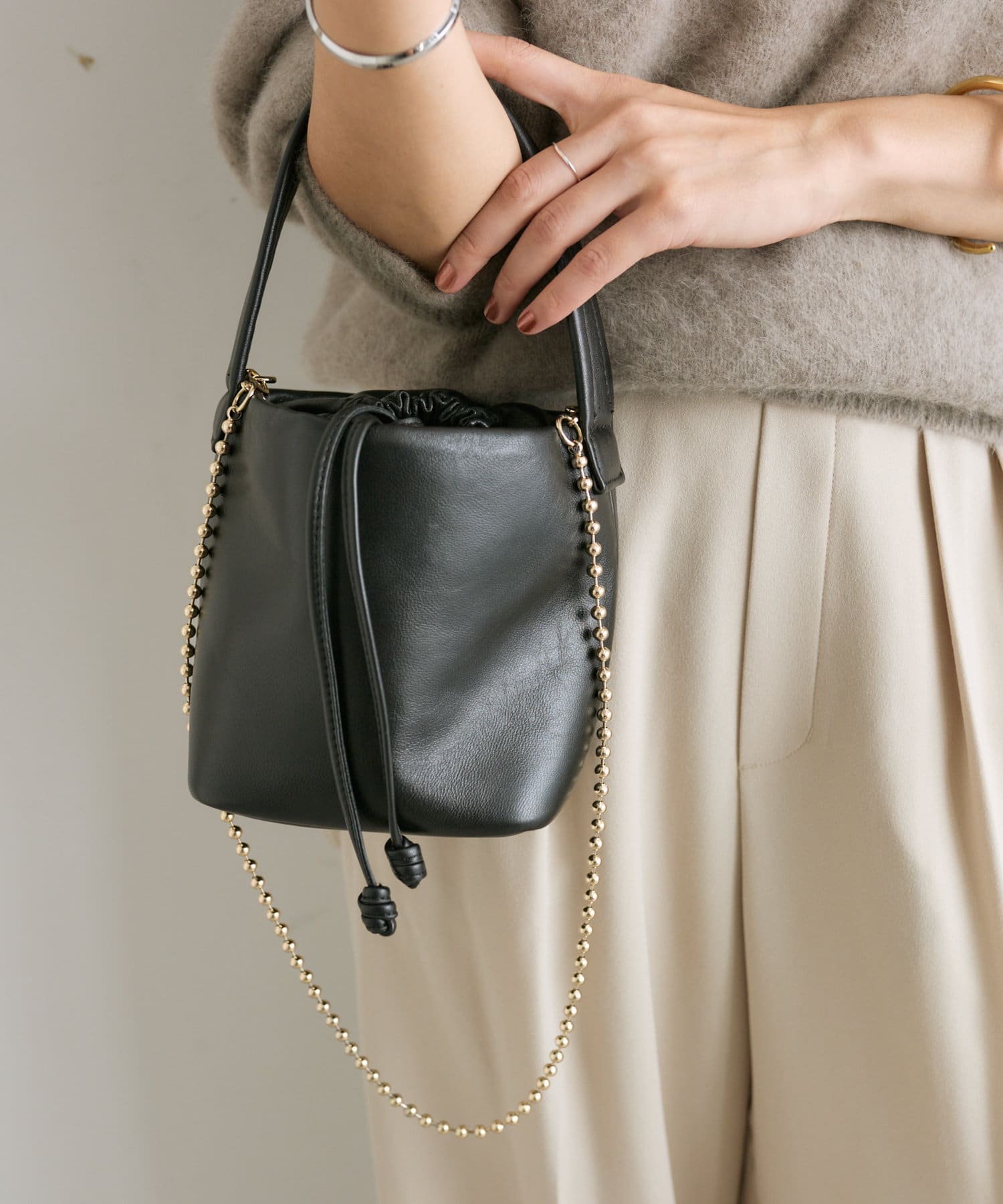 【ボールチェーンショルダーがアクセント】ワンハンドルバケットバッグ