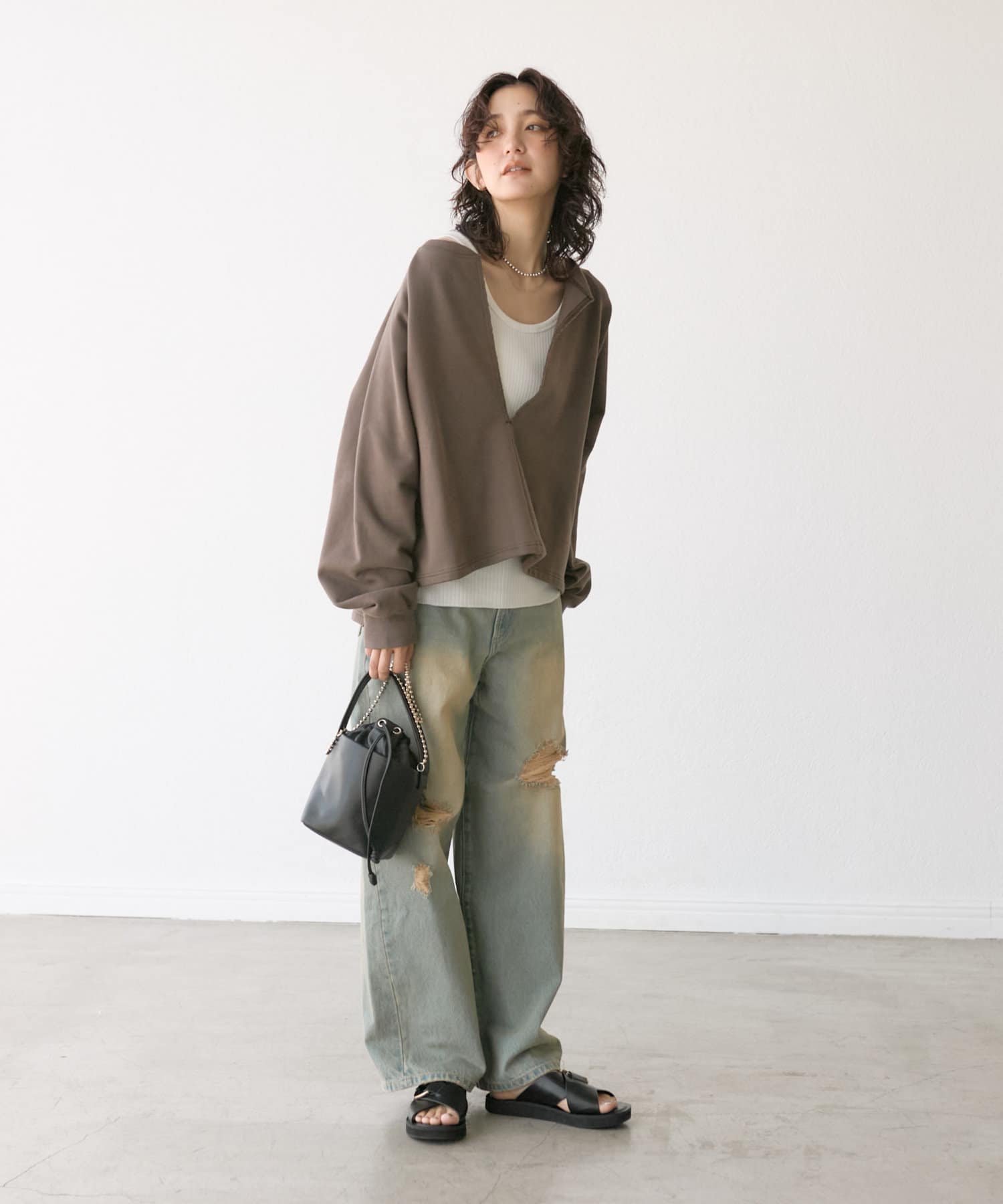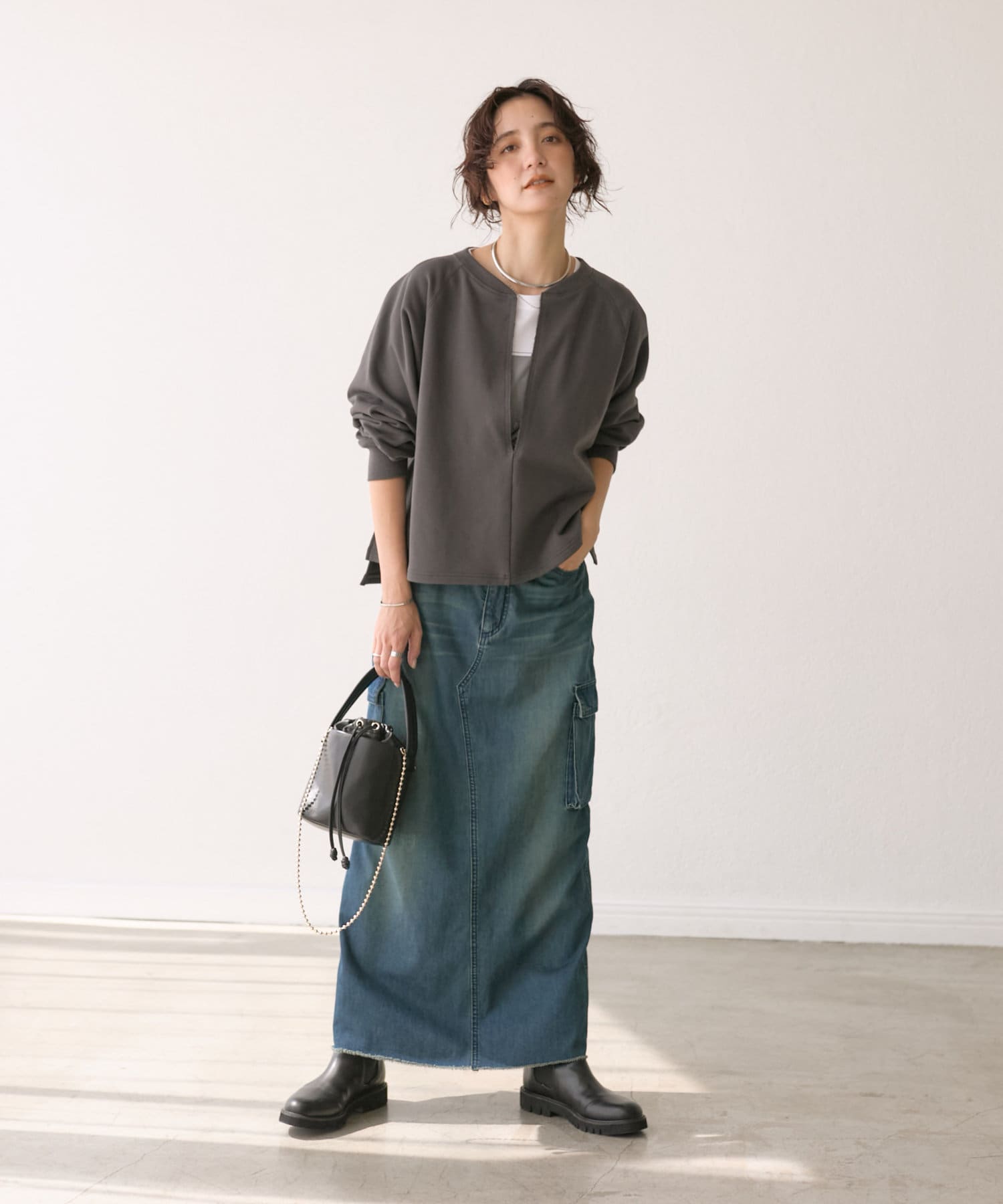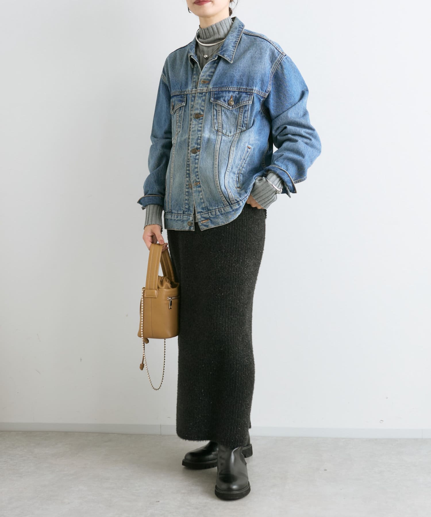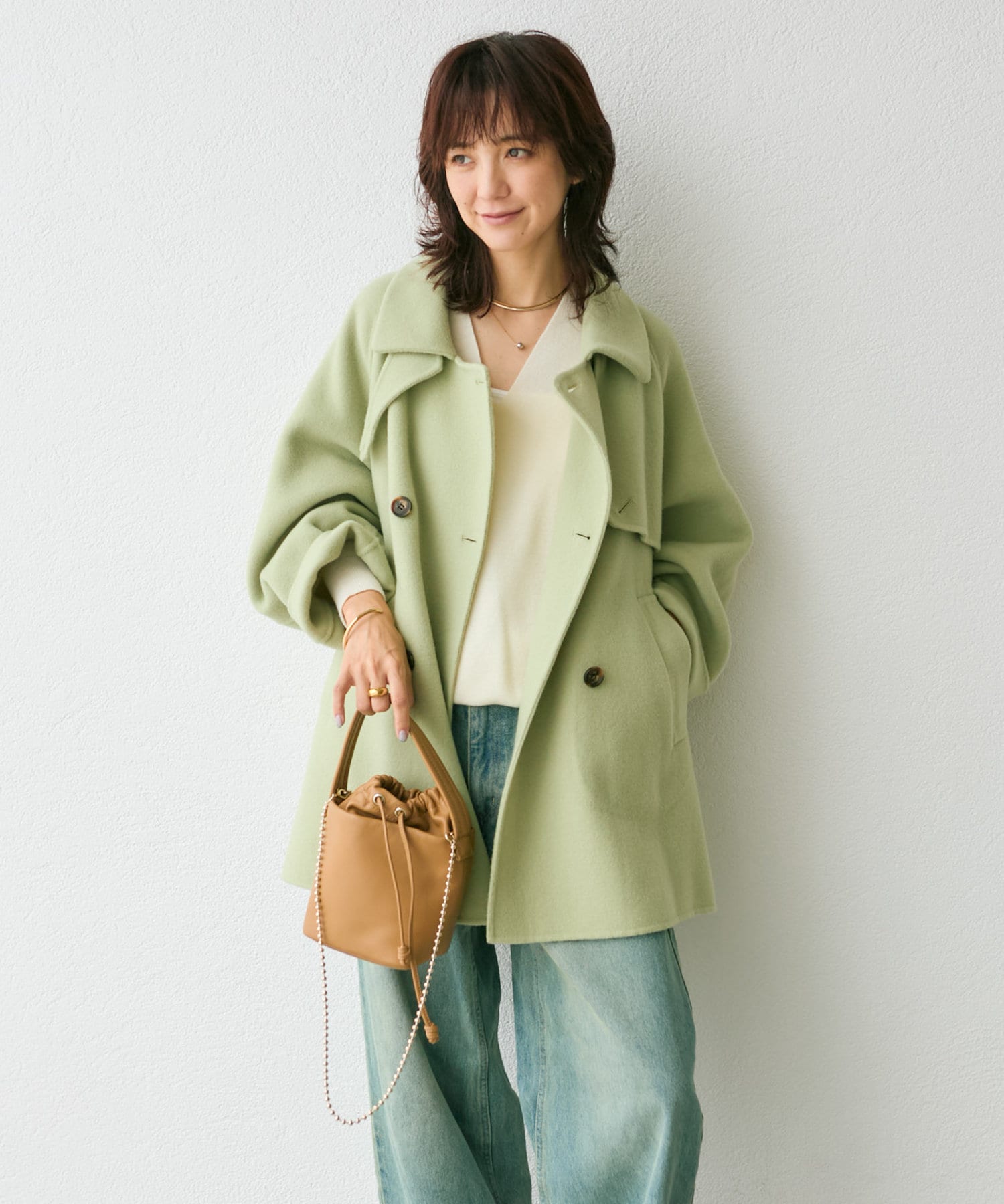 【ボールチェーンショルダーがアクセント】ワンハンドルバケットバッグ