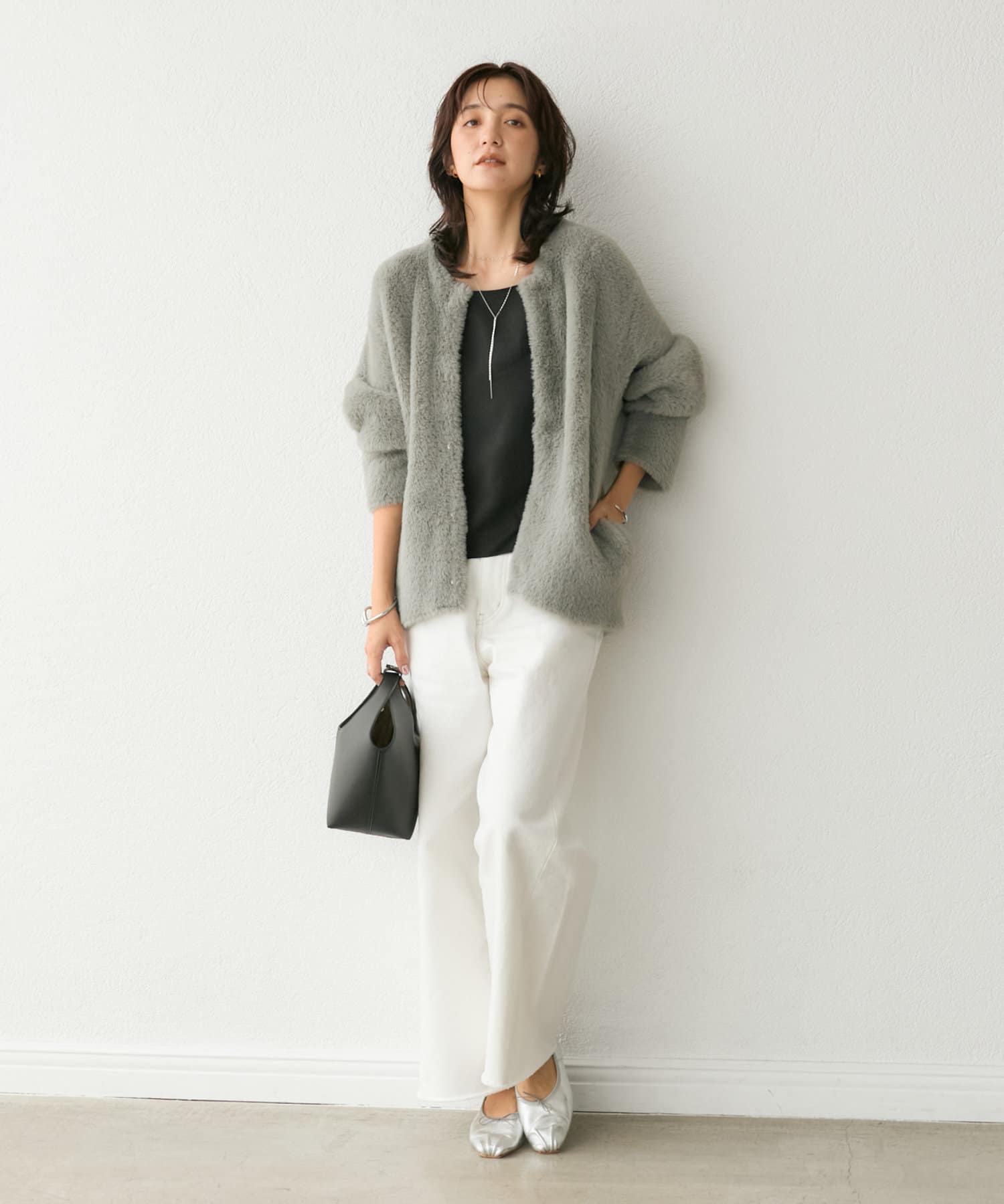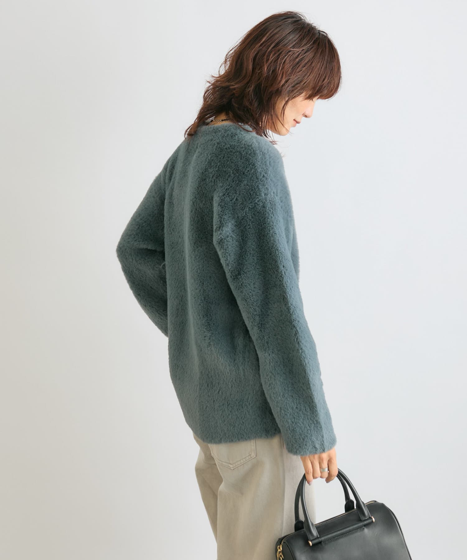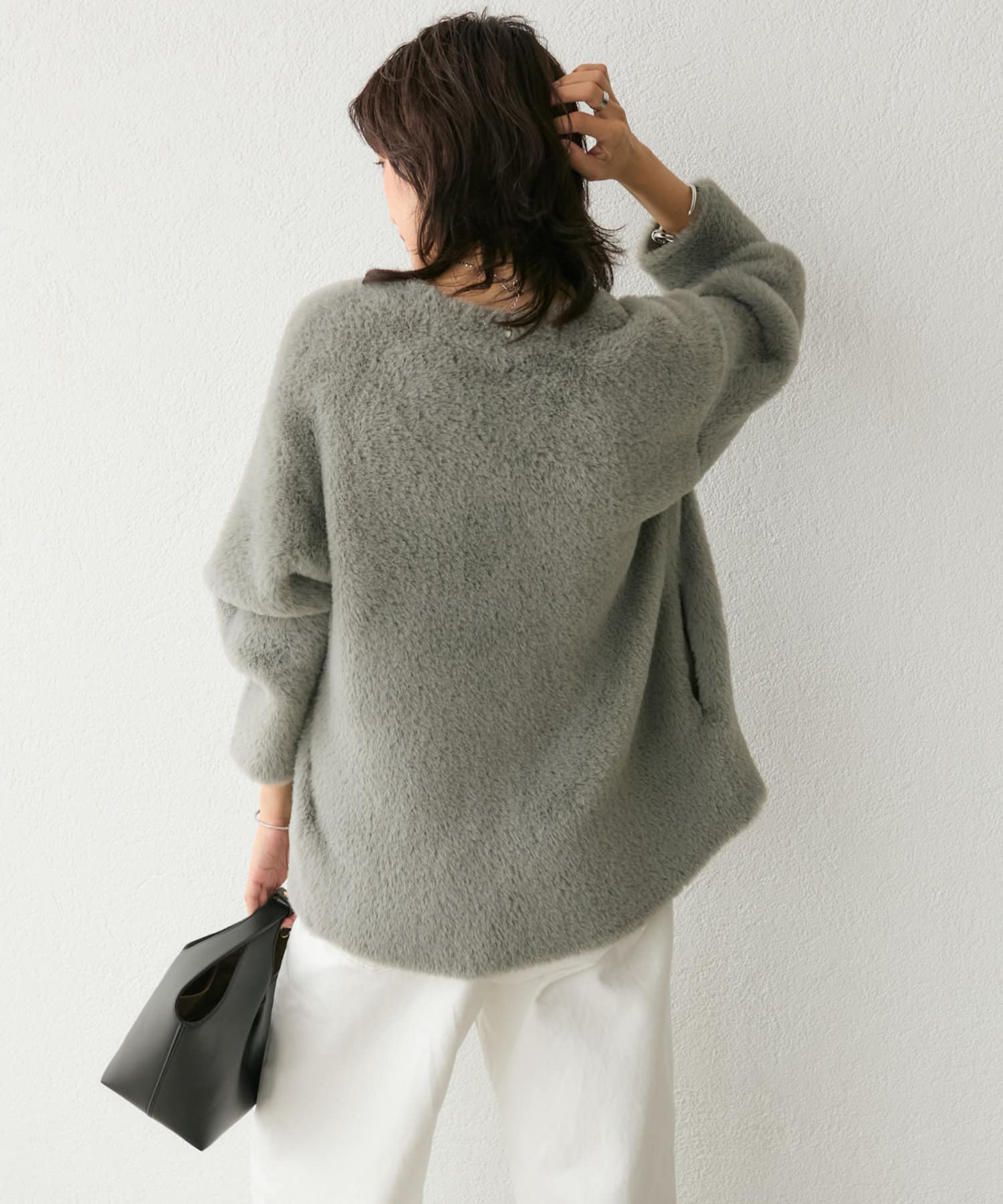毛足も長すぎず、ソフトで落ち感のある編地なので着ぶくれ感が少ないのも大人にうれしいポイントです。