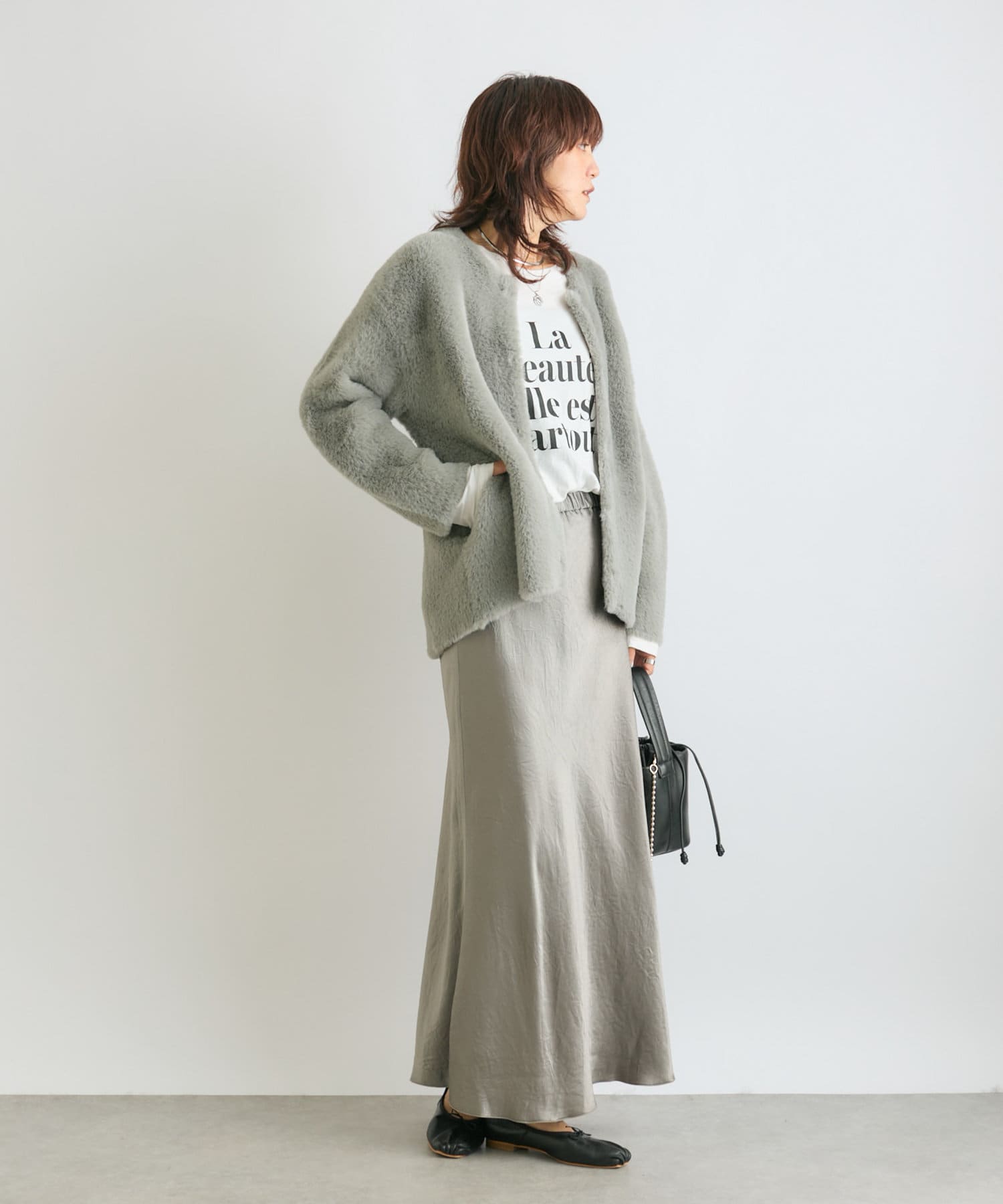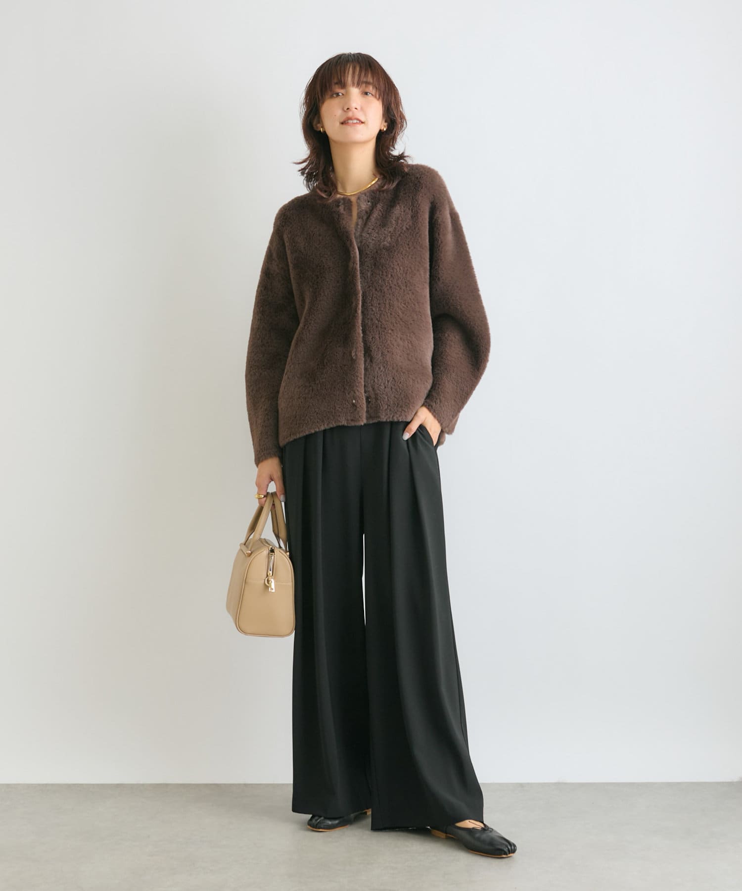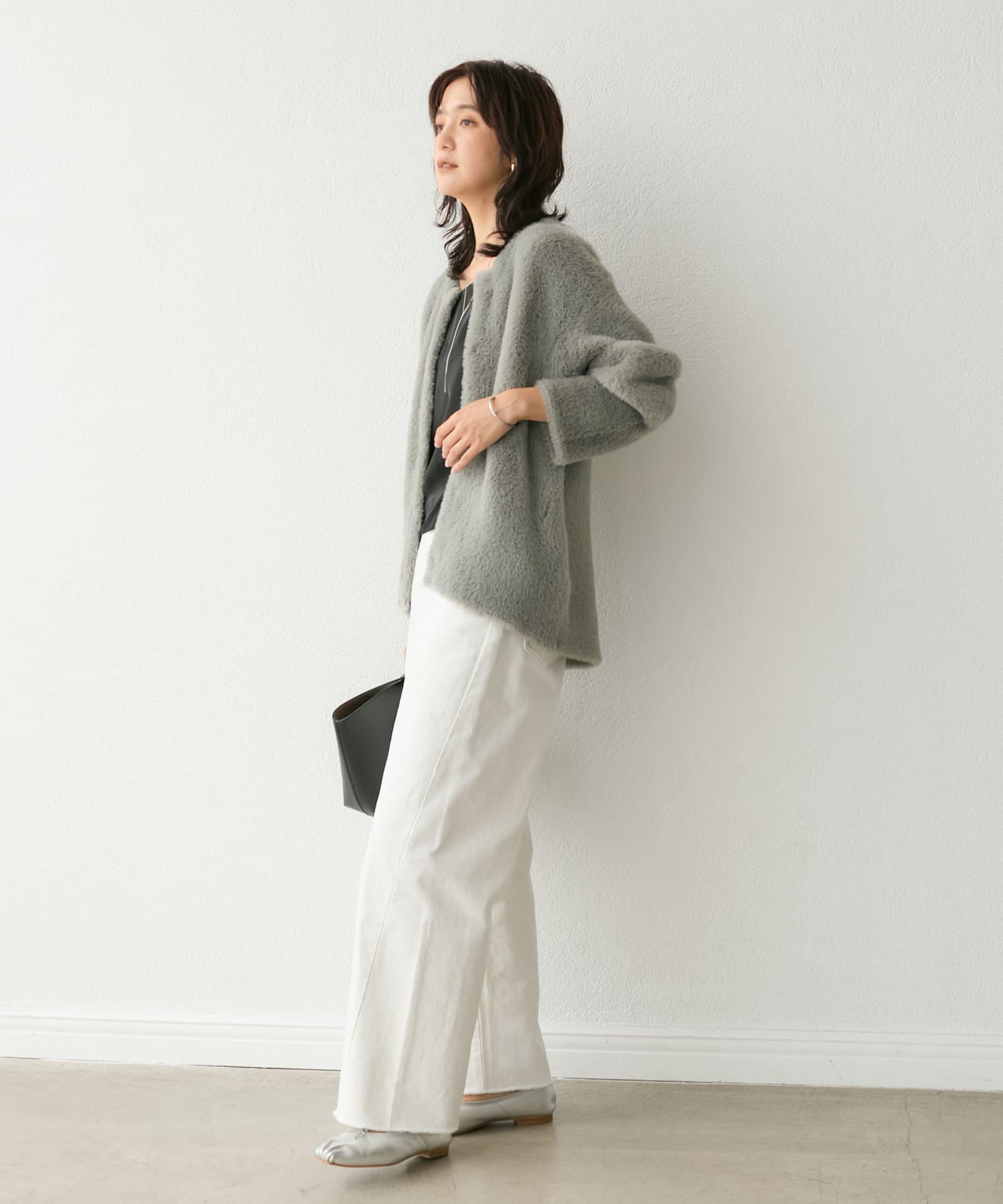 毛足も長すぎず、ソフトで落ち感のある編地なので着ぶくれ感が少ないのも大人にうれしいポイントです。