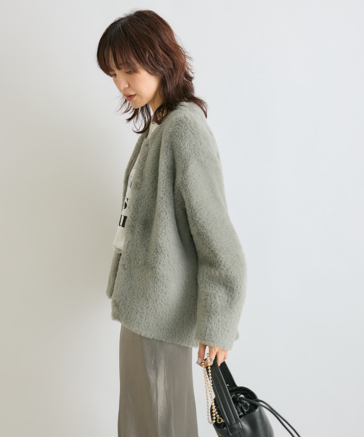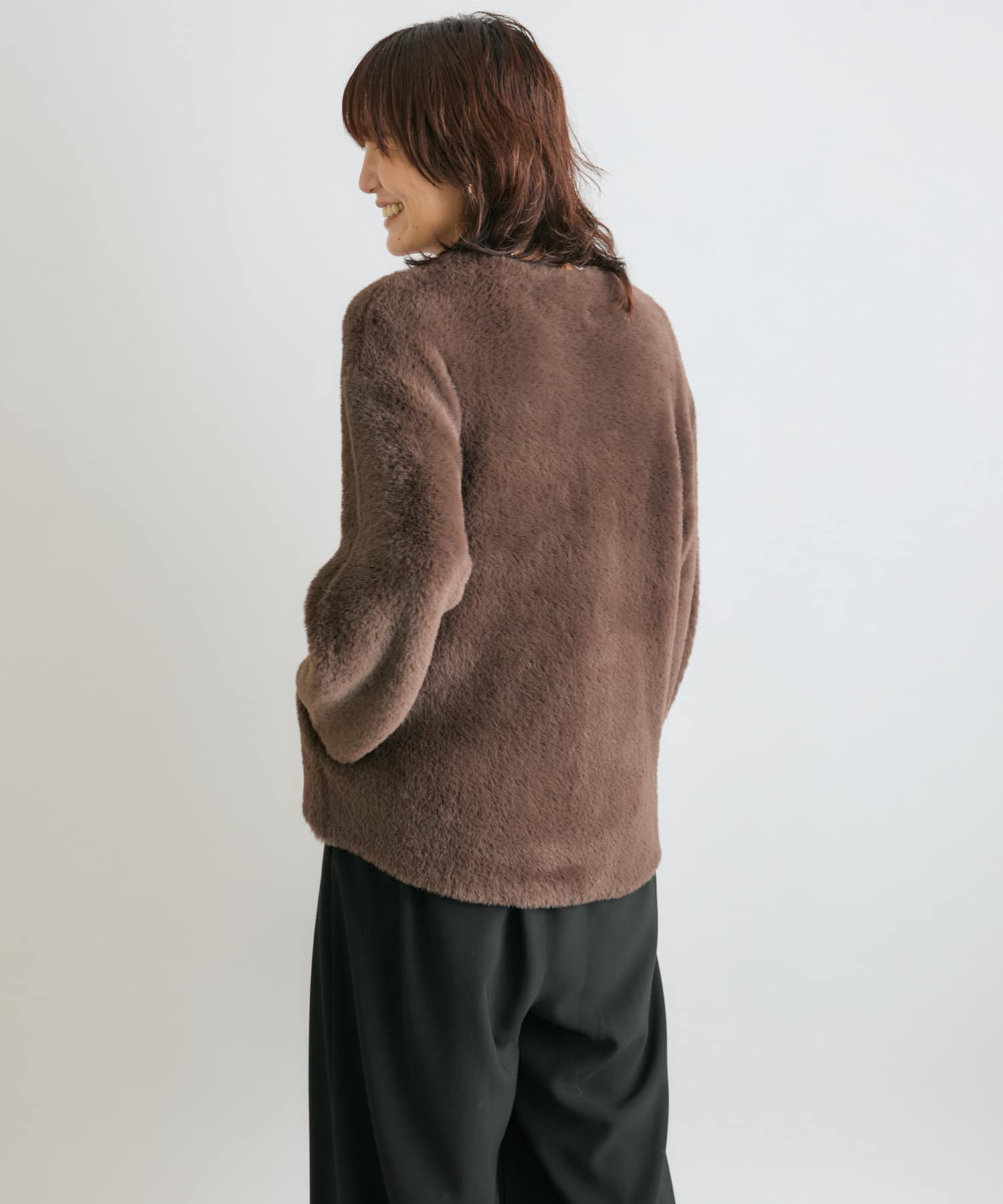 フロントはドットボタン仕様ですが、毛足に隠れて目立たないので着こなしの幅も広がります。