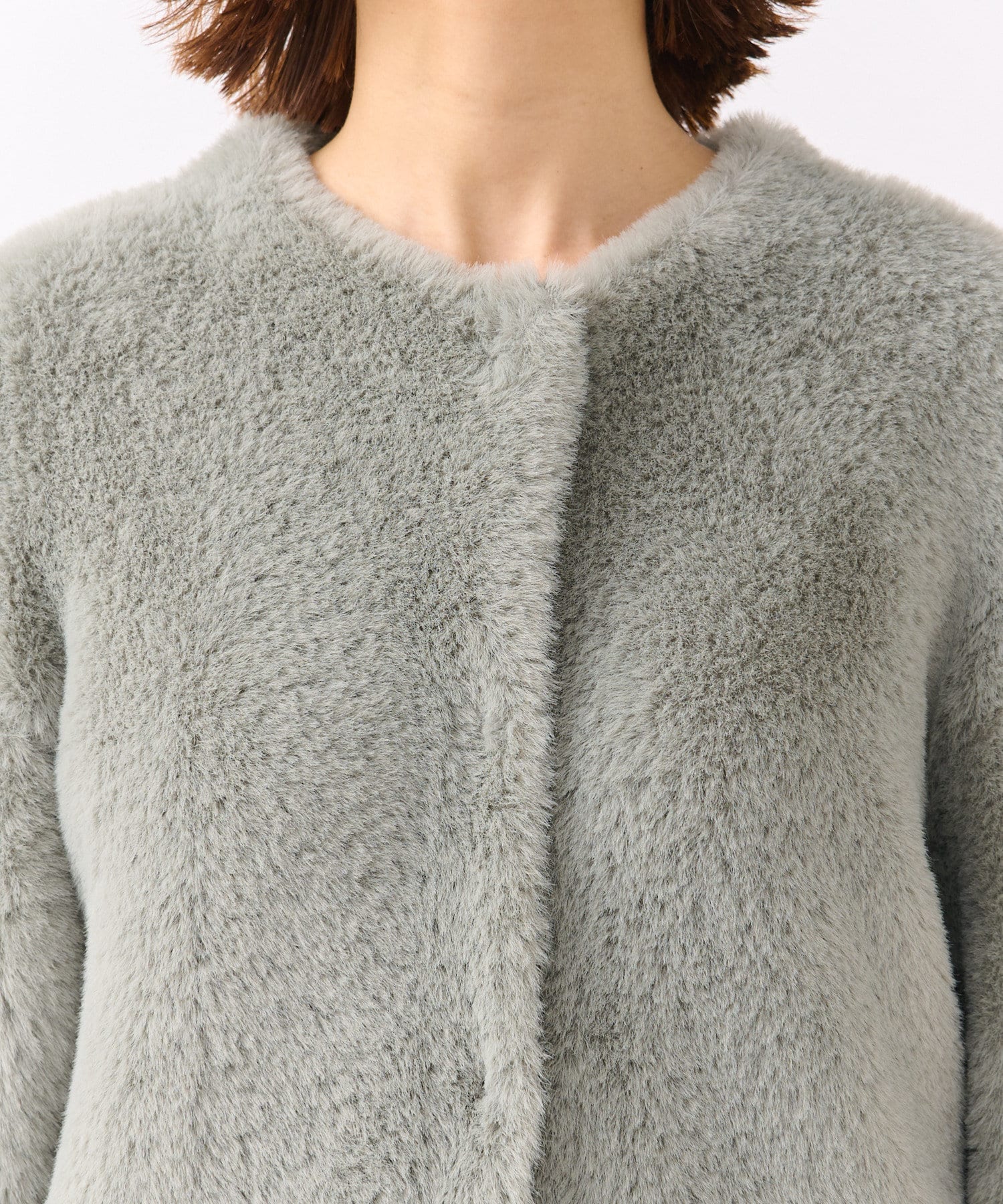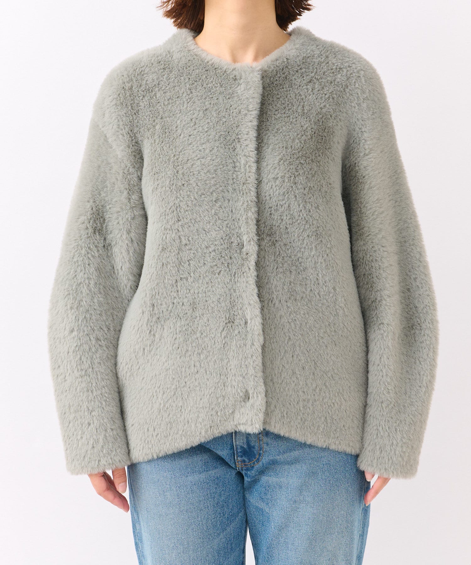 フェイクファーのような滑らかな毛足が存在感たっぷりのミドル丈カーディガン。