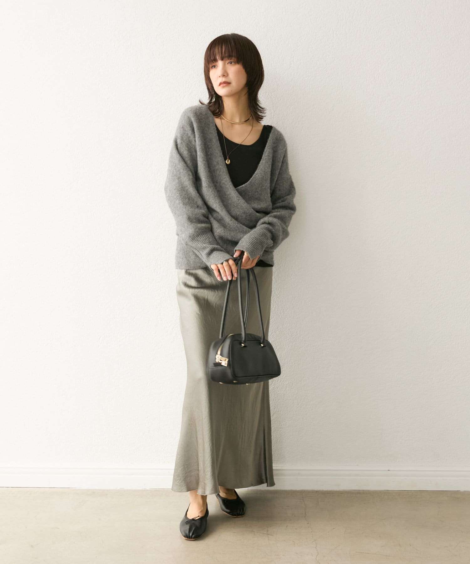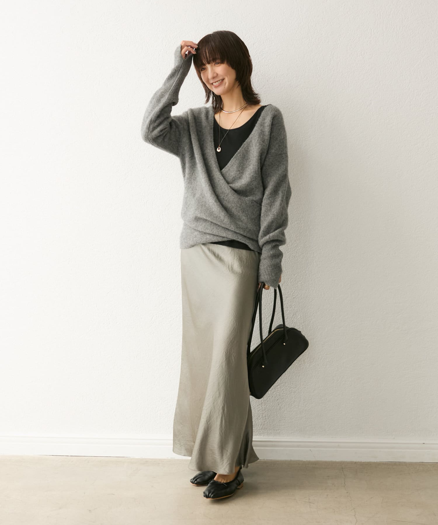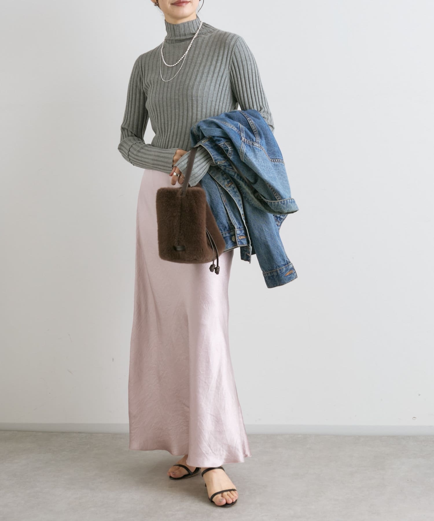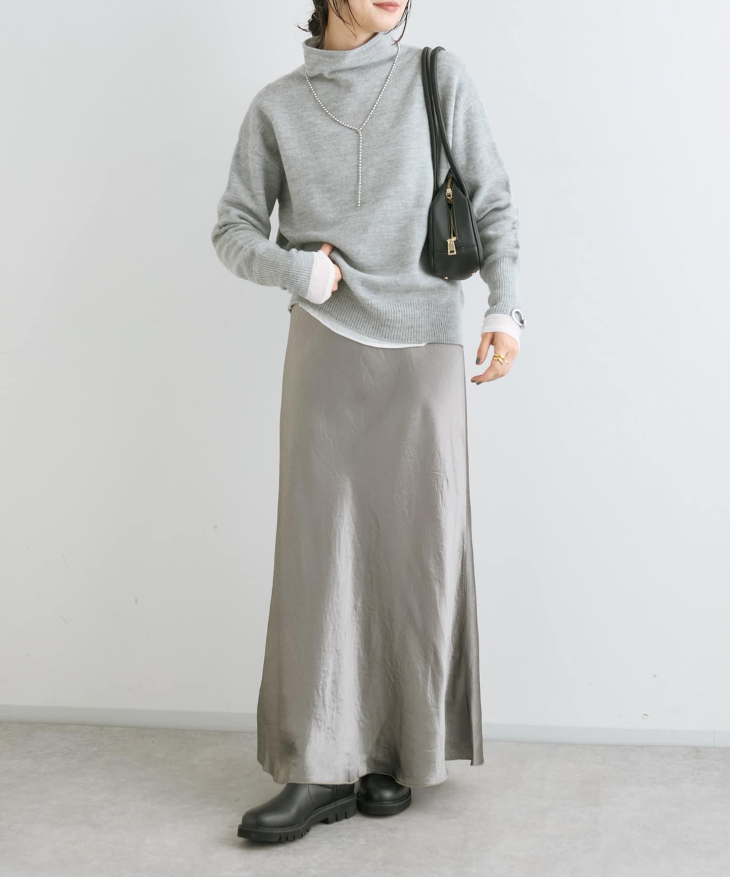 ざっくりニットやふんわりした毛足のニットとの相性がとてもよく、カジュアルなアイテムを艶っぽくスタイリングするのにもおすすめなアイテム。