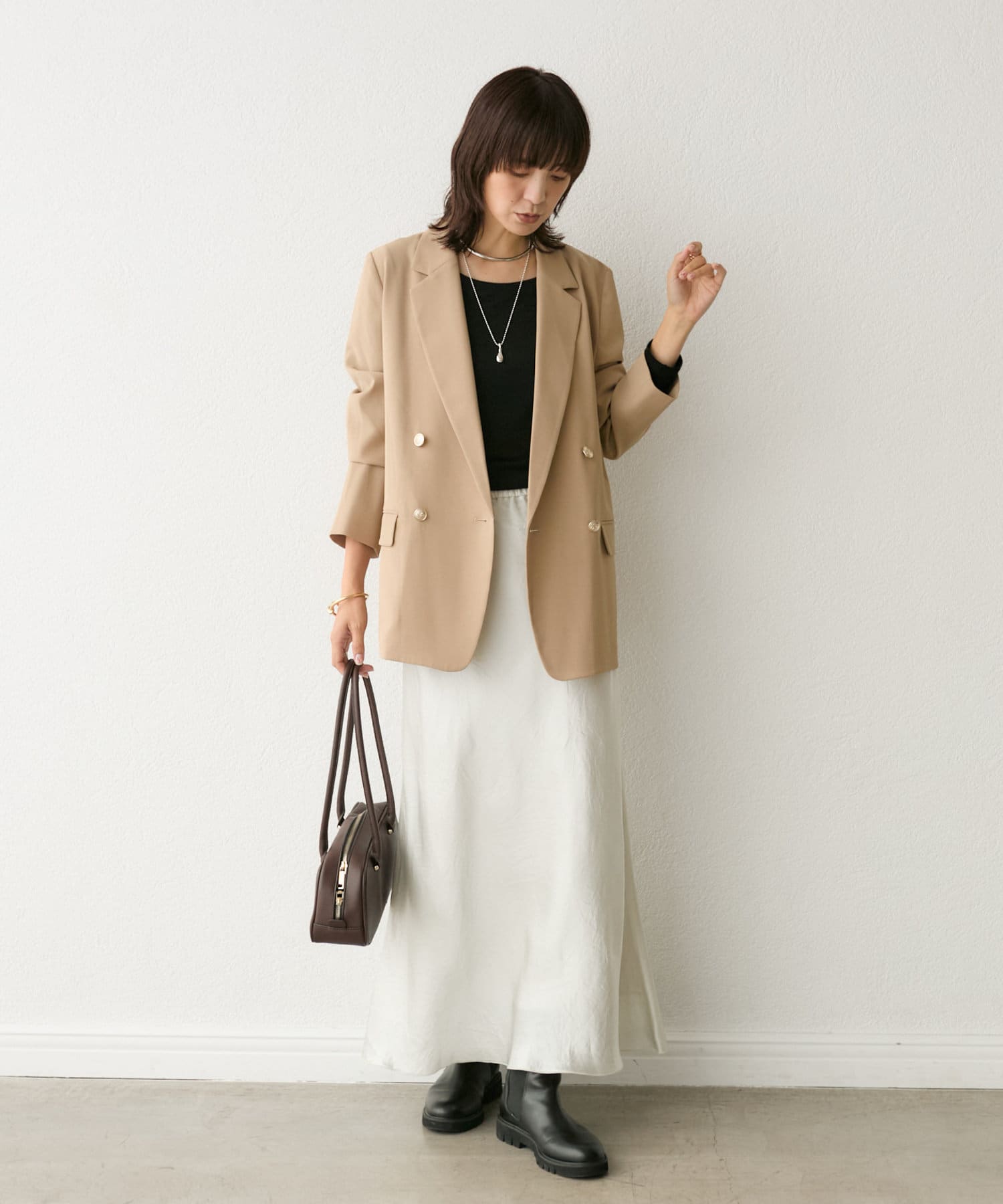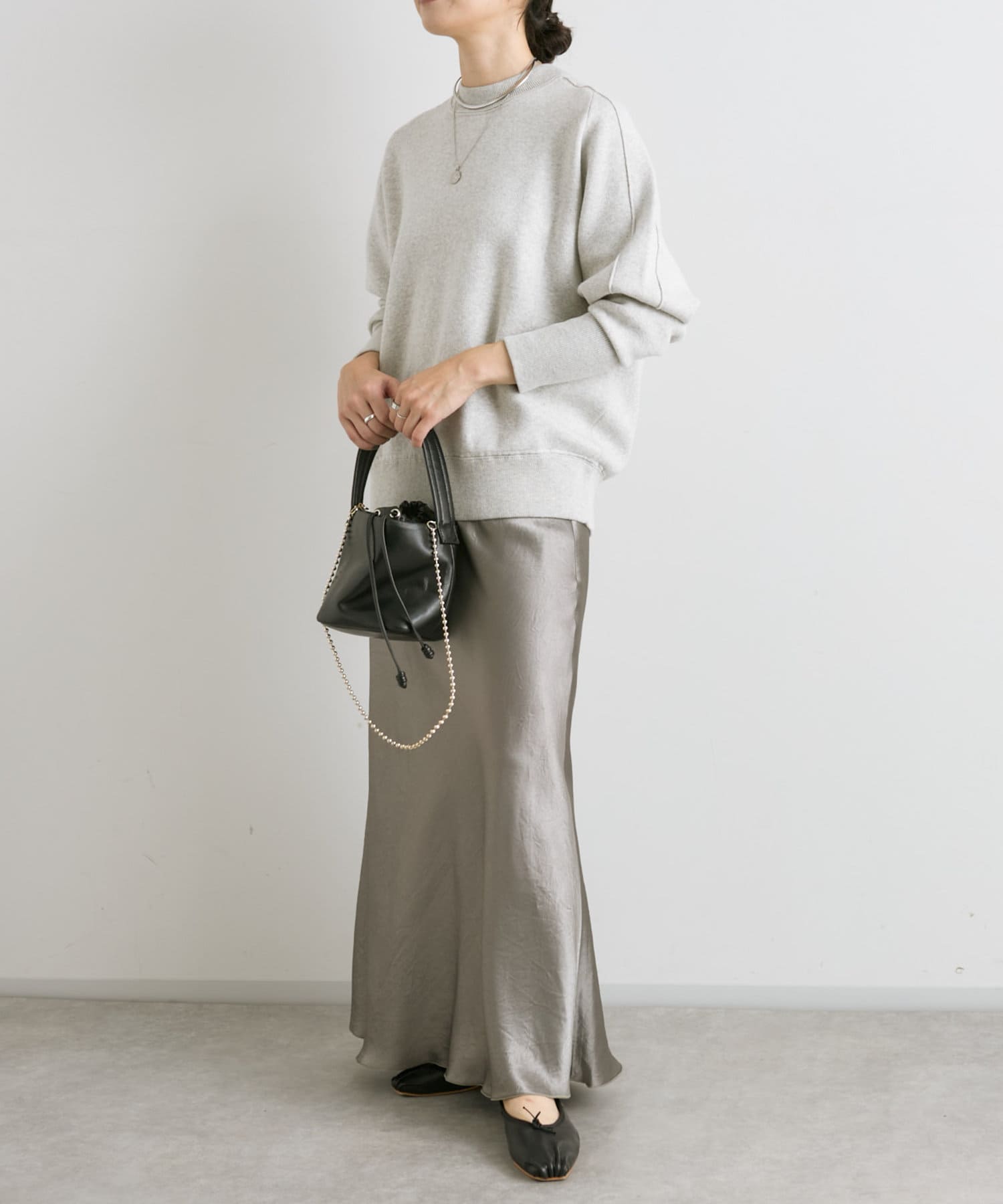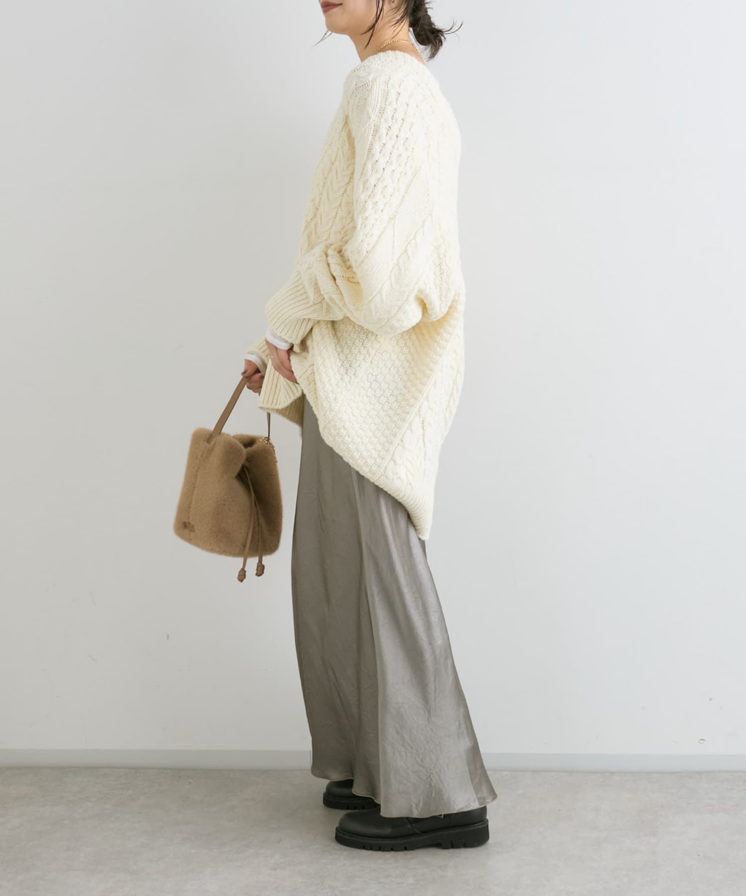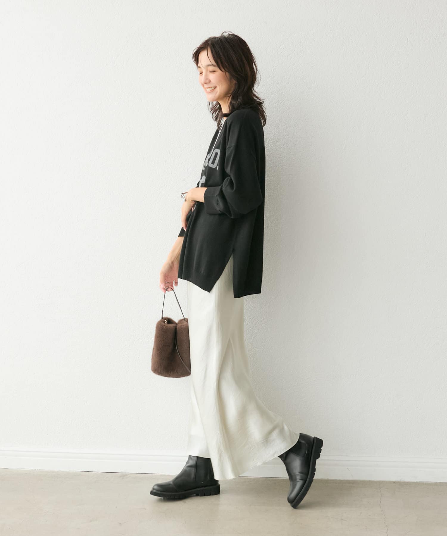 ざっくりニットやふんわりした毛足のニットとの相性がとてもよく、カジュアルなアイテムを艶っぽくスタイリングするのにもおすすめなアイテム。