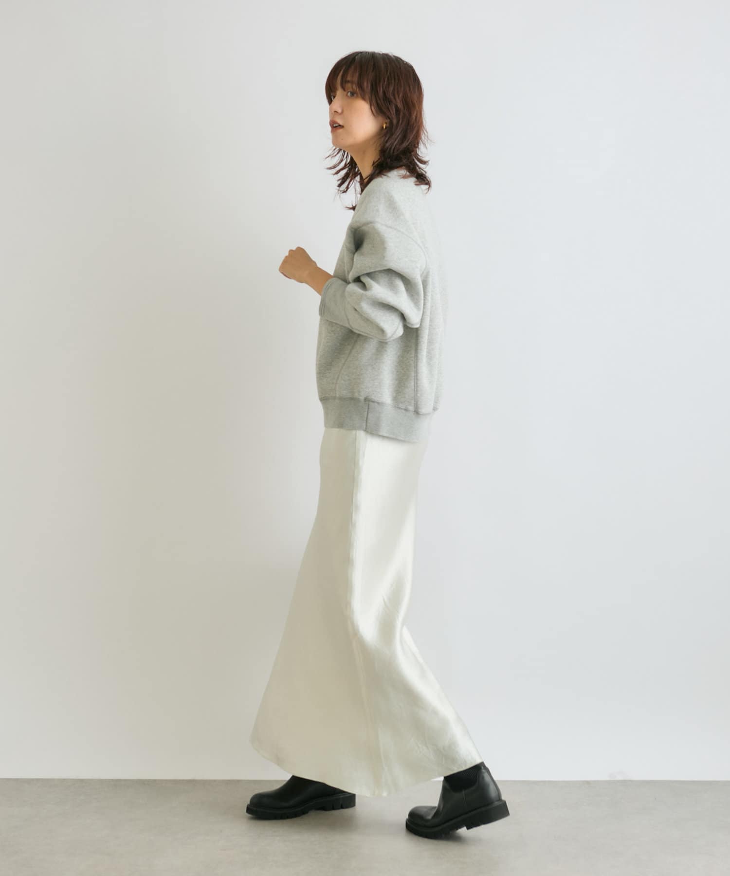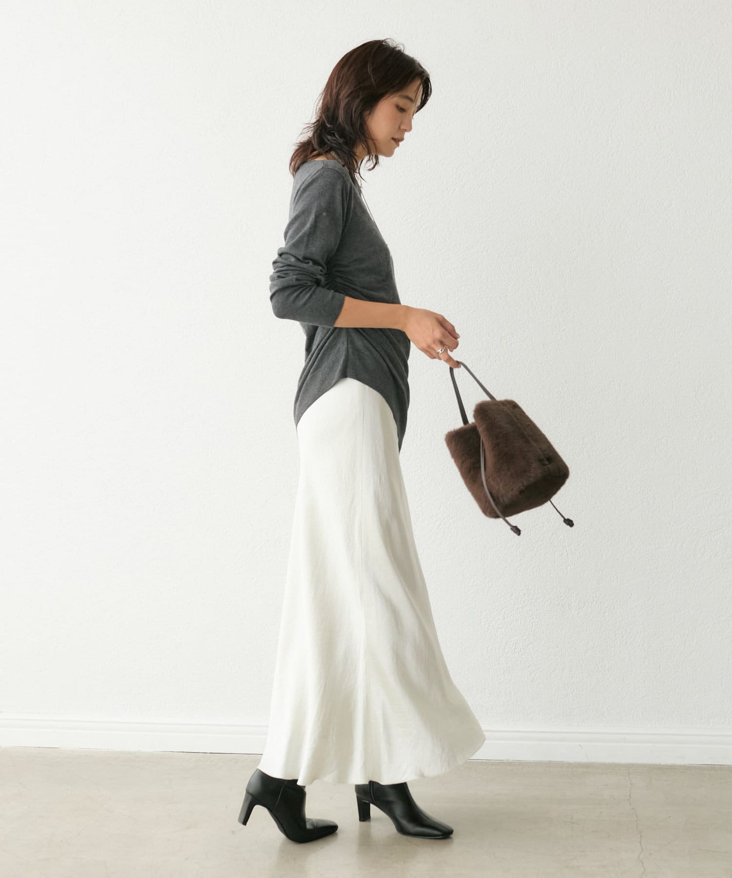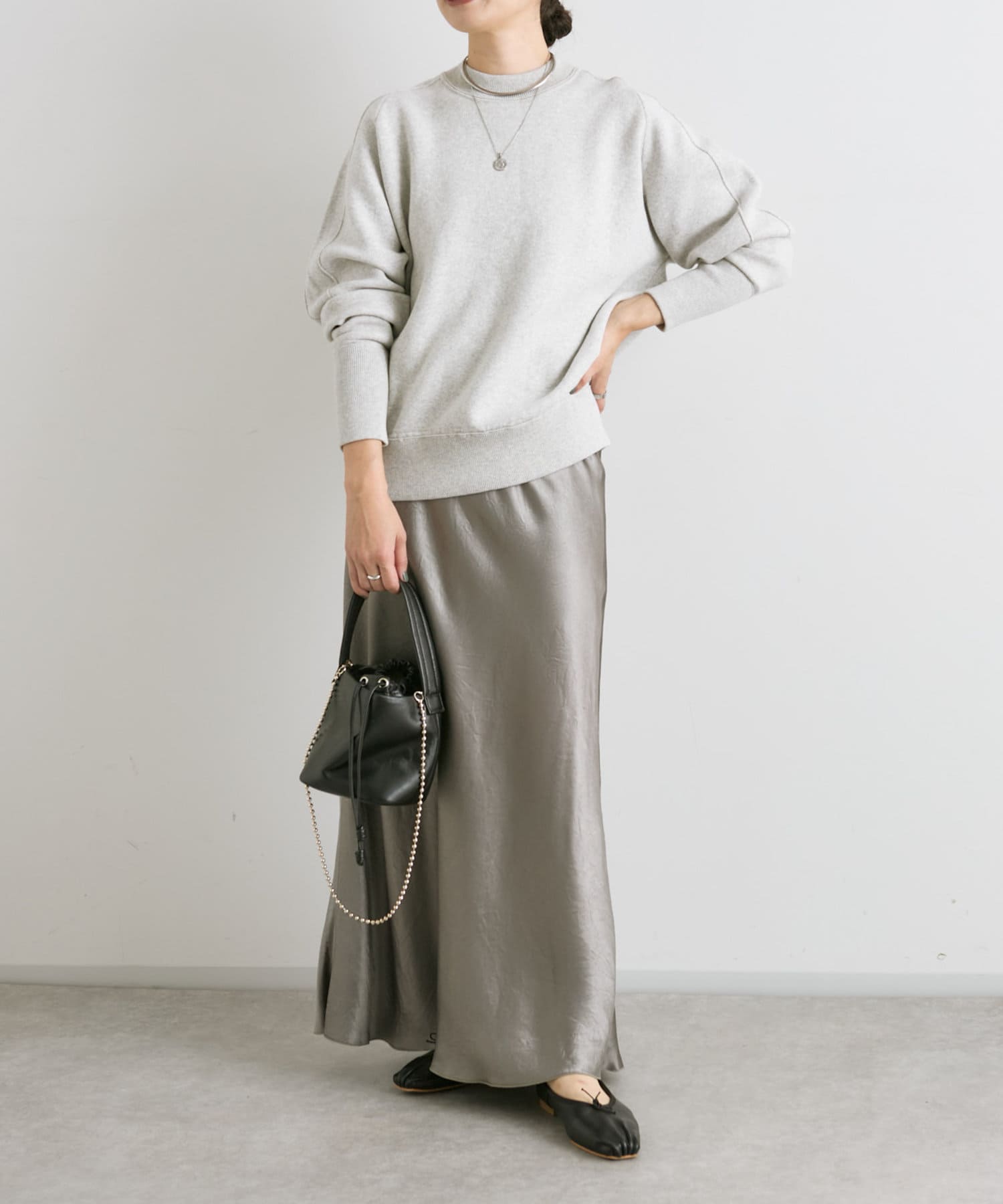 滑らかで光沢のある女性らしい表情と軽い着心地で、シーズンレスで使えるスカート。