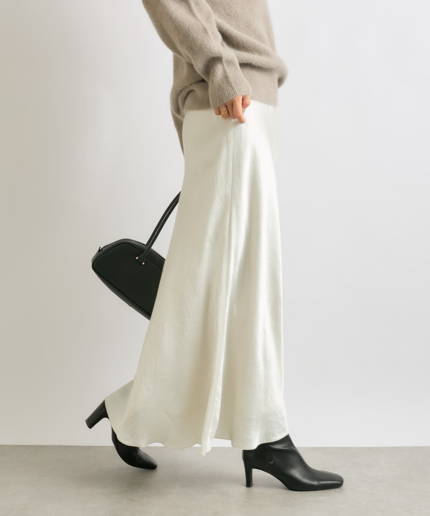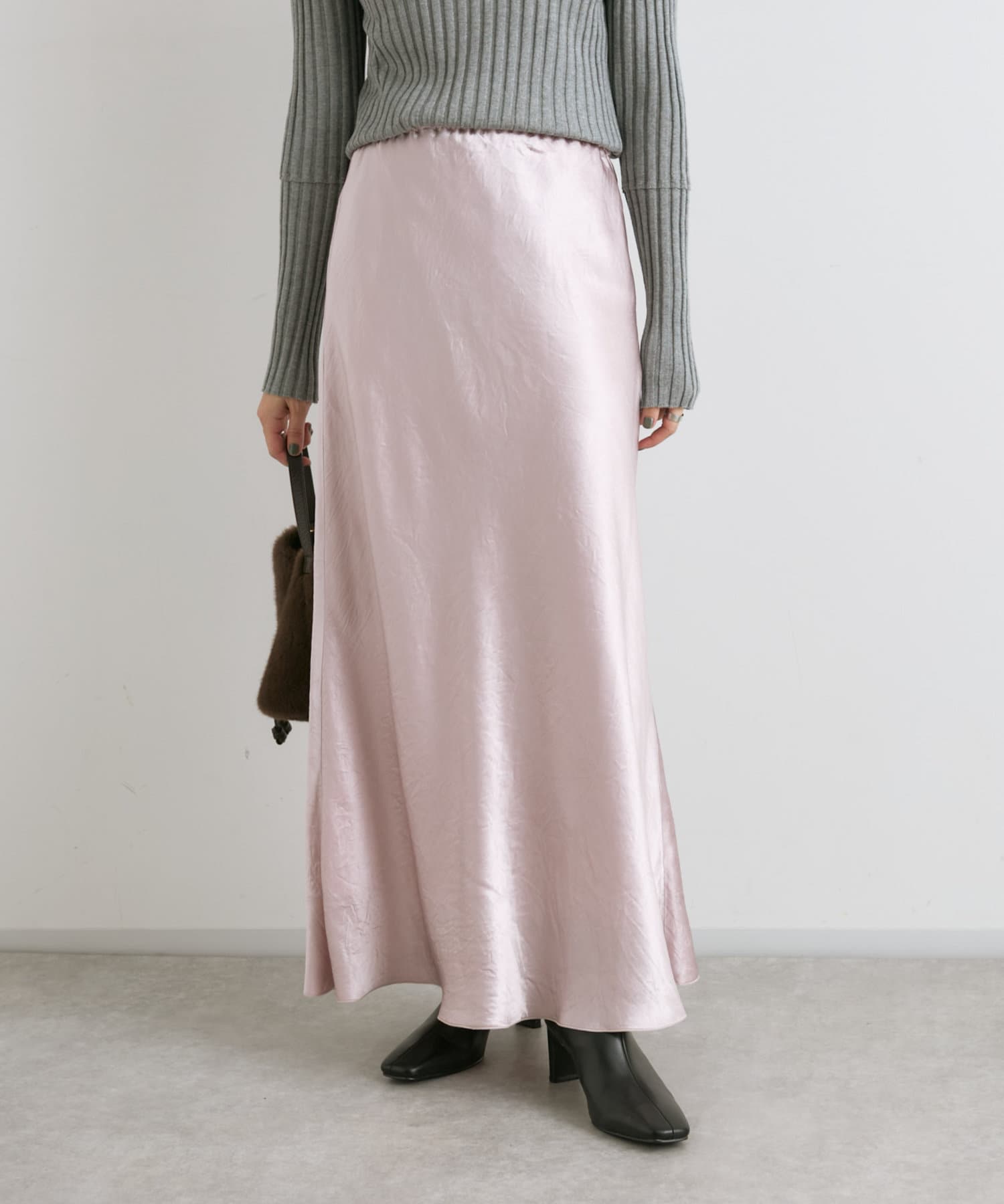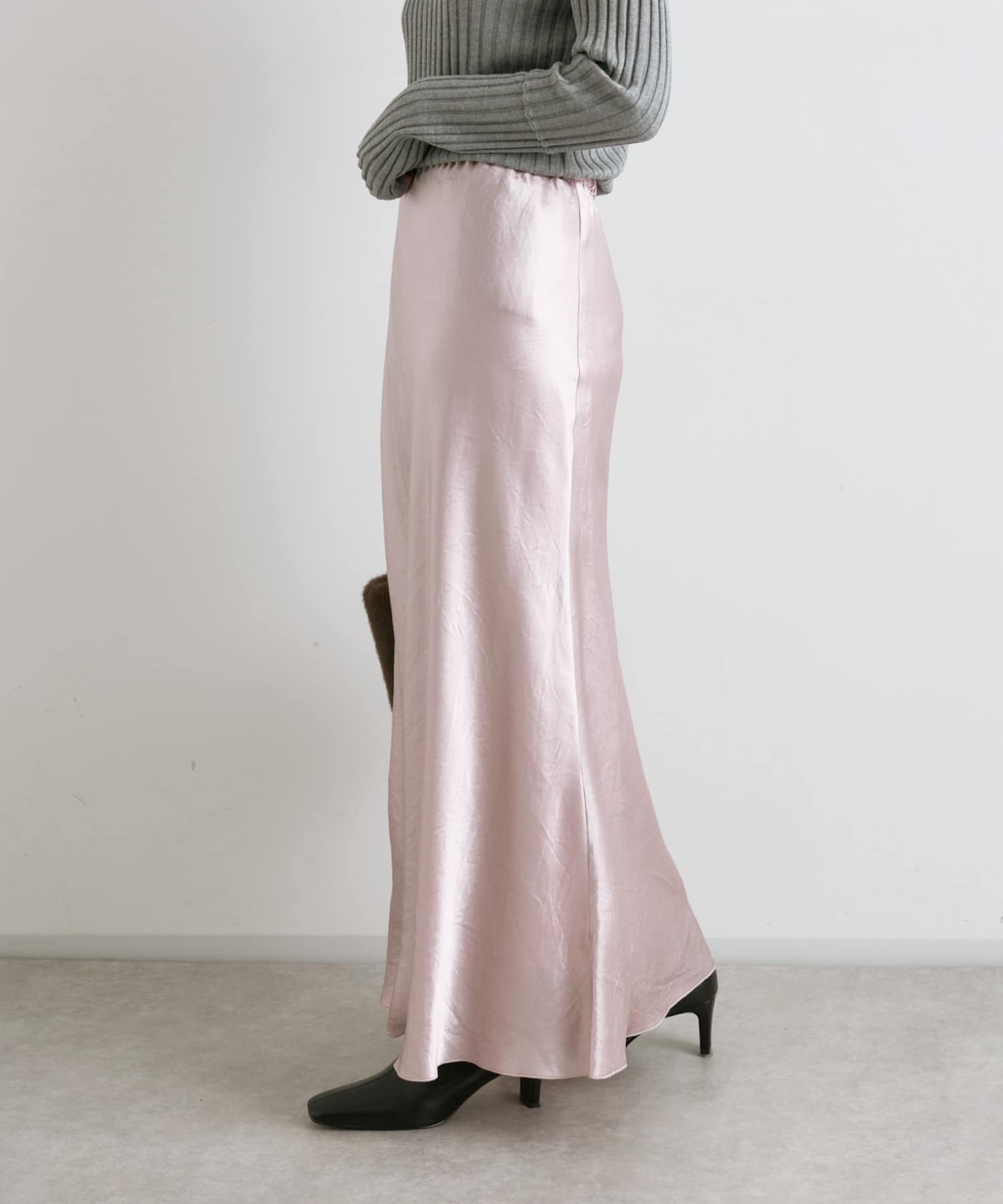 【華やかな光沢感】ワッシャーサテンバイアススカート