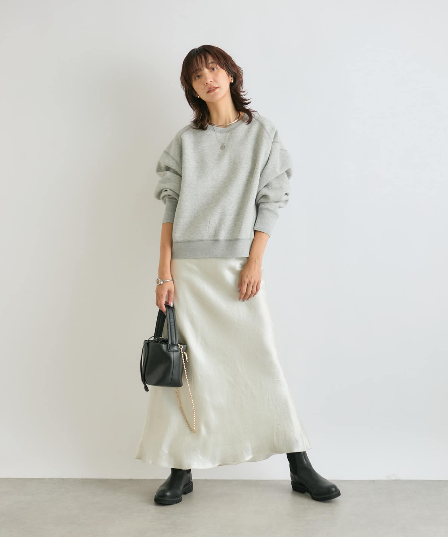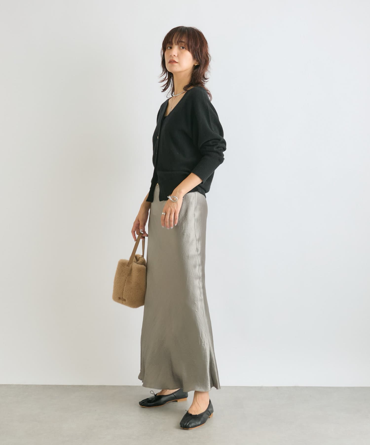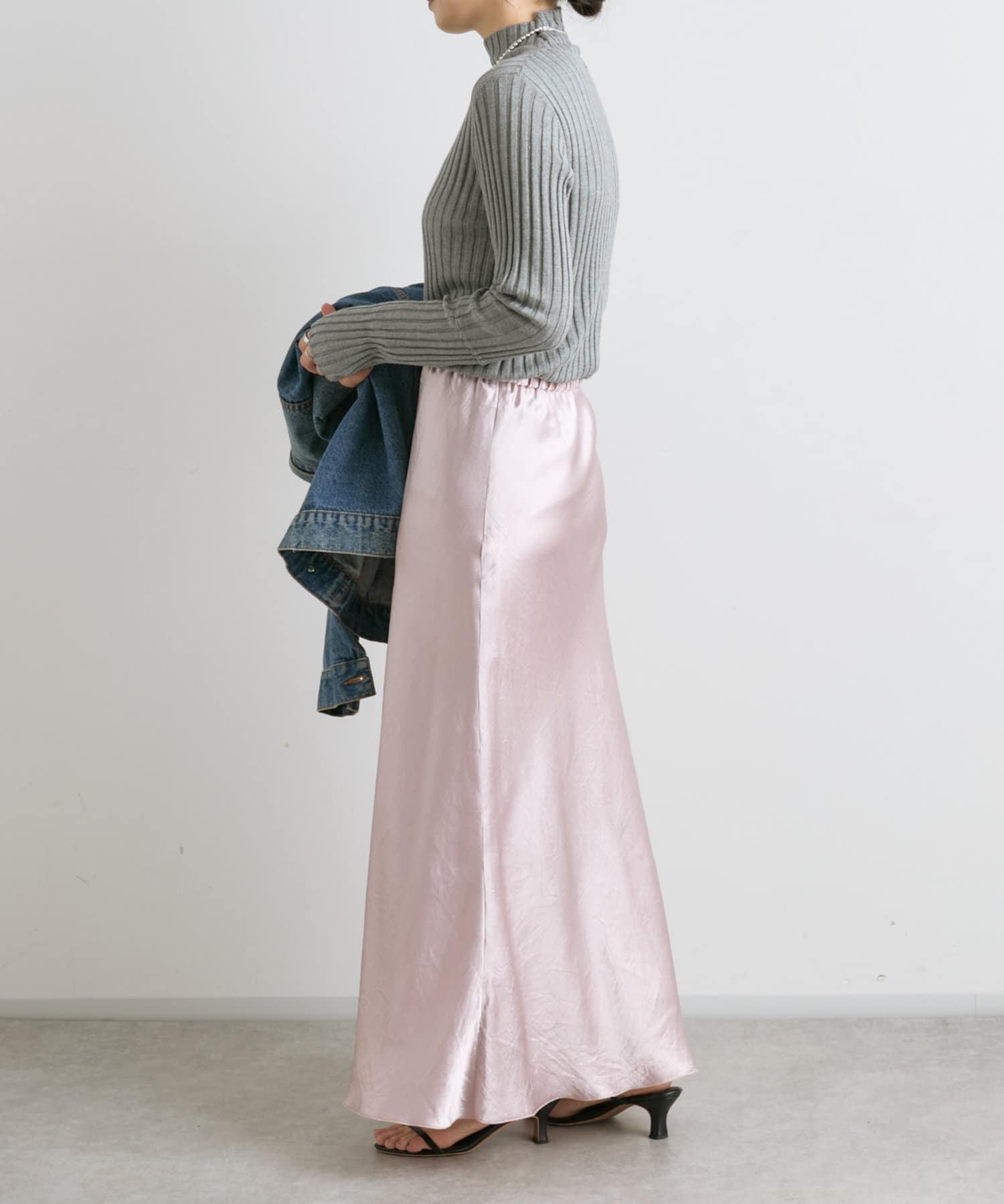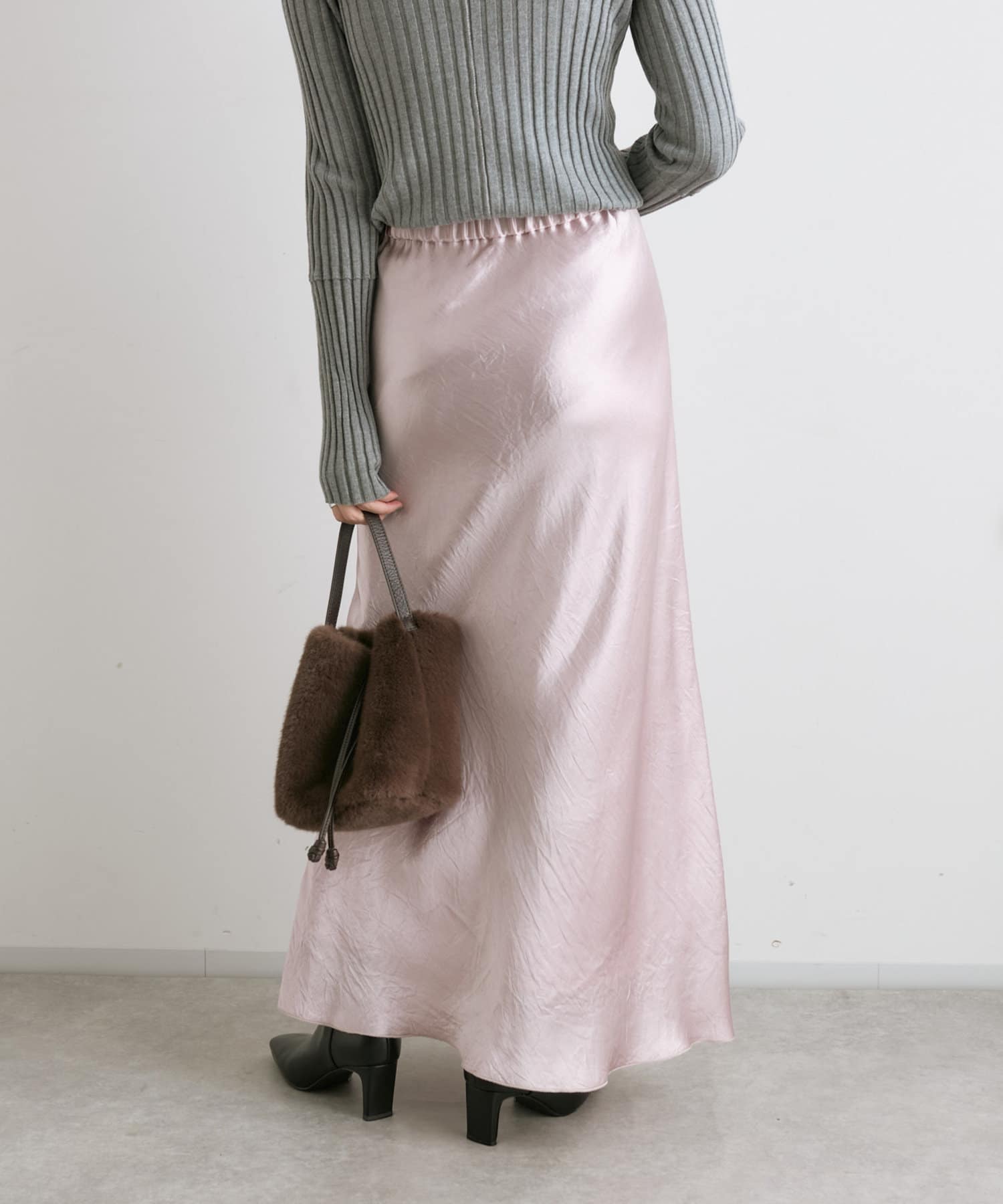 【華やかな光沢感】ワッシャーサテンバイアススカート