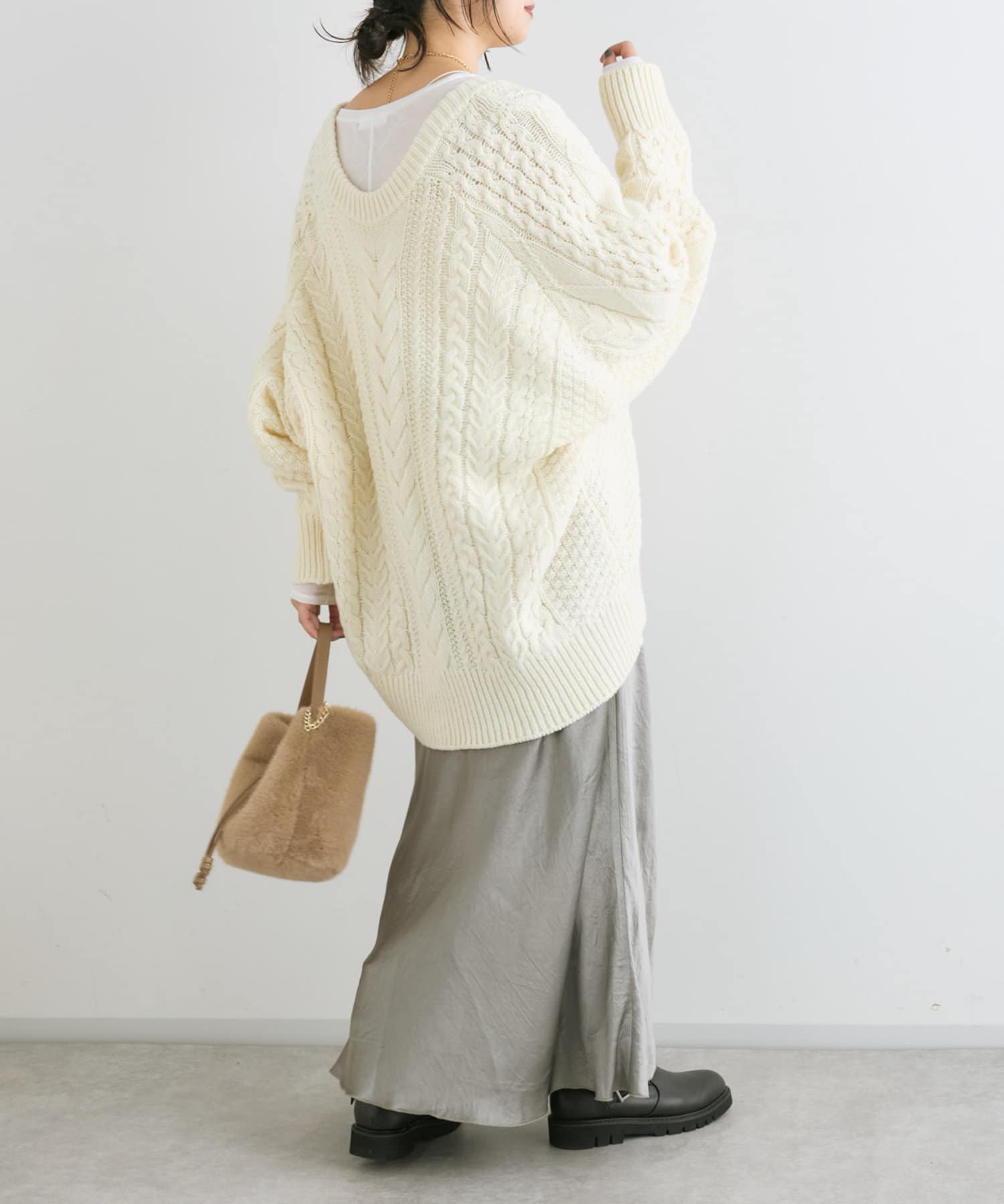 スラブヤーンオープンUネックニット(RDZ10A2205A0002)
