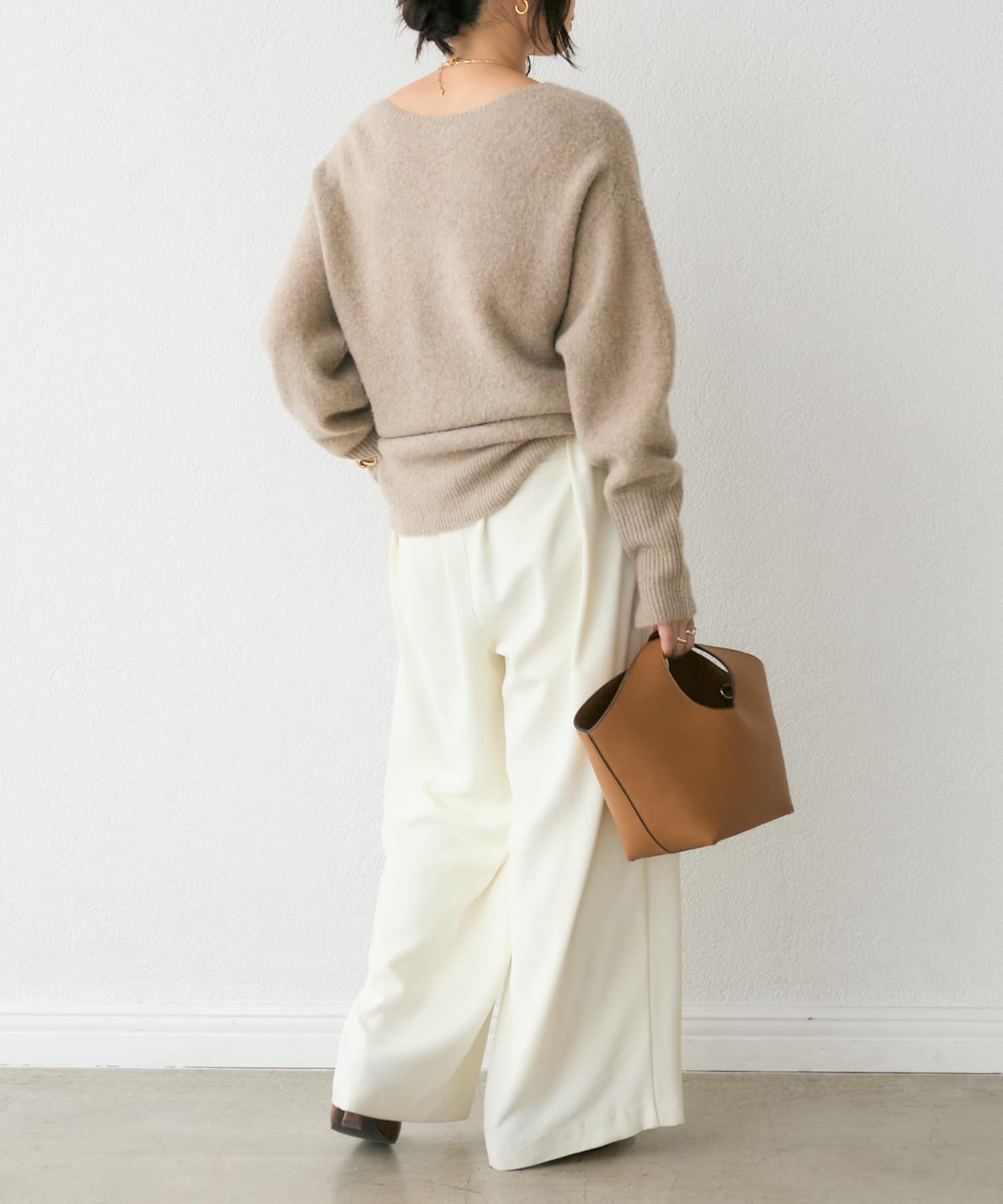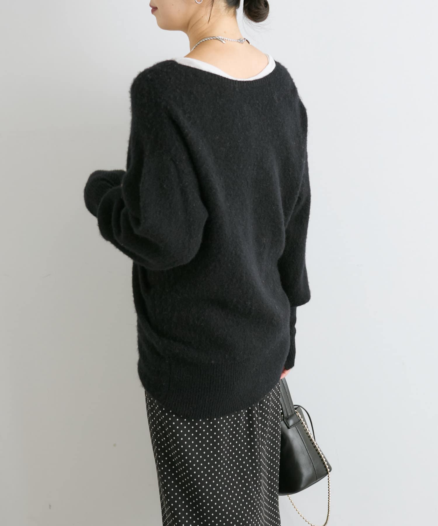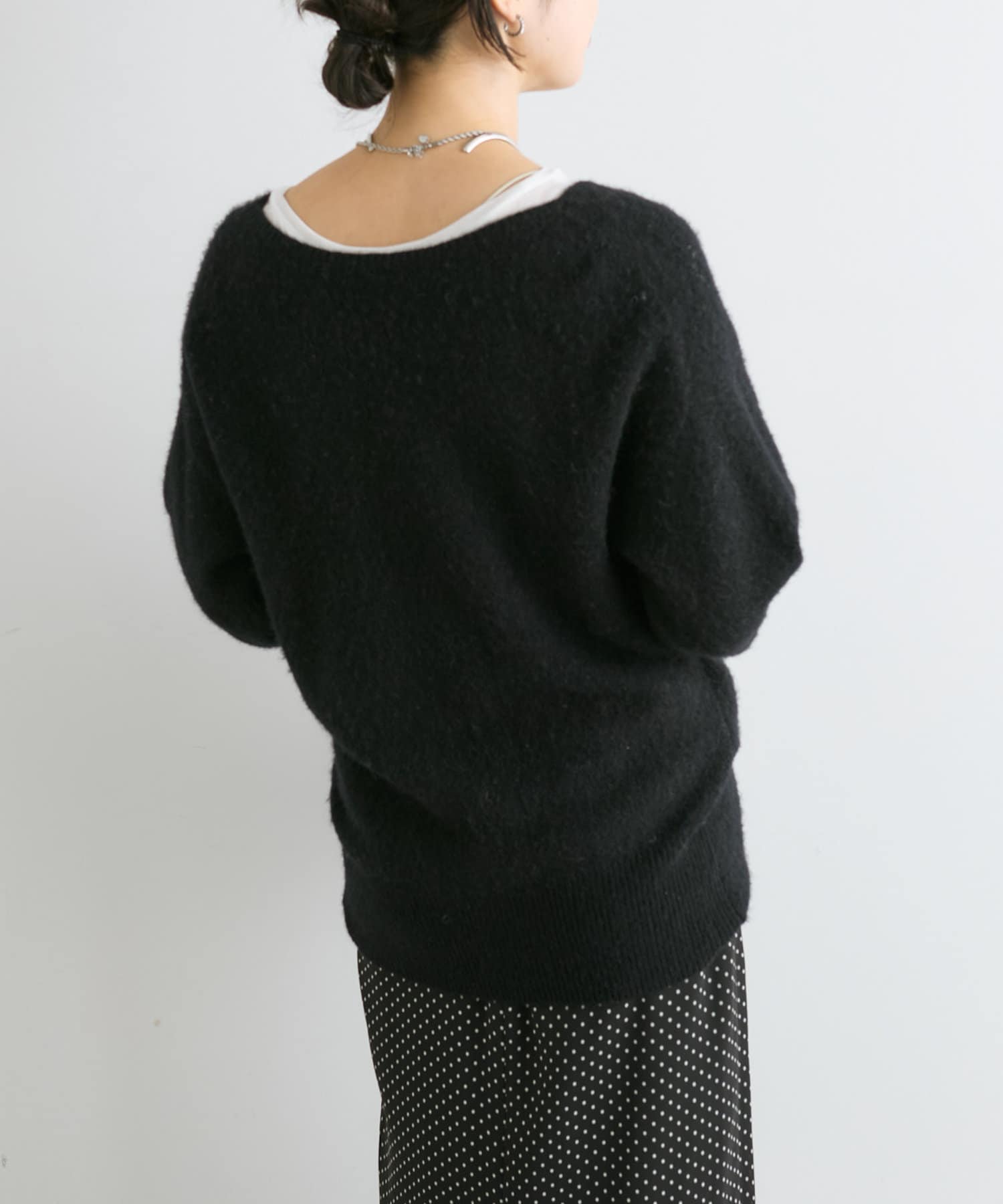 今季は後衿をボートネックに改良。前後でガラッと印象を変えて着こなせるデザインにアップデート。