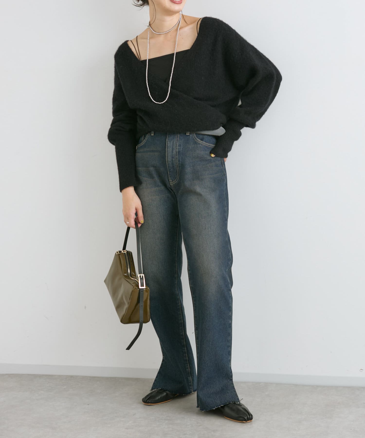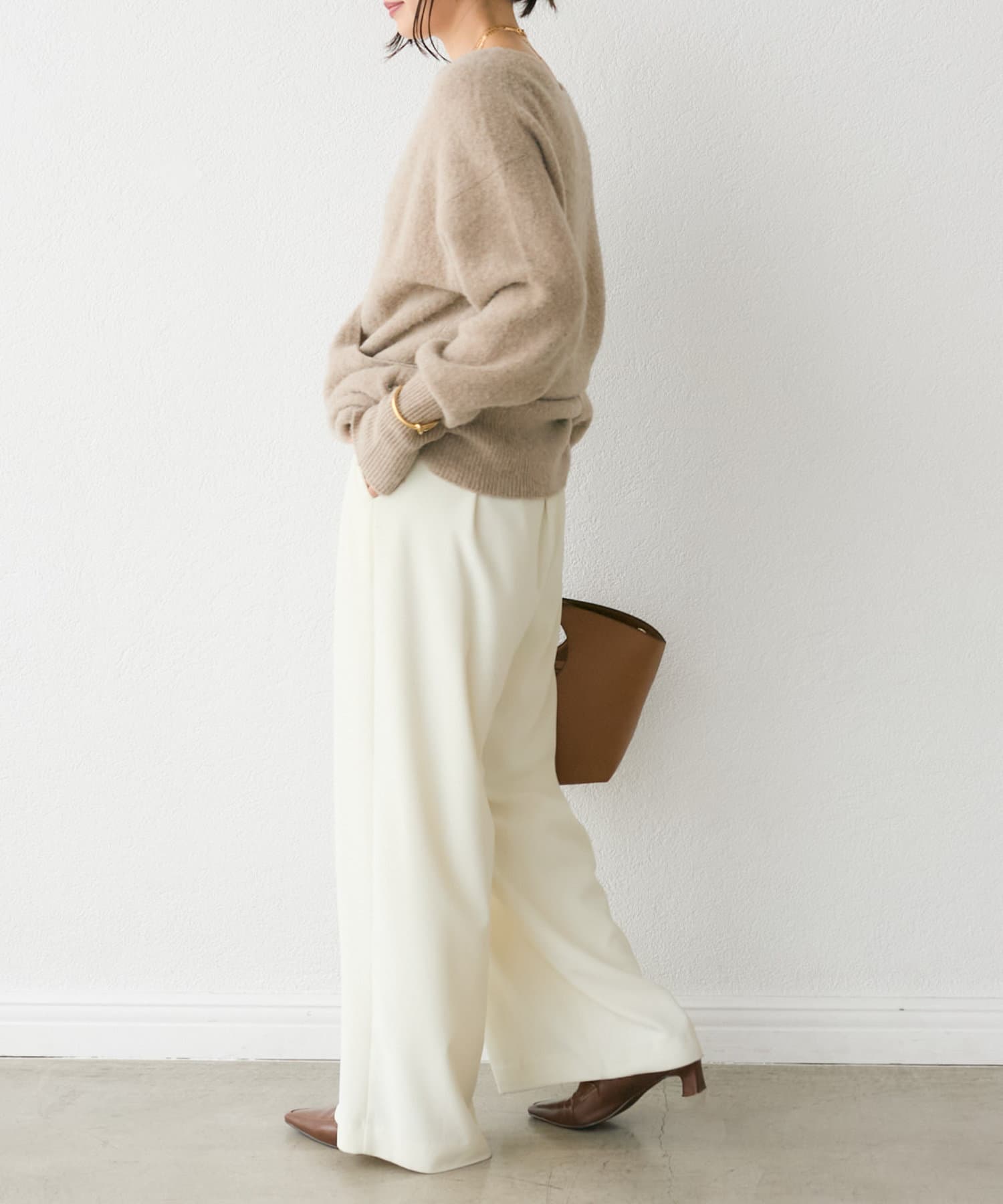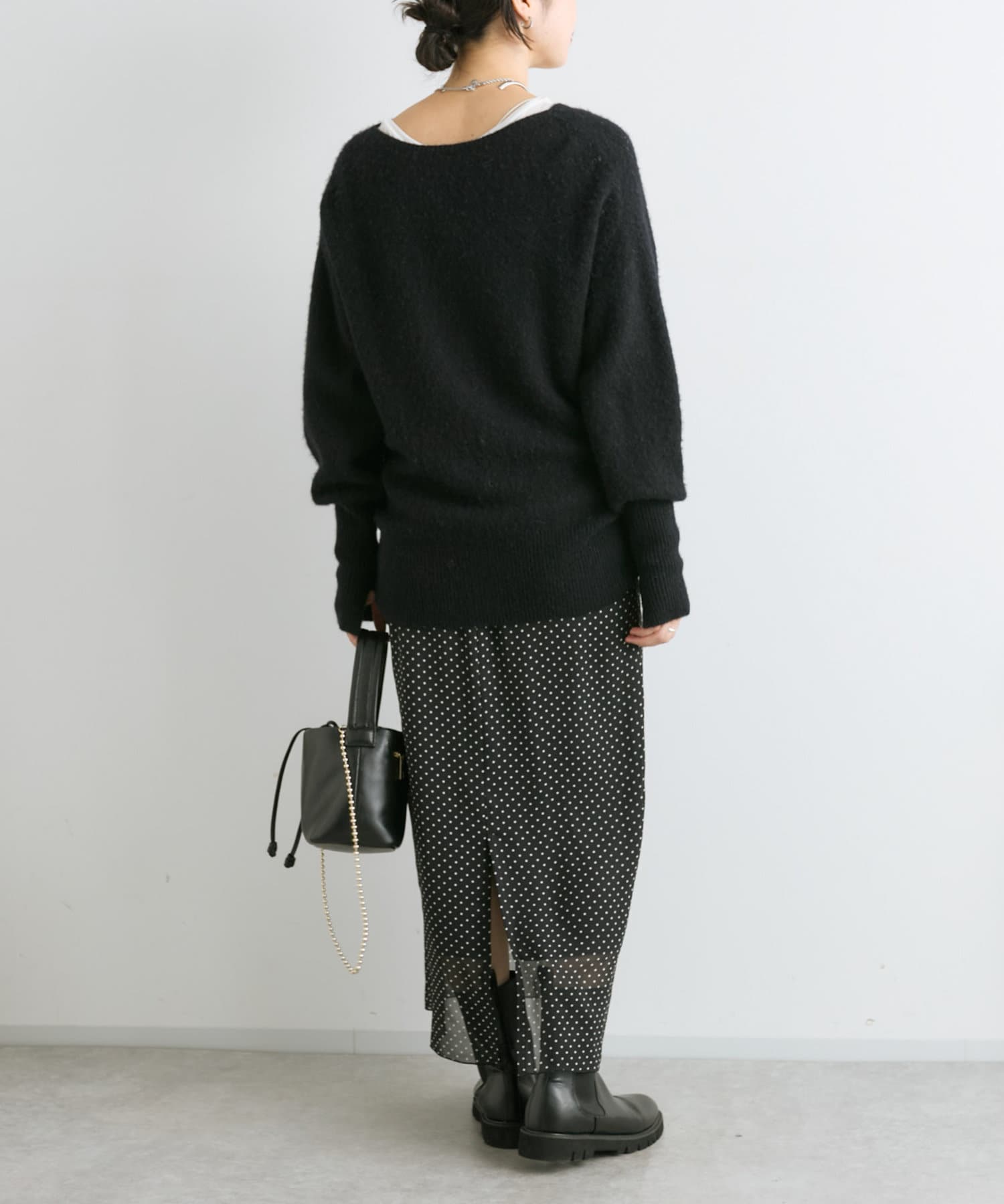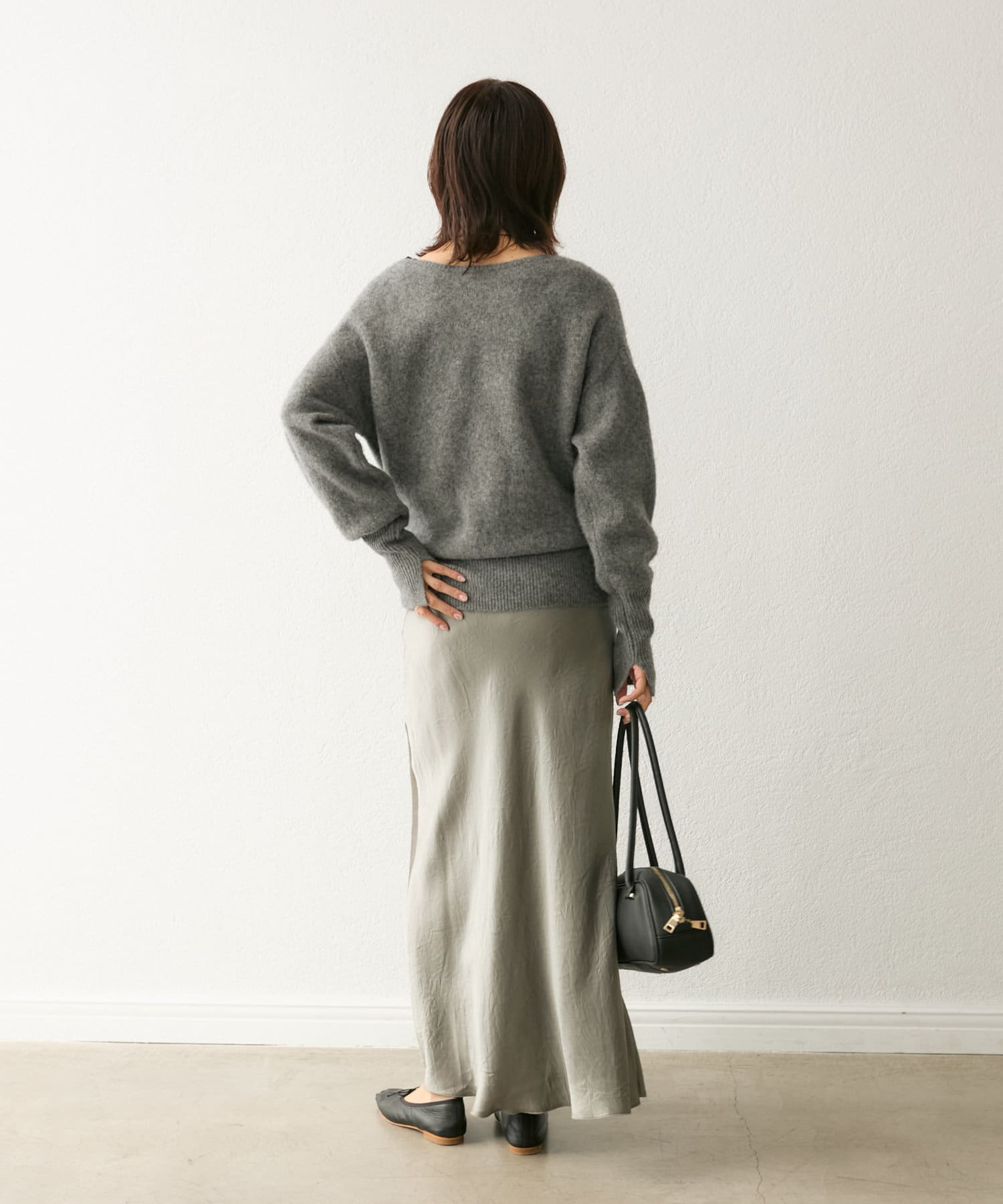 今季は後衿をボートネックに改良。前後でガラッと印象を変えて着こなせるデザインにアップデート。