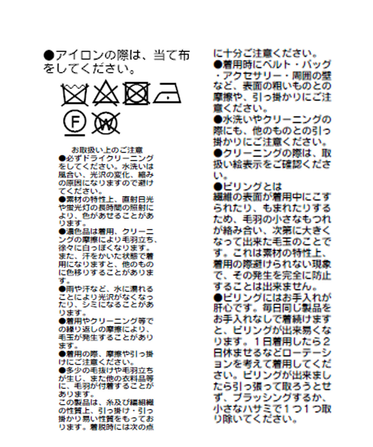 洗濯方法:ドライクリーニング