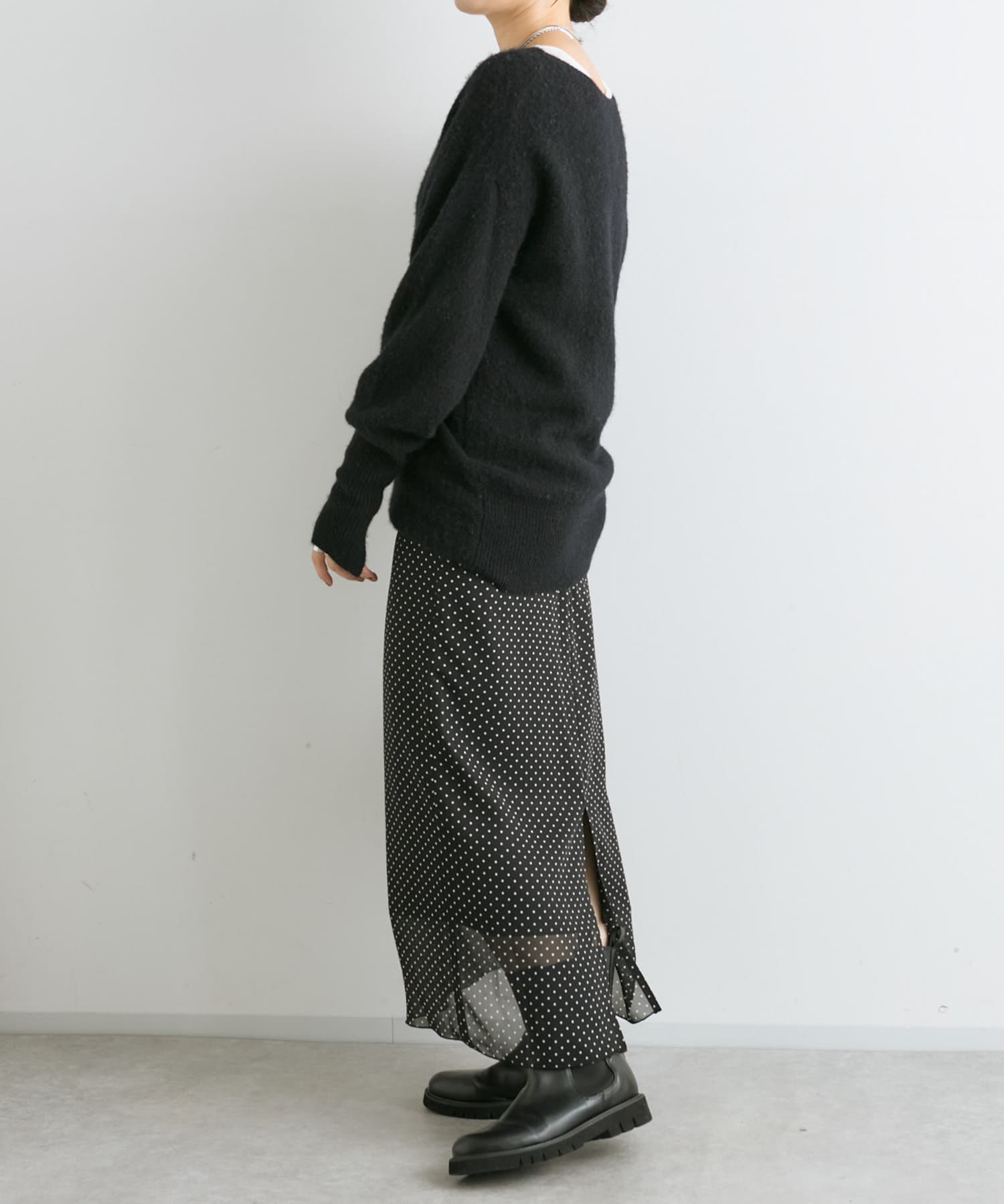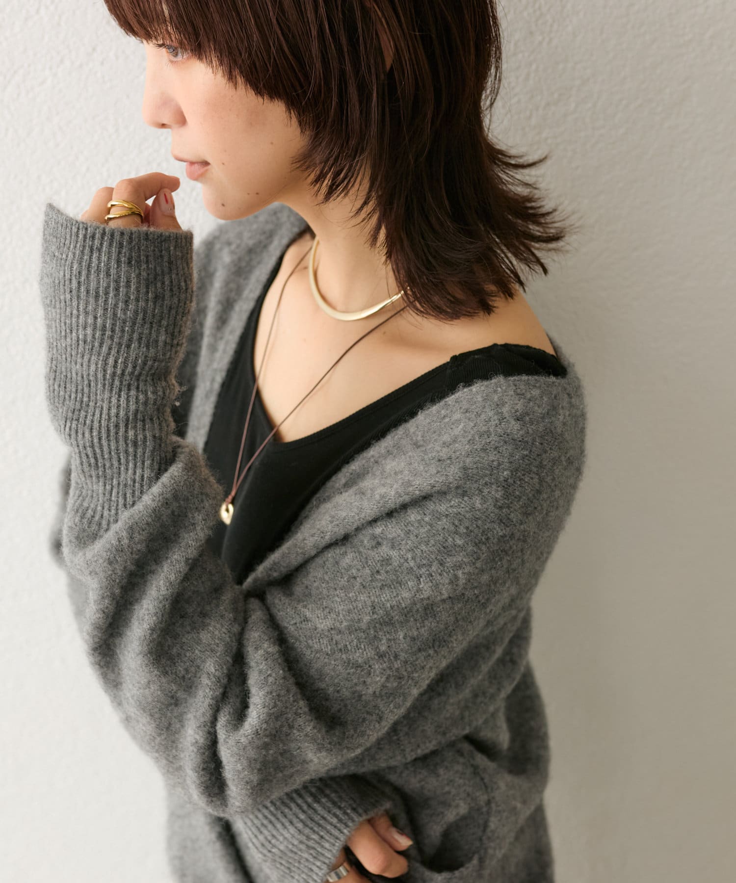 女性らしい長めの袖リブや、袖口スリットでさりげなく抜け感もプラス。