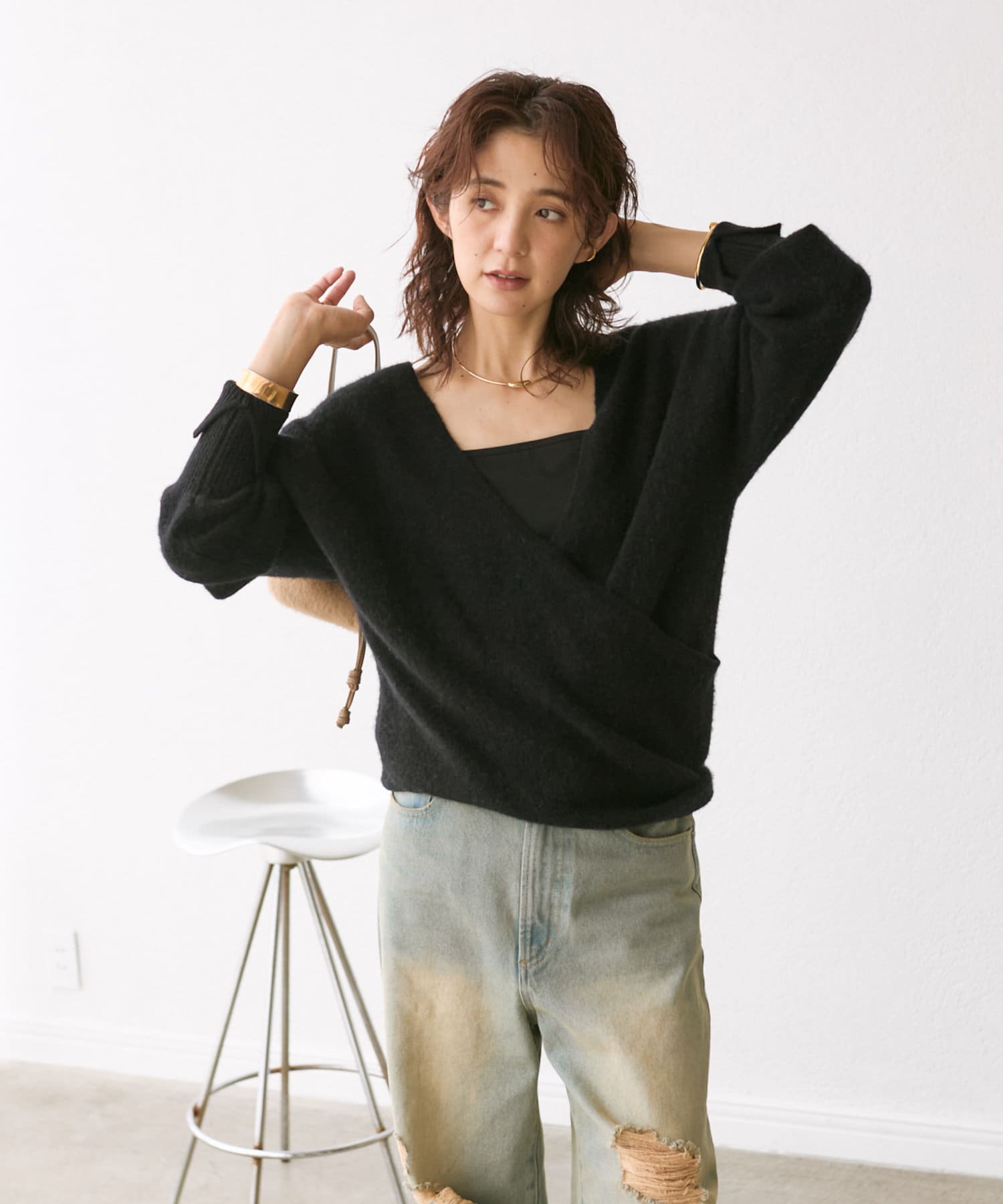 【前後2WAY】YAK100カシュクールニット