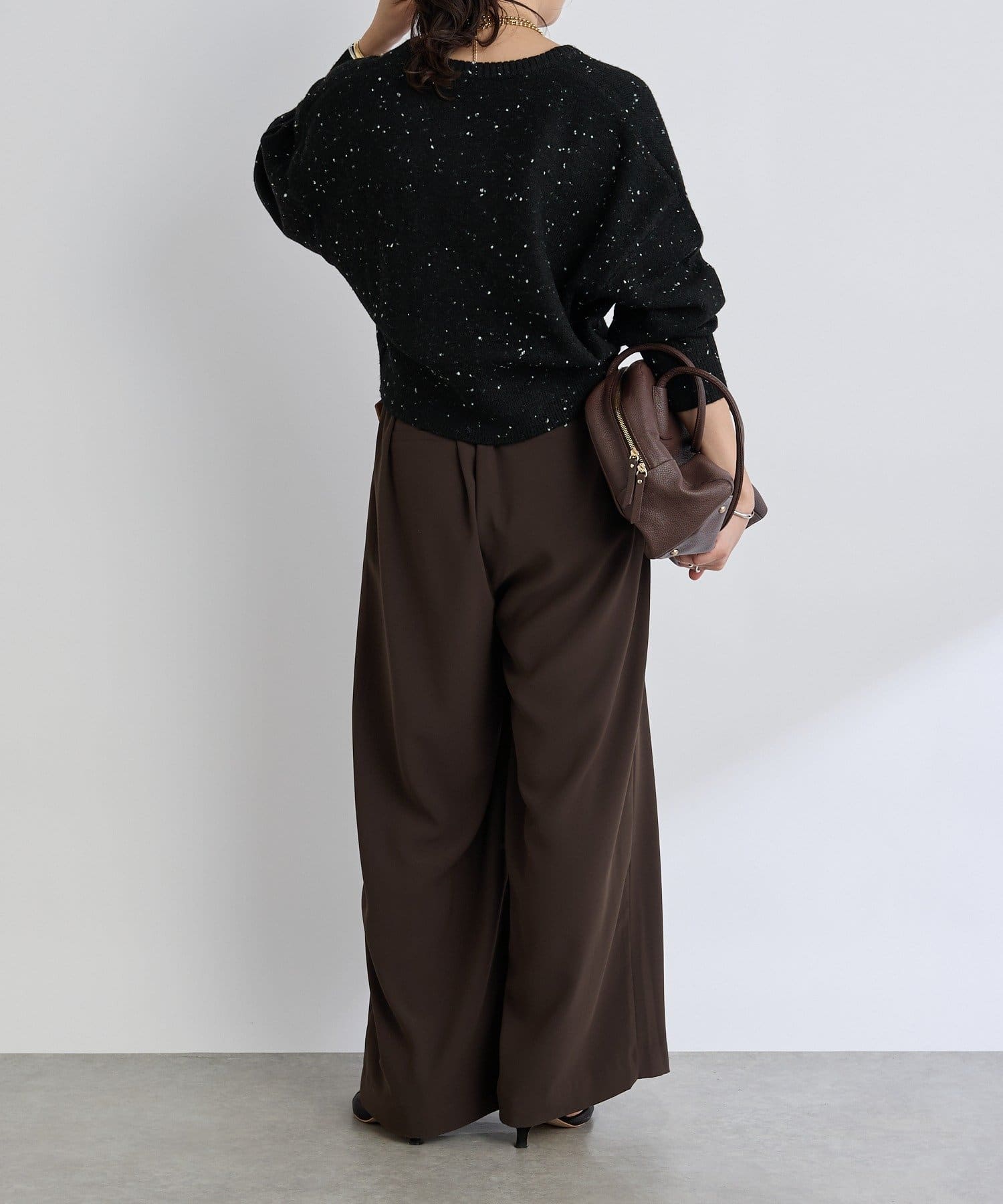 ボトムはワイドパンツなどボリュームのあるアイテムとのバランスがおすすめ。