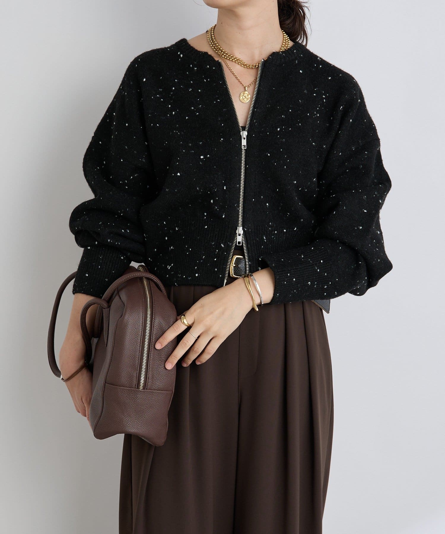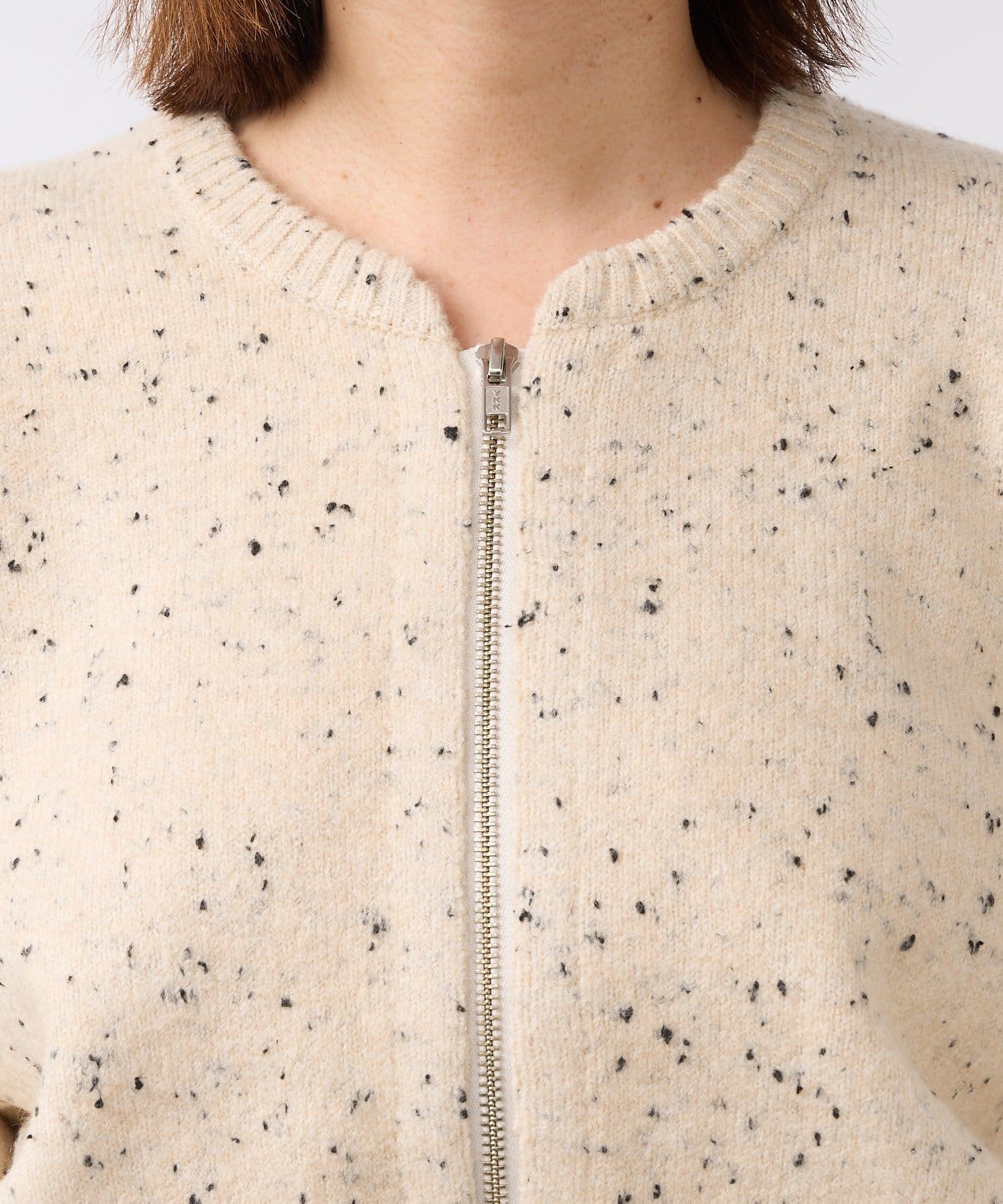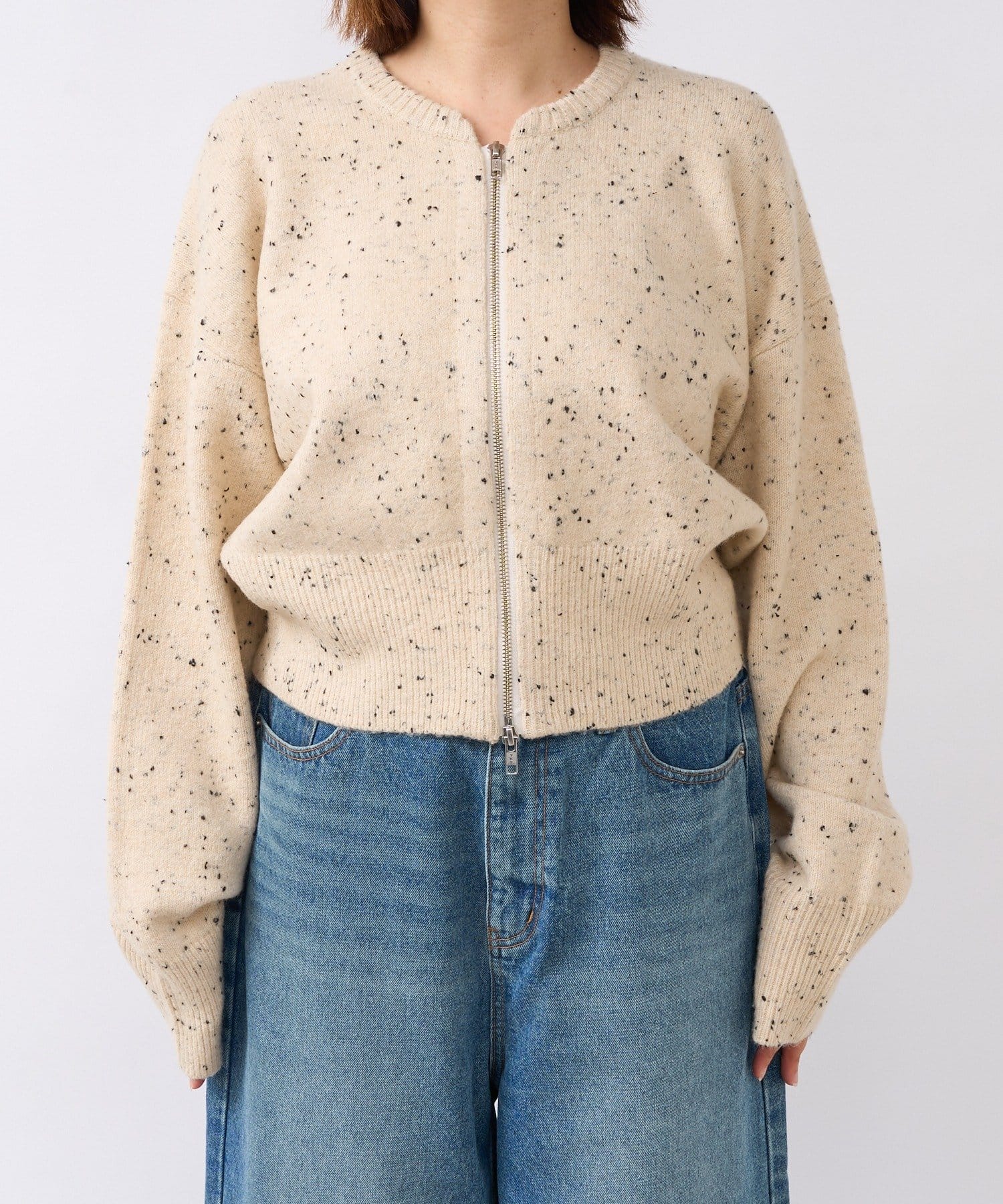 配色のネップの入ったモチっとした風合いが特徴のショート丈のZIPニット。