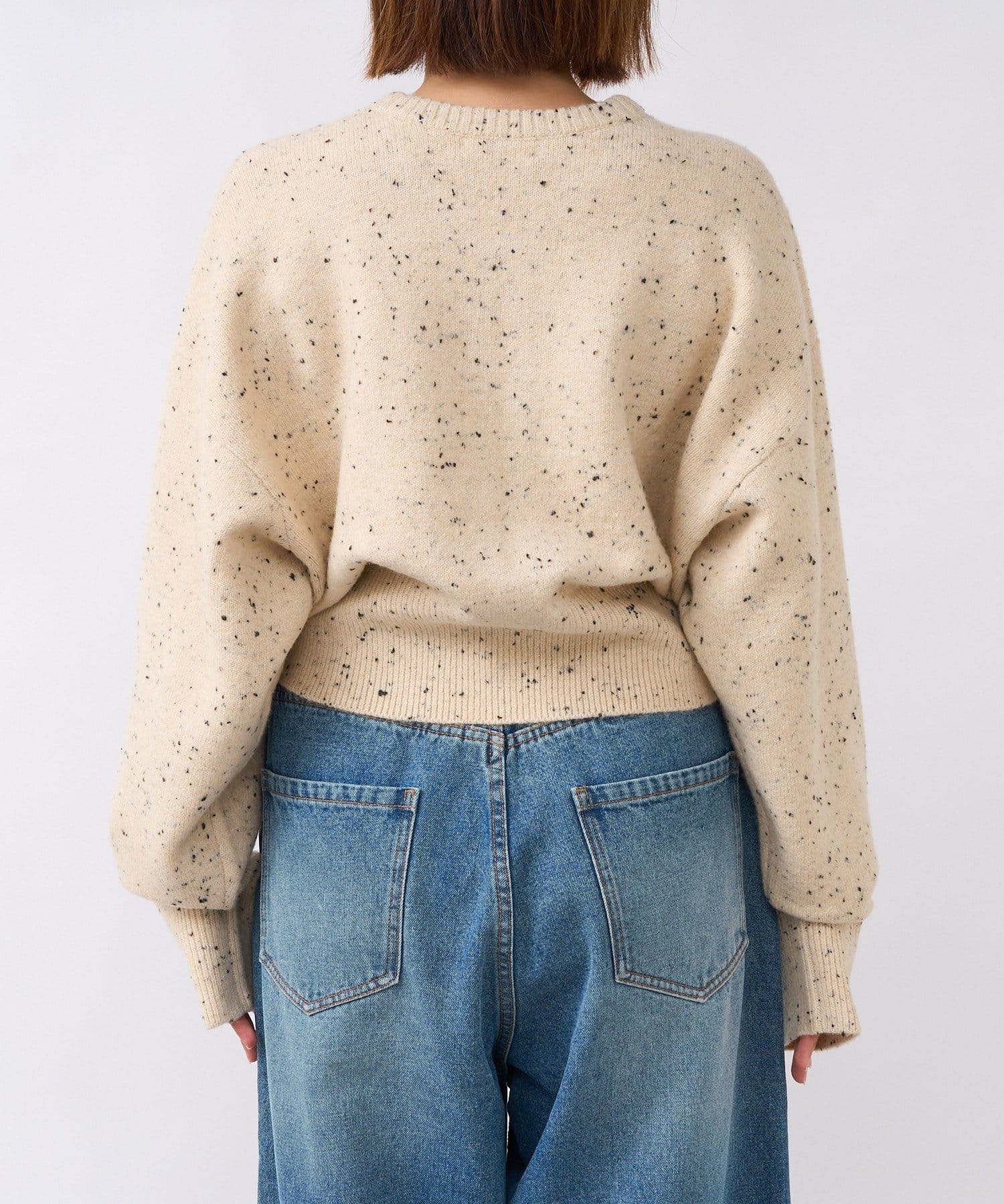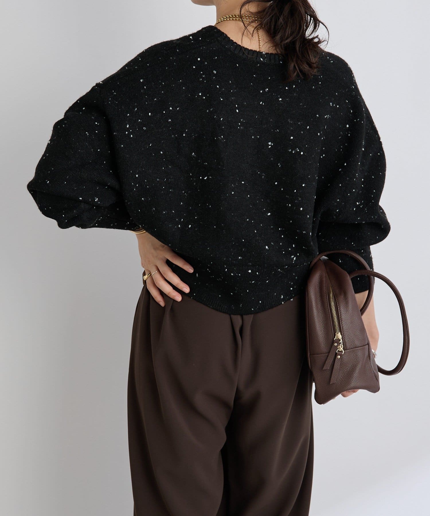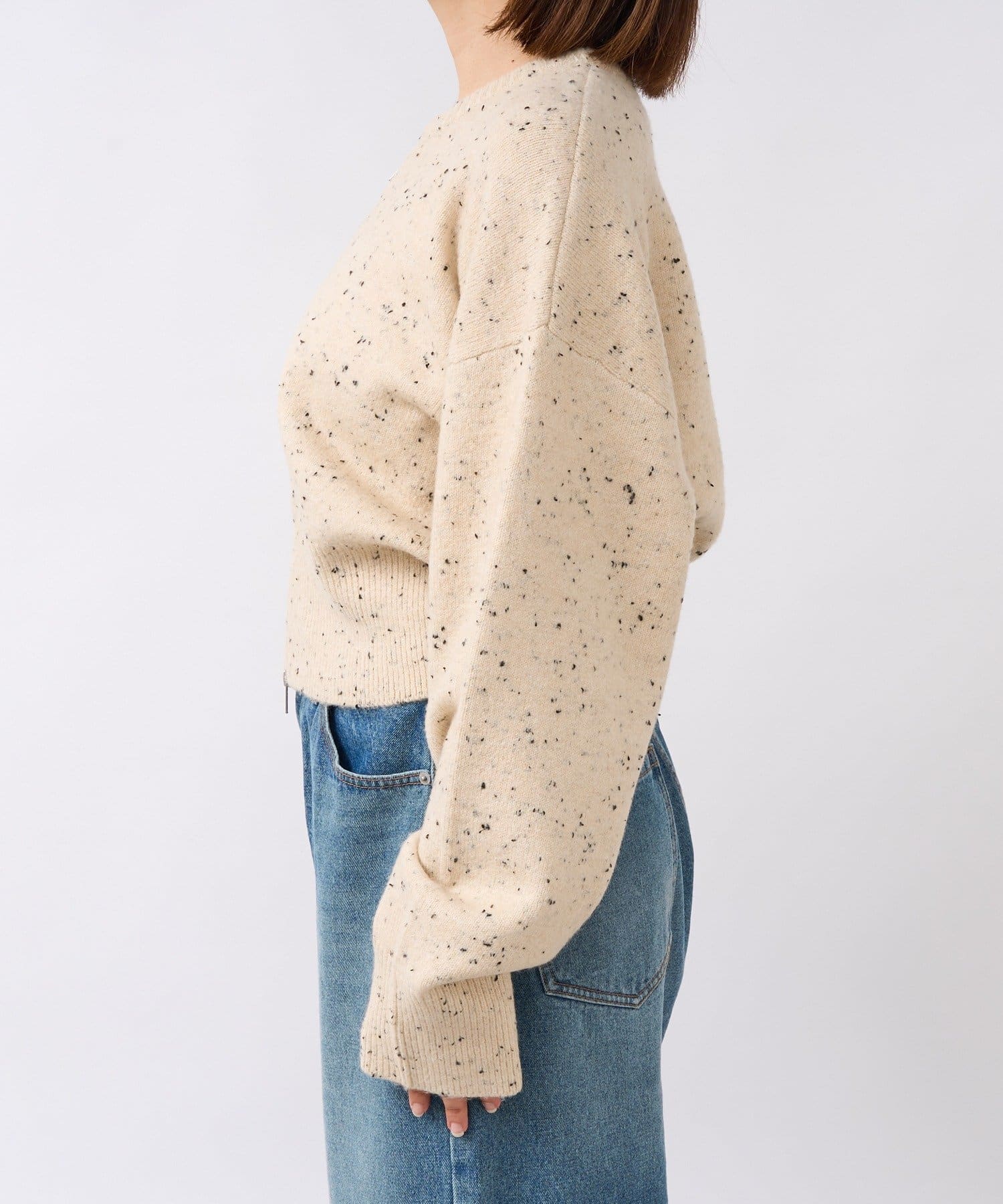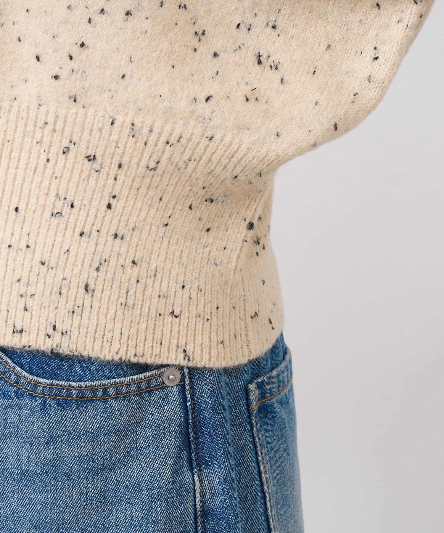 配色のネップの入ったモチっとした風合いが特徴のショート丈のZIPニット。