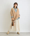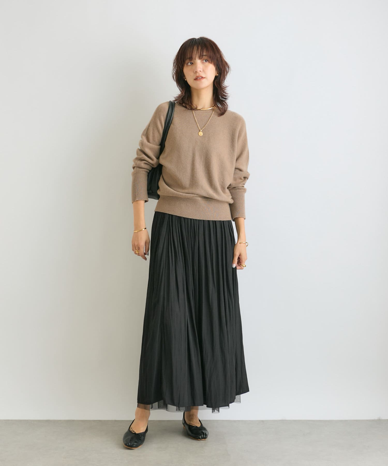 落ち感のある素材なので、冬のへアリーなニットと合わせてもすっきり見えします。