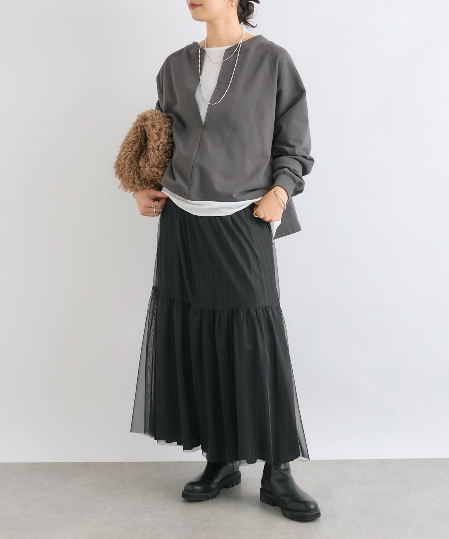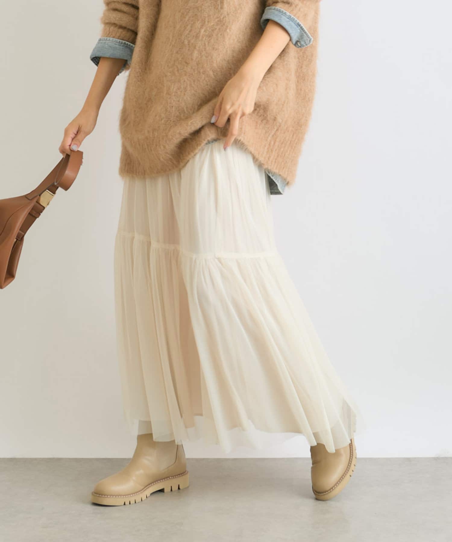 繊細で綺麗な落ち感あるチュール素材を使用。