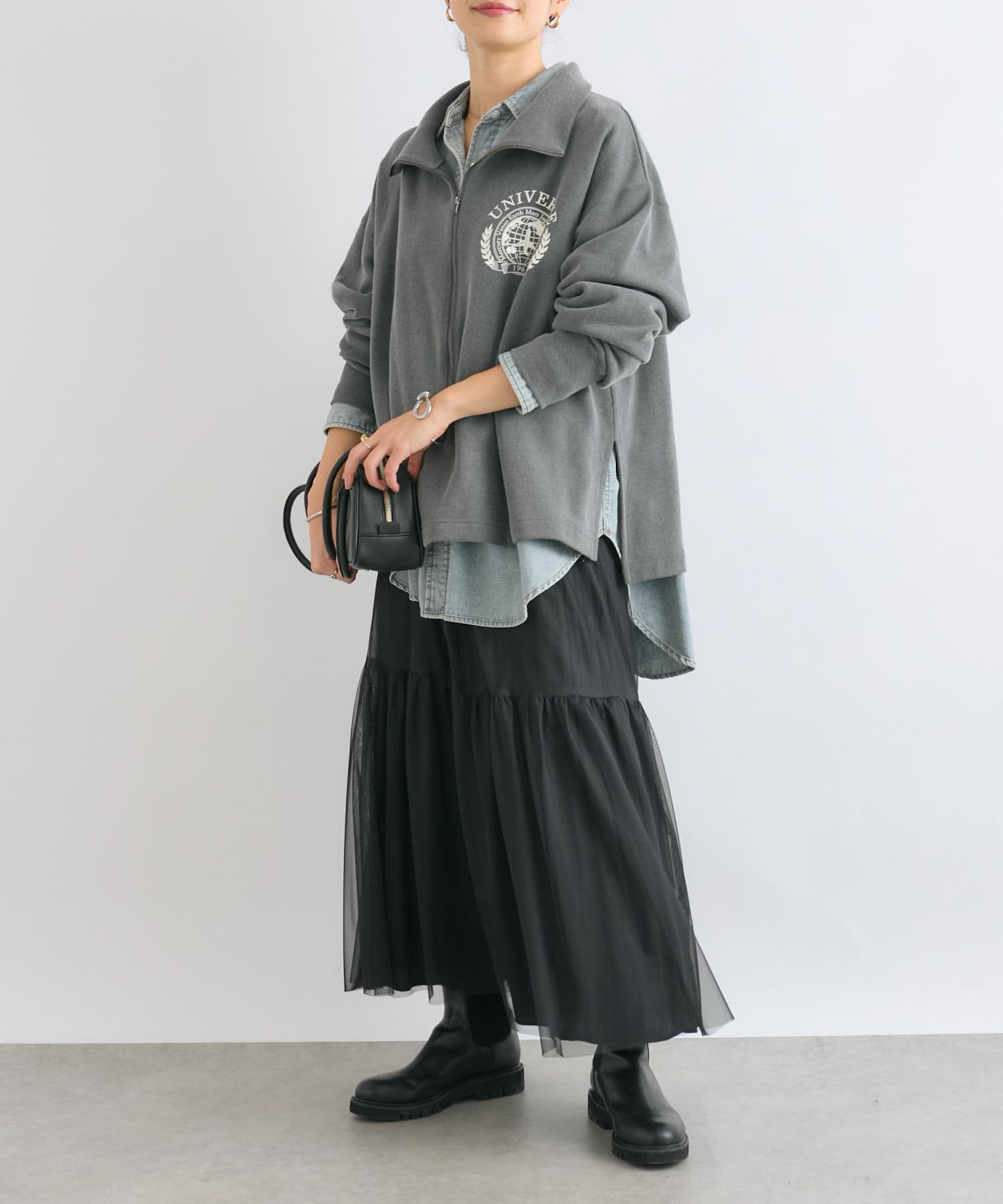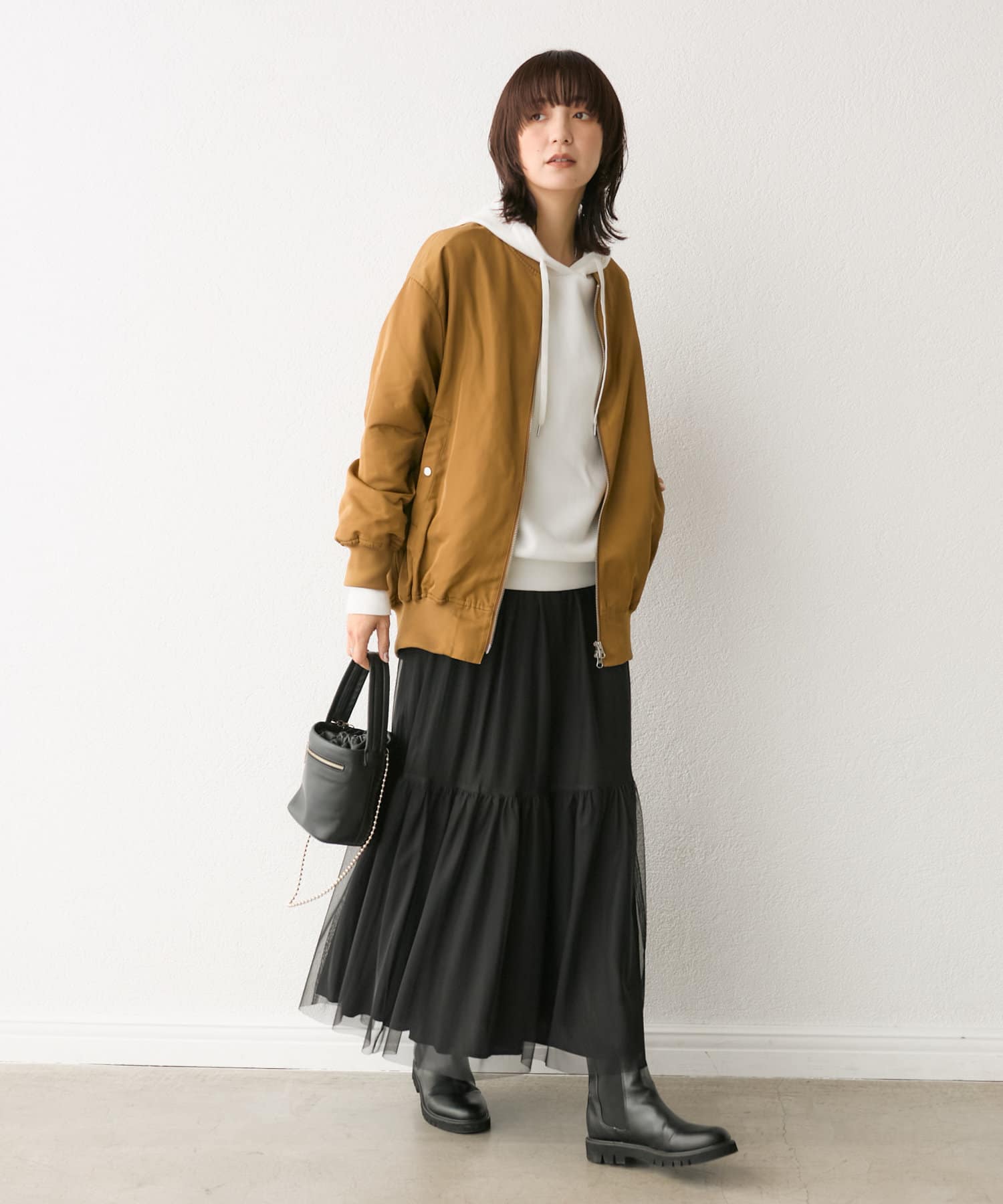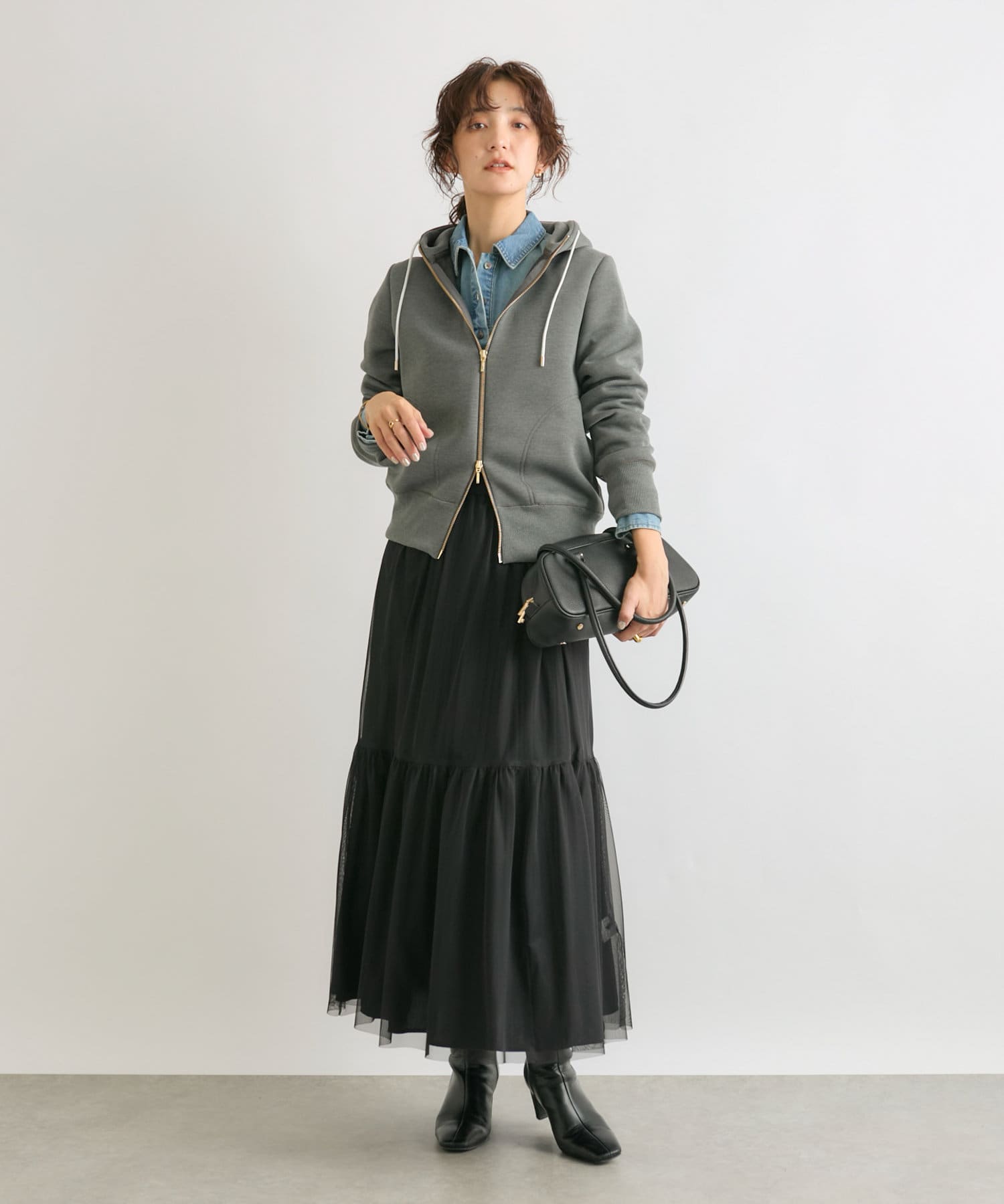 スニーカーでもショートブーツでもバランスよく着用していただける程よい長さの着丈もポイントです。