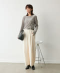 シンプルで色々なトップスに合わせやすいですが、少し特徴のあるシルエットがコーディネートのポイントになってくれます。