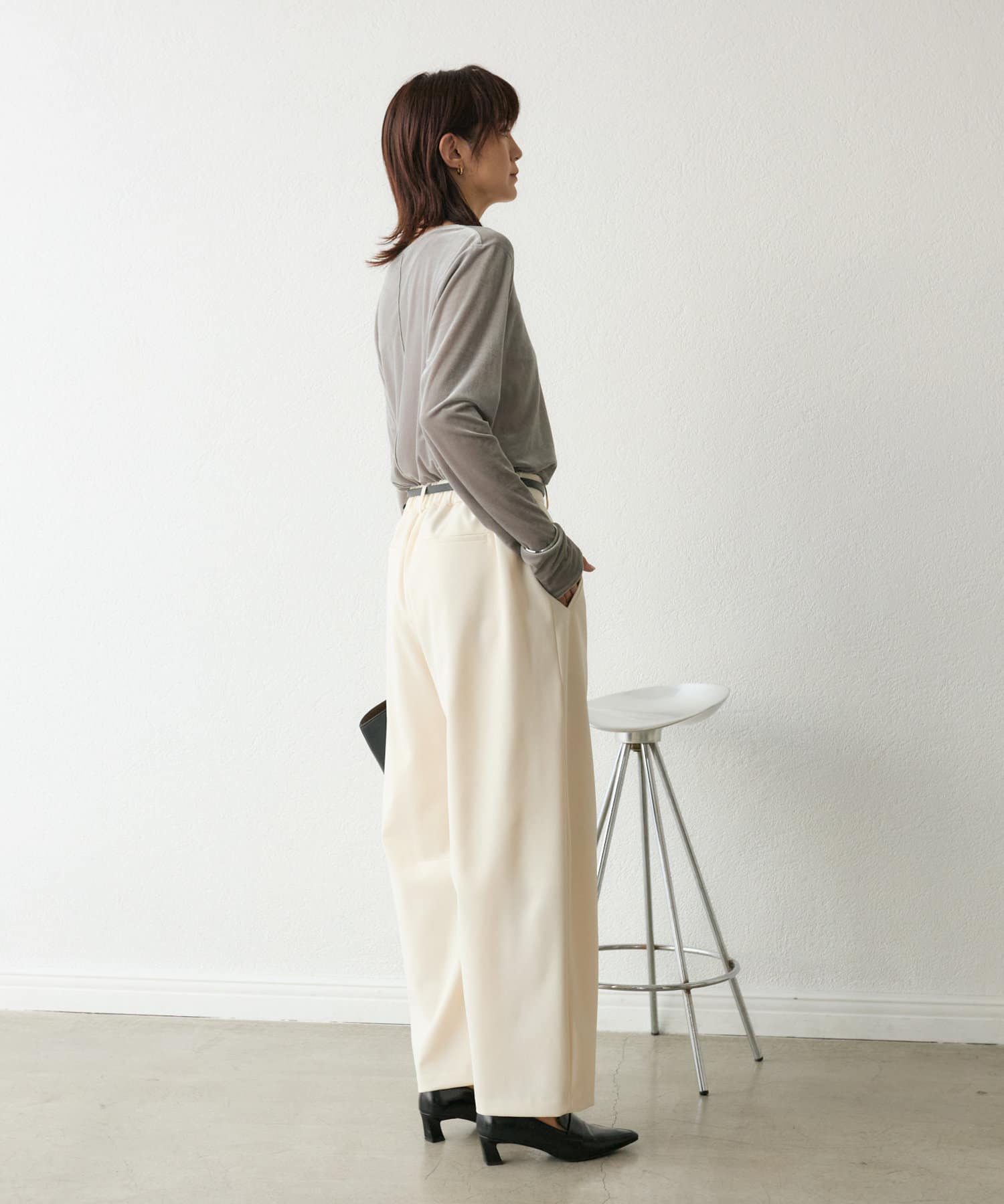 膨らみとドレープ性のある2wayストレッチのダブルクロス素材を使用しているので、フォルムが出つつしなやかさのあるシルエットになっています。