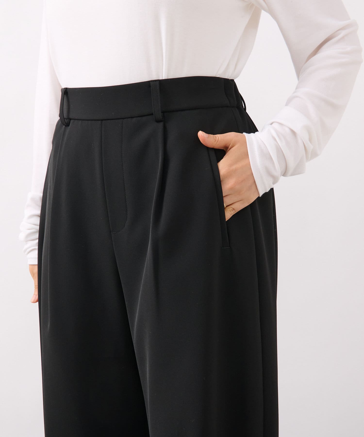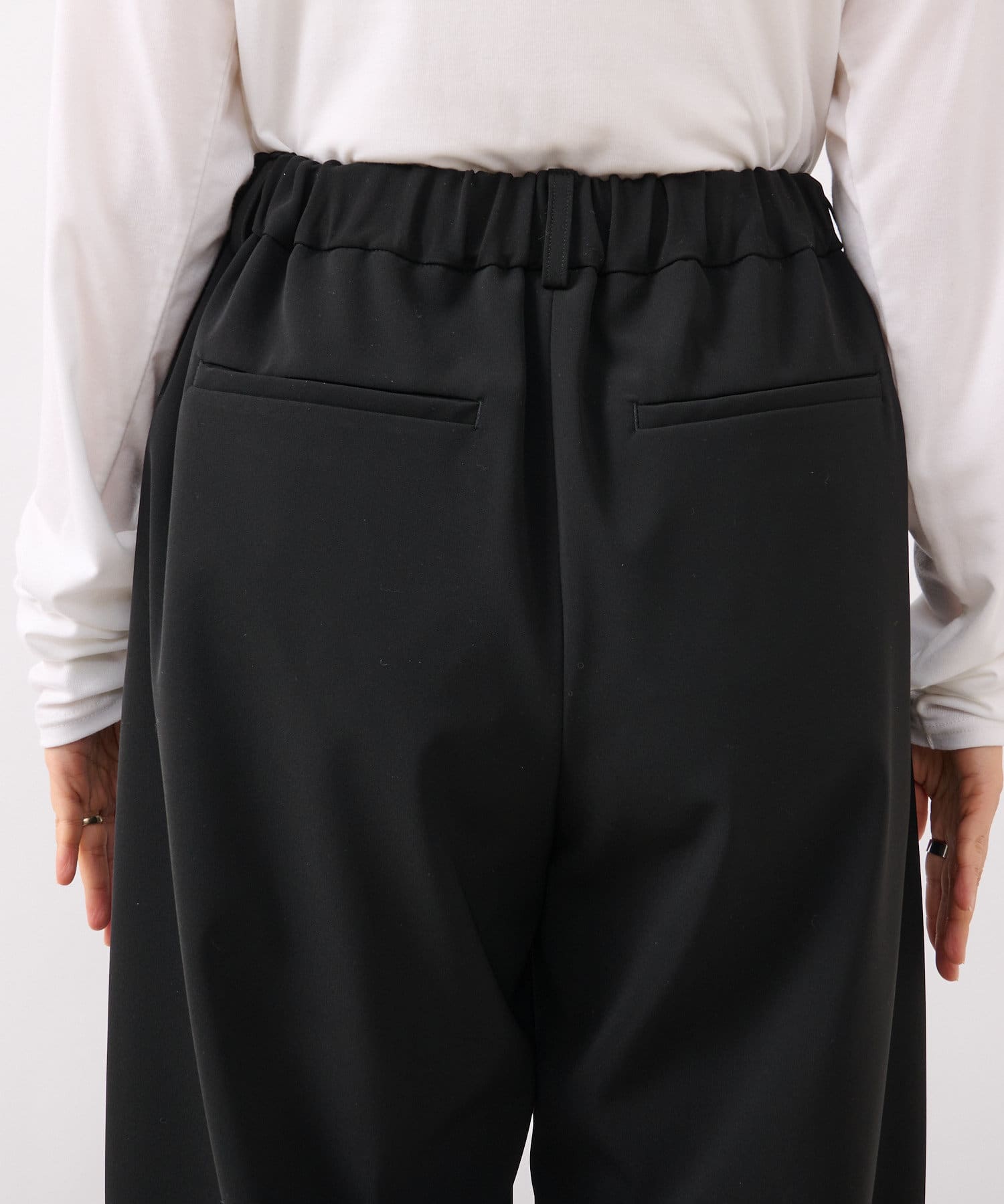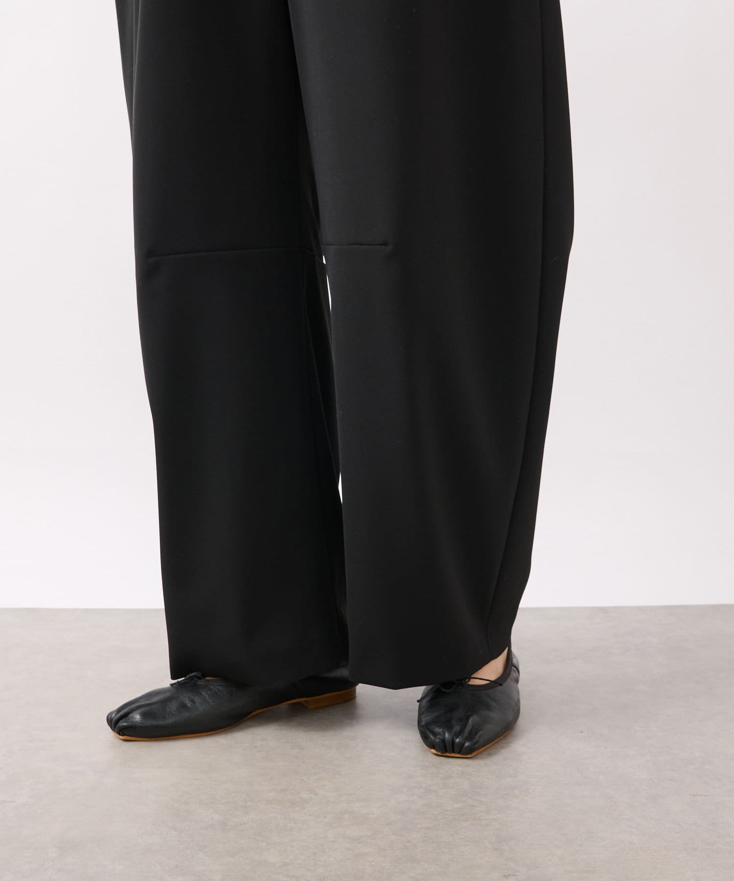 今季トレンドのカーヴィーなバレルシルエットのイージーパンツ。