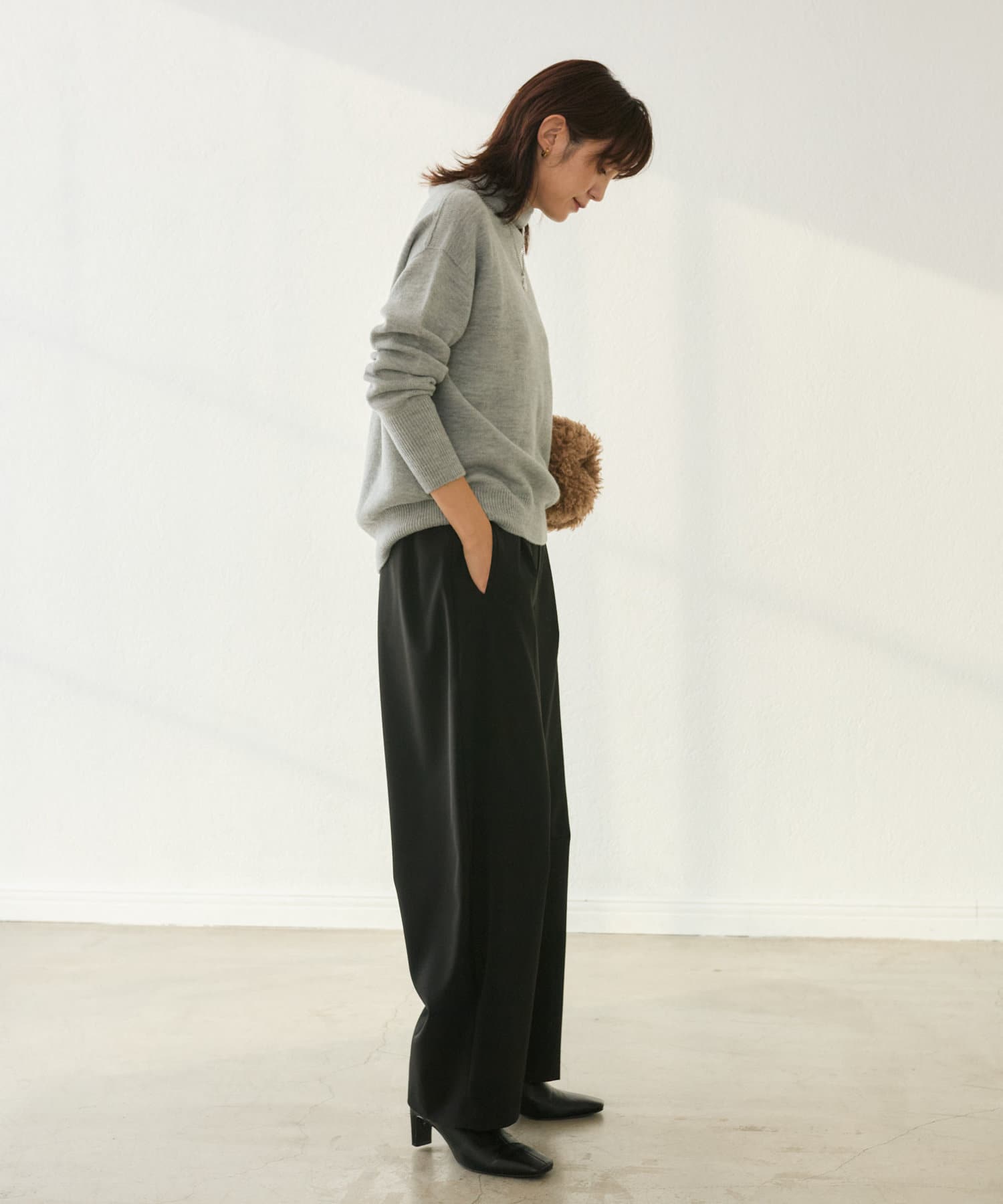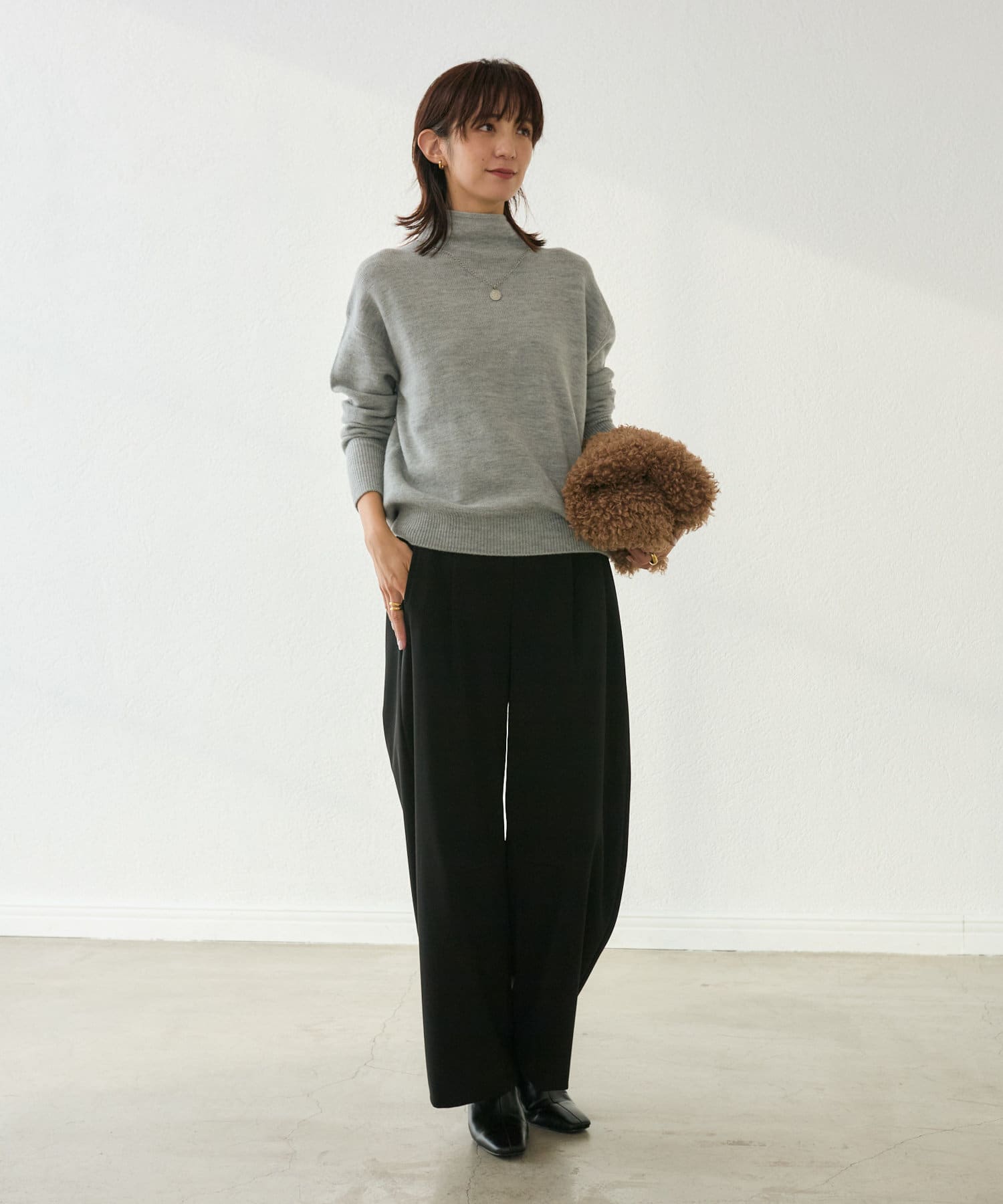 万能に使っていただけるブラックと、冬の重くなりがちなスタイルに軽さを出してくれるアイボリーの2色展開。