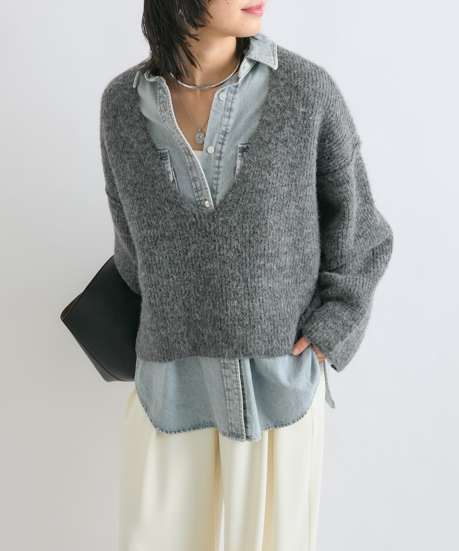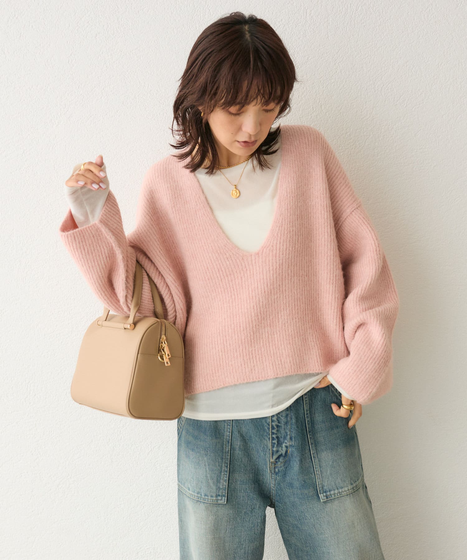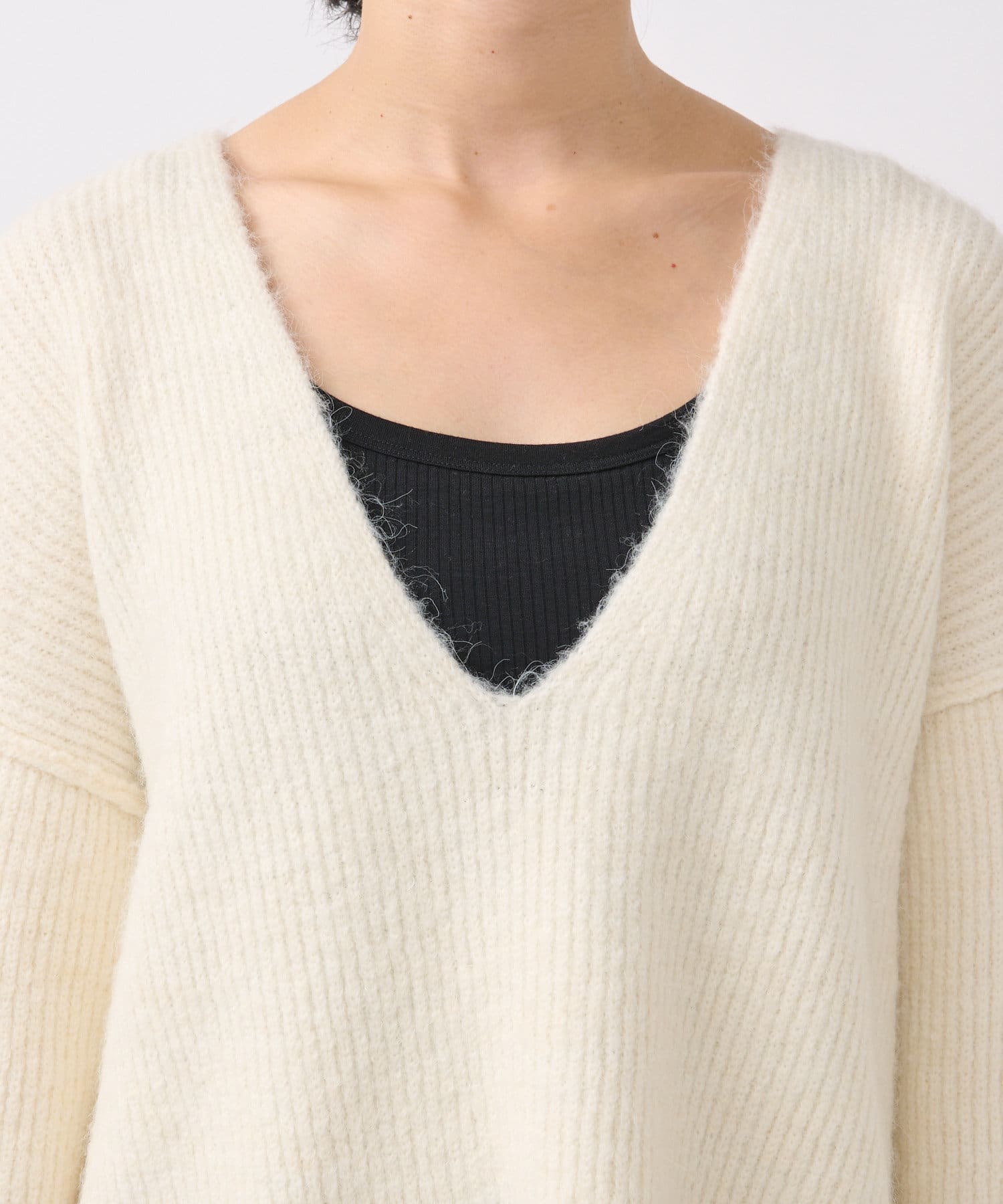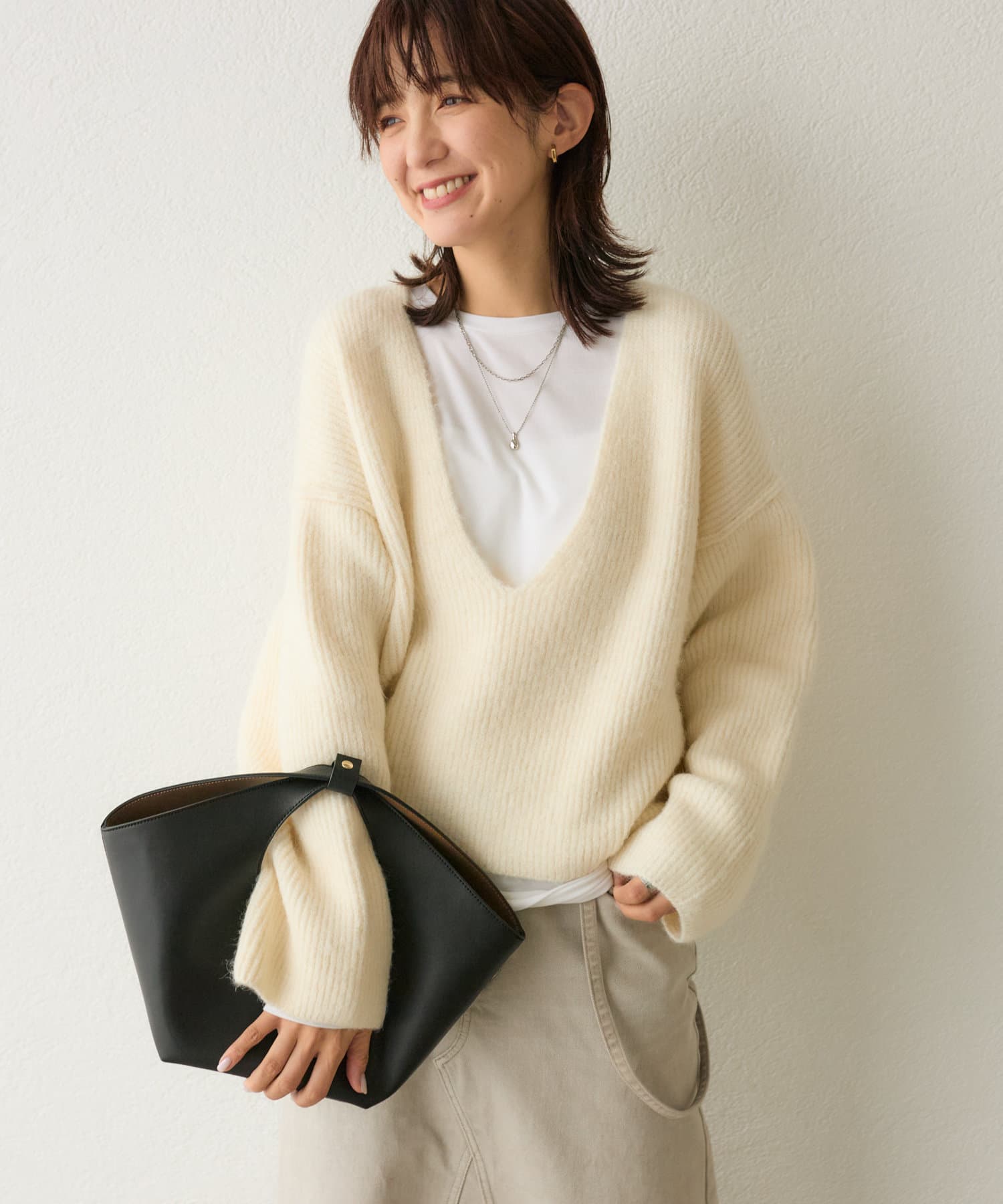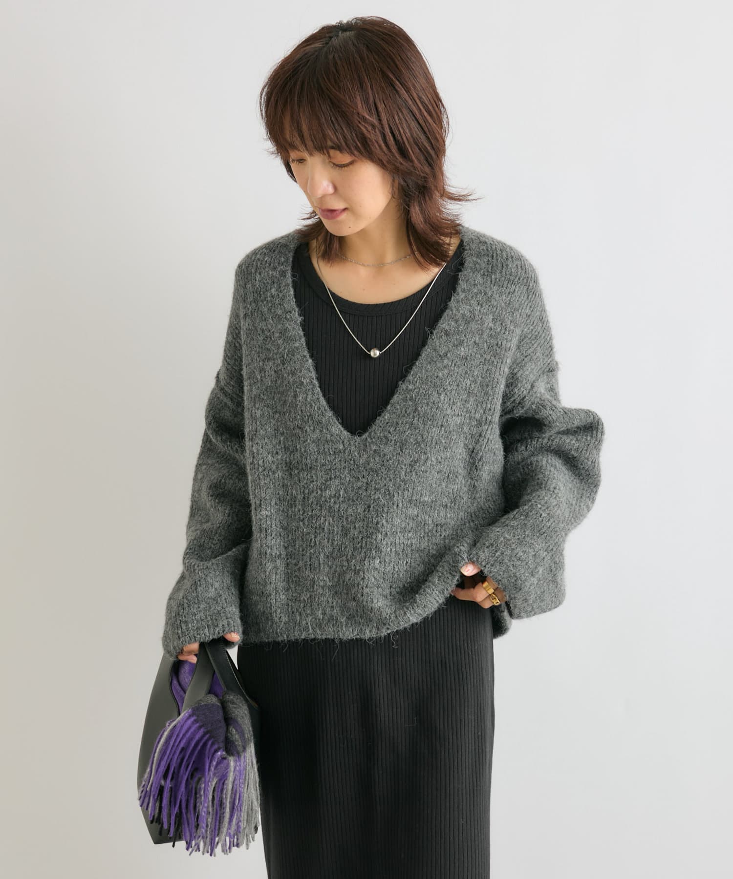 深めに開いたVネックで抜け感のあるニットプルオーバー。