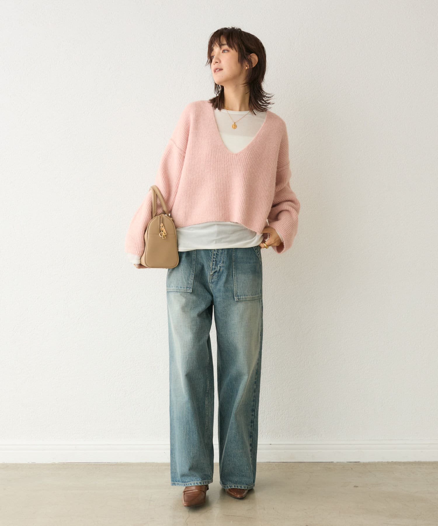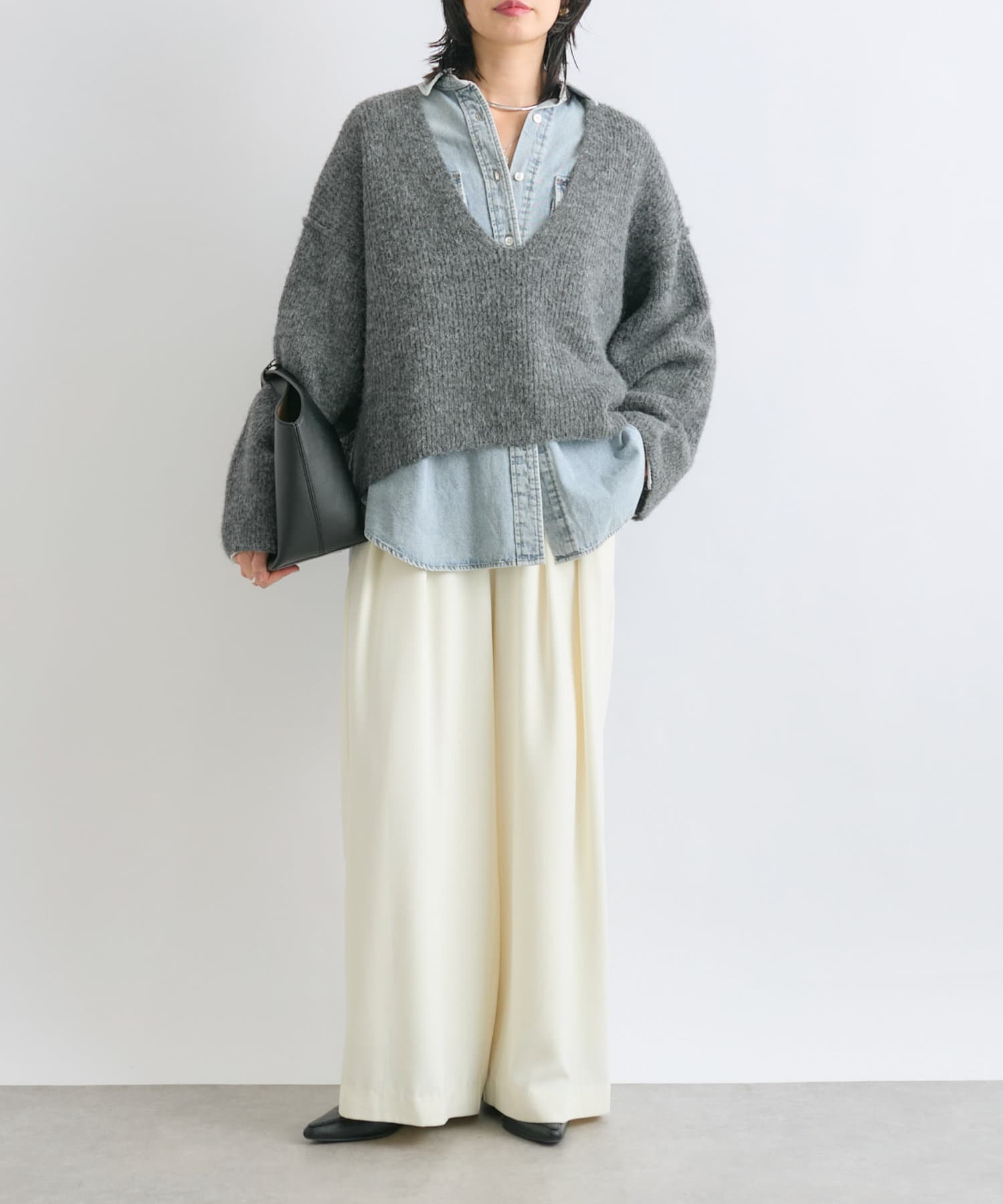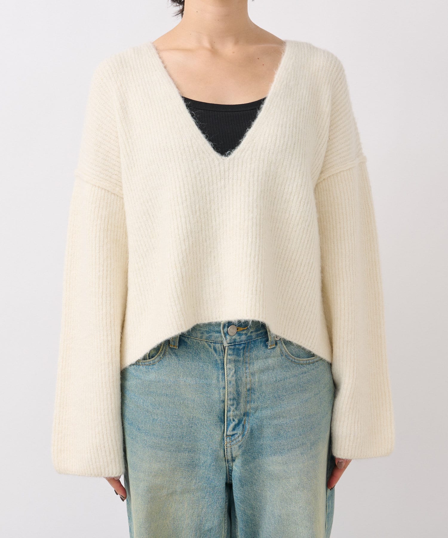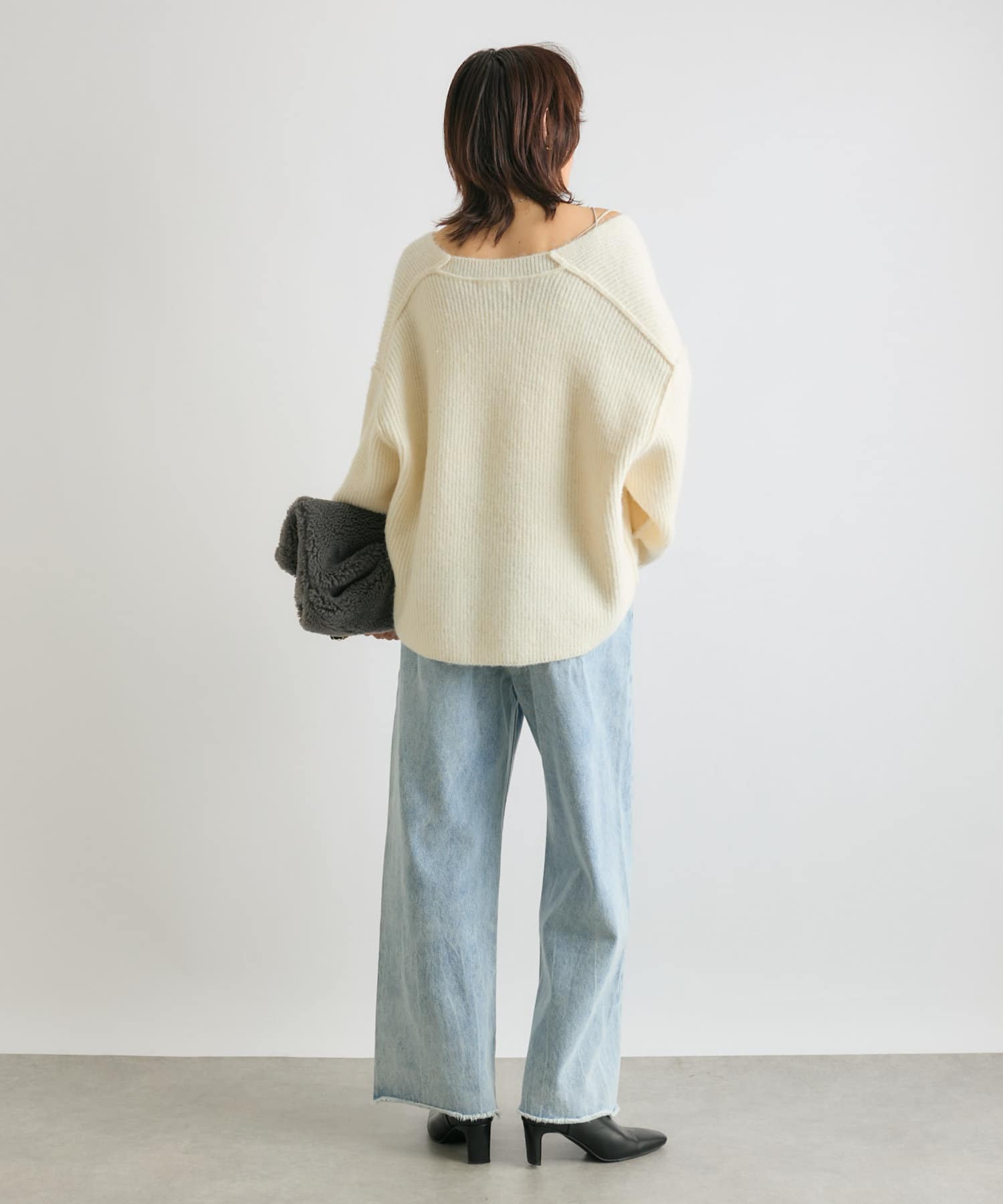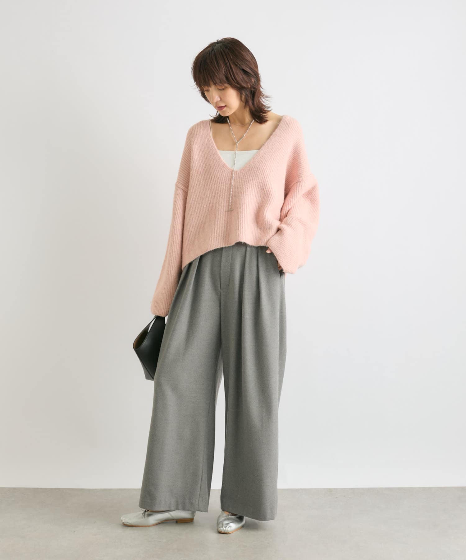 深めに開いたVネックで抜け感のあるニットプルオーバー。