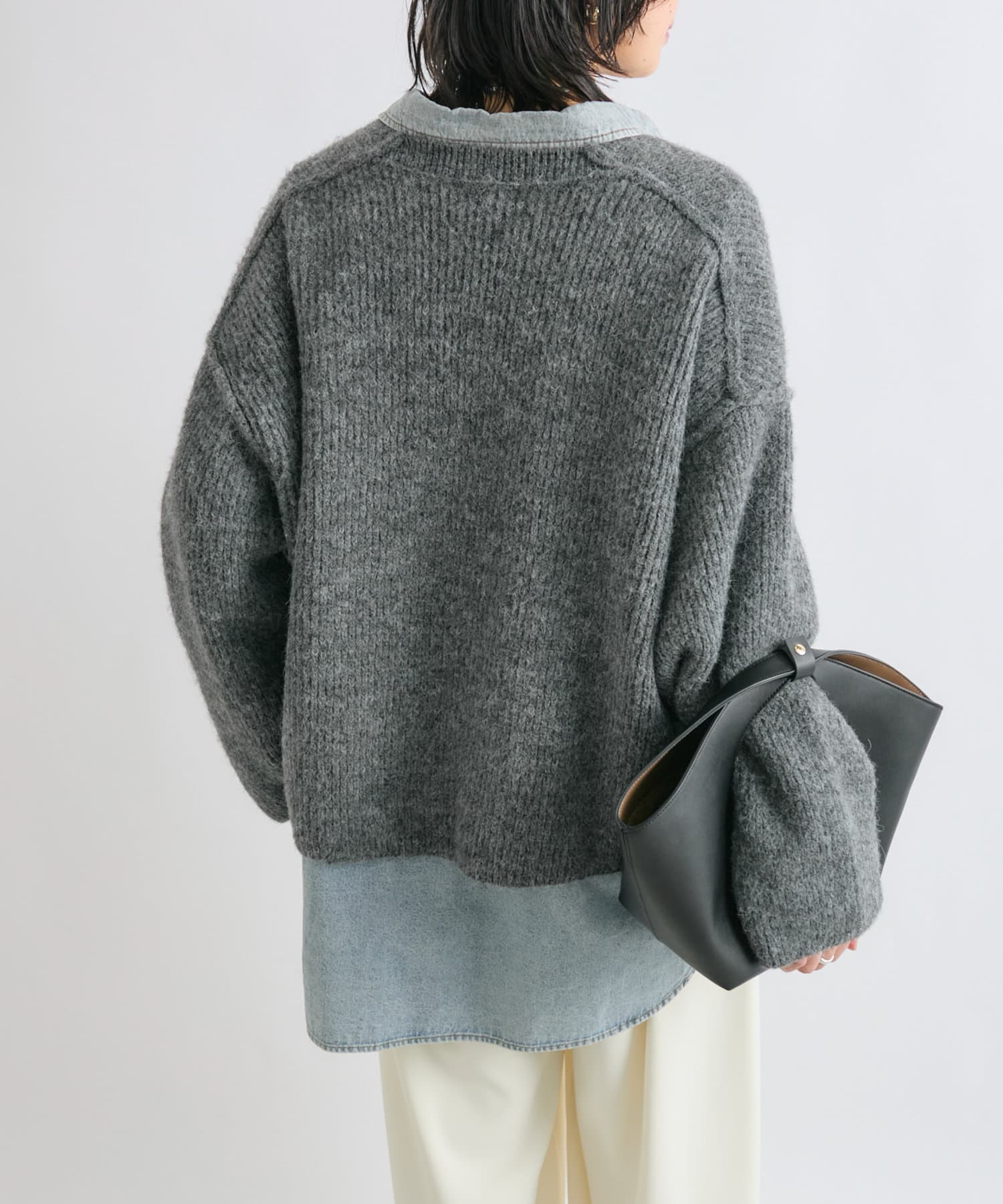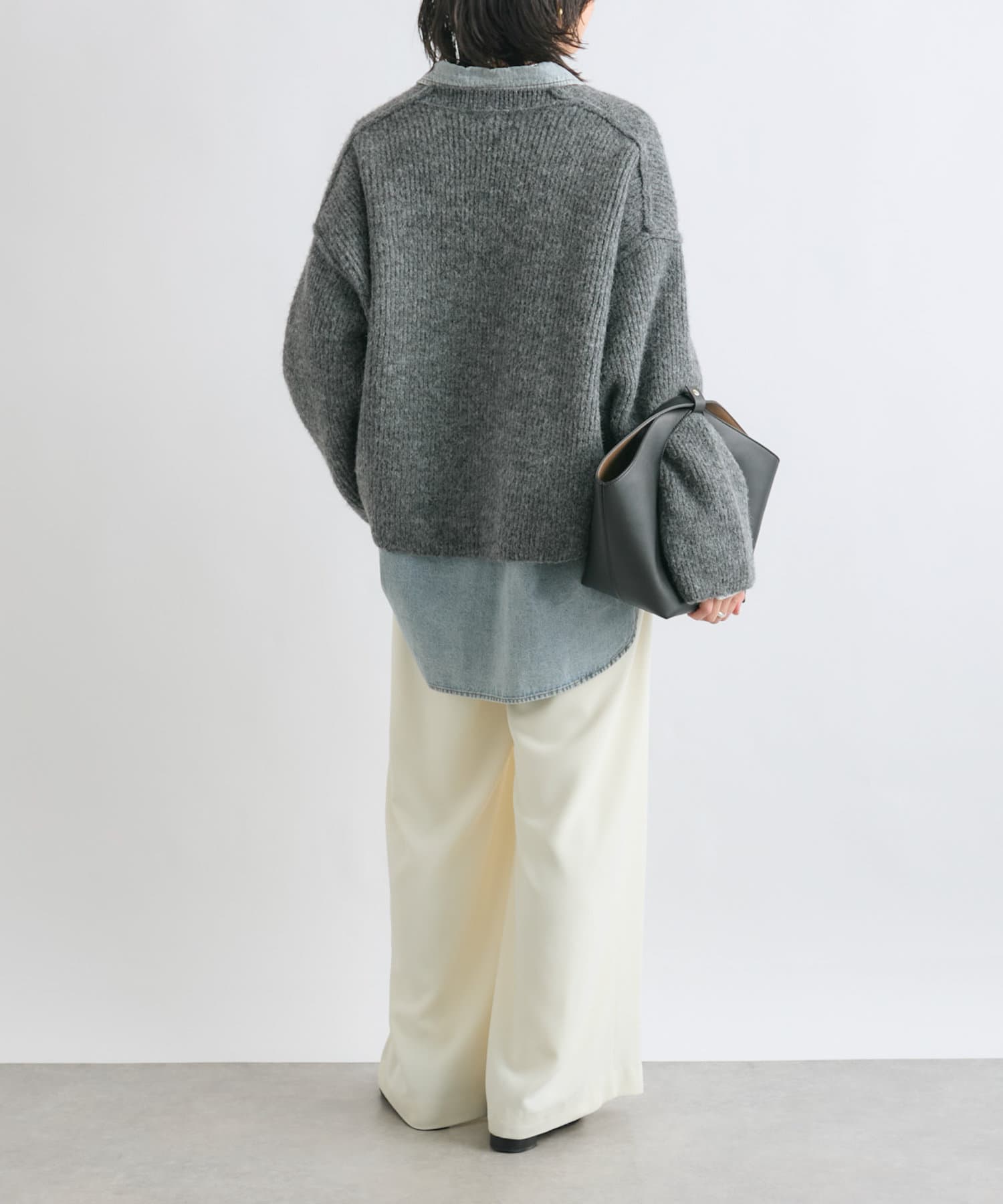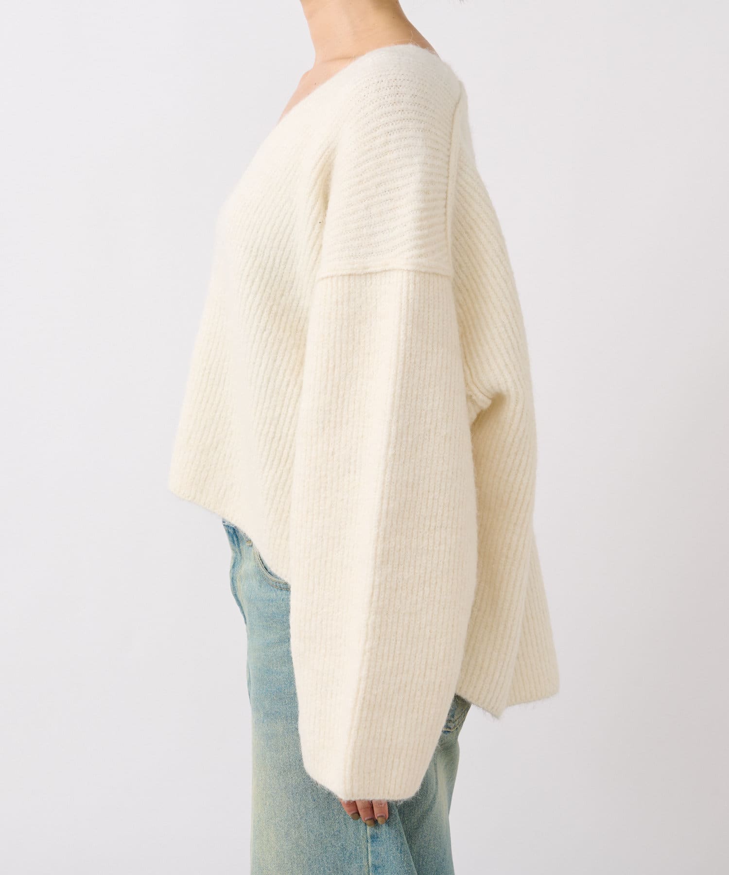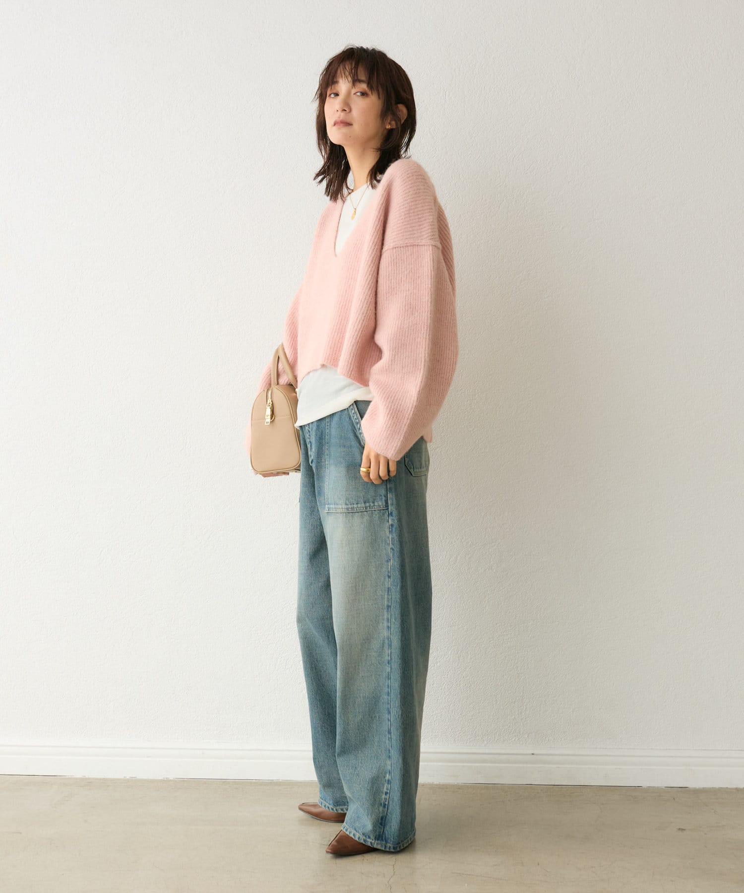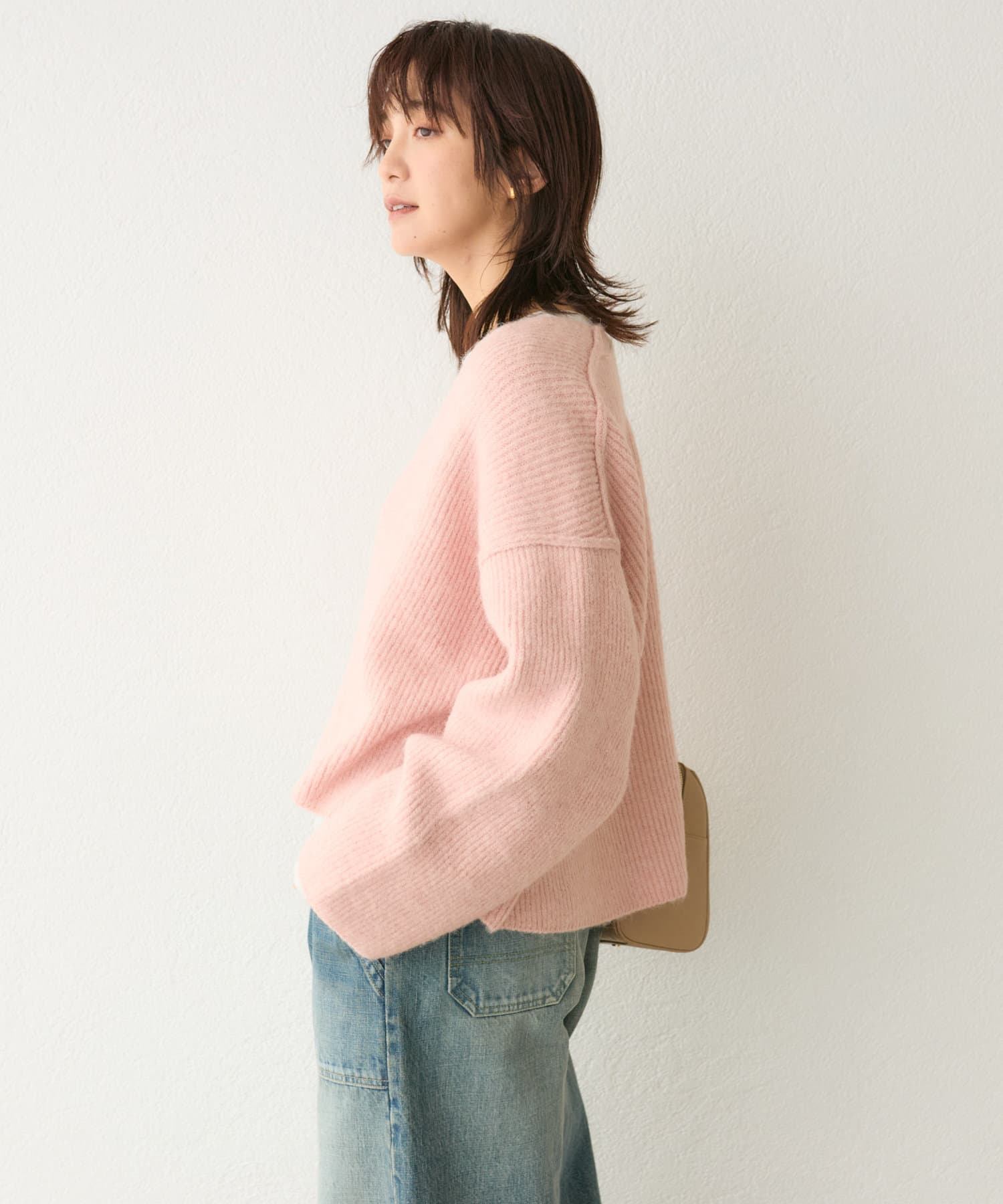 深めに開いたVネックで抜け感のあるニットプルオーバー。