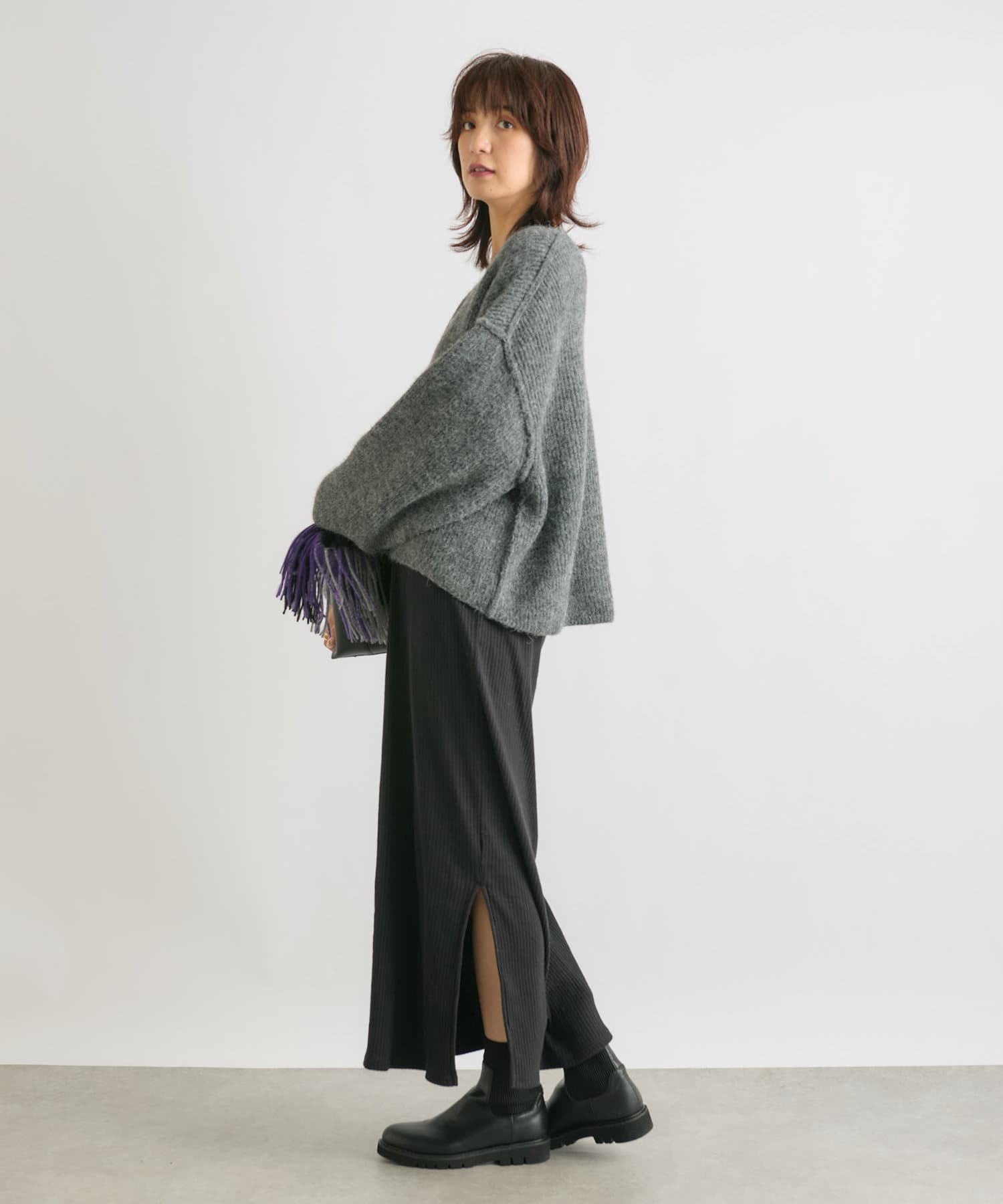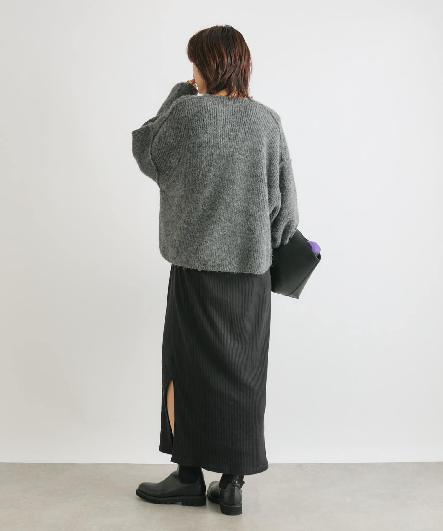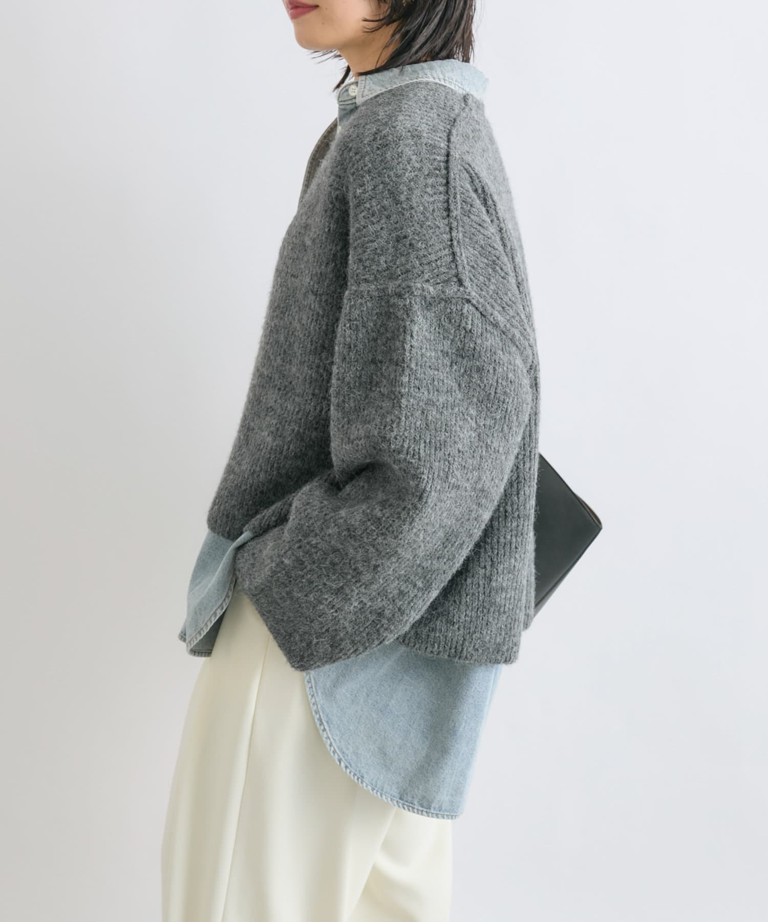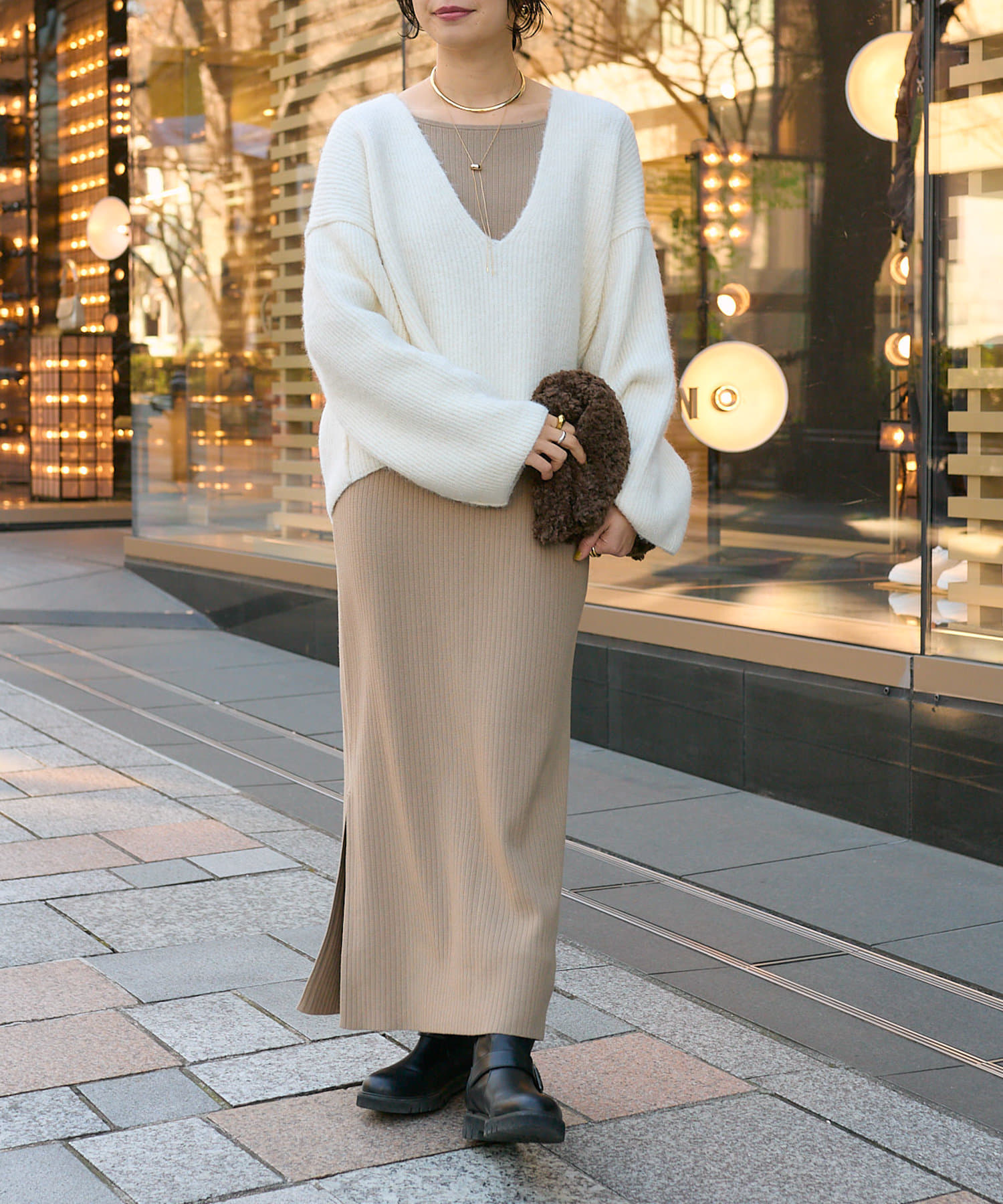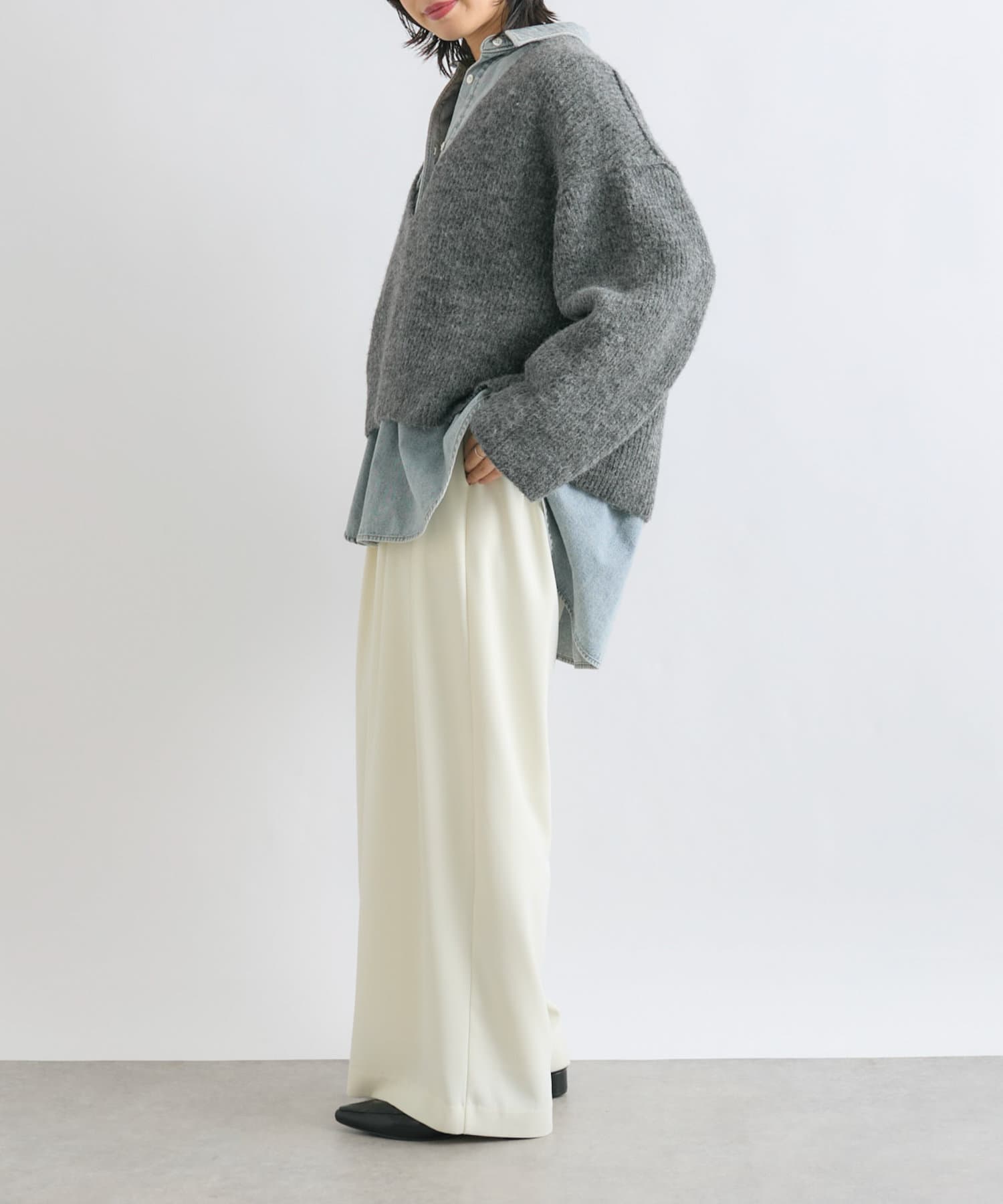 深めに開いたVネックで抜け感のあるニットプルオーバー。