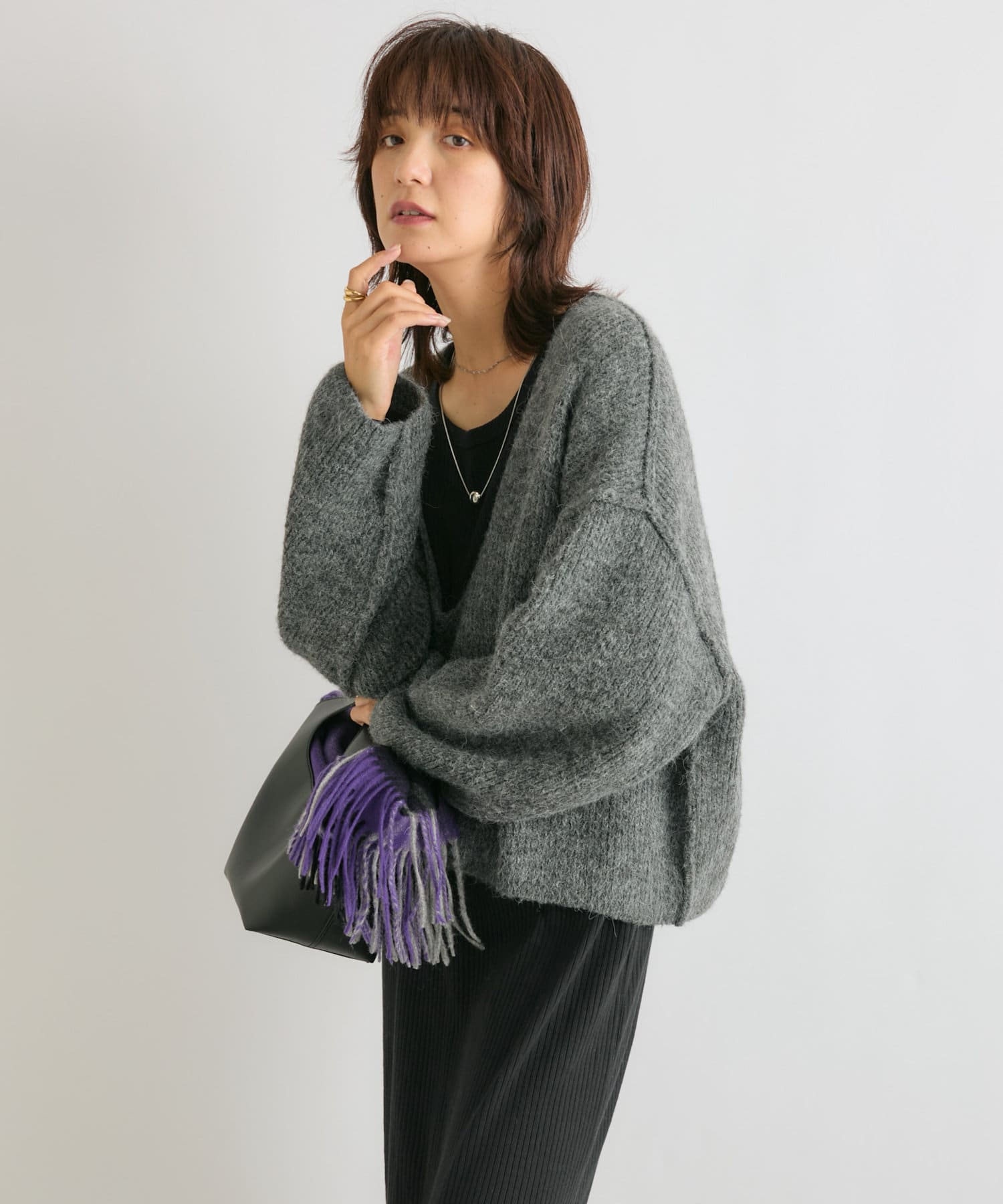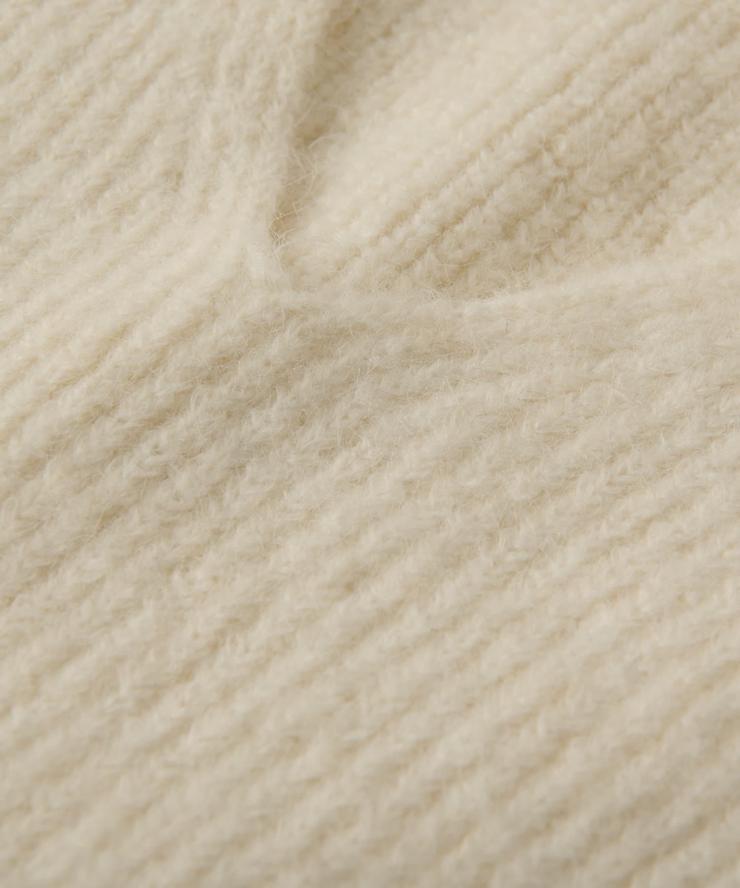 ふっくらとした風合いで、畦編みの表情のある編地になっております。