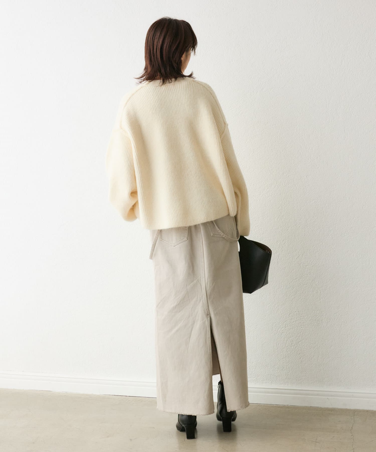 ゆったりしたサイズ感ですが、着丈を短めにすることでバランスよく着ていただけます。