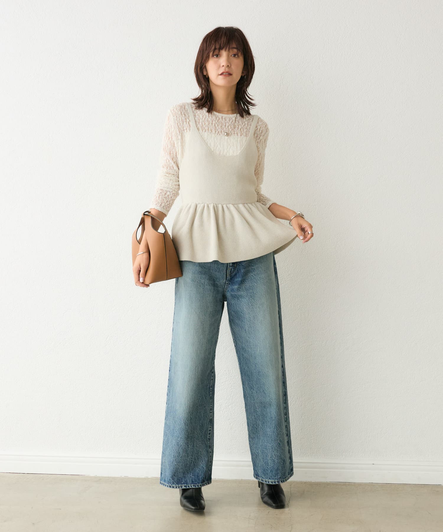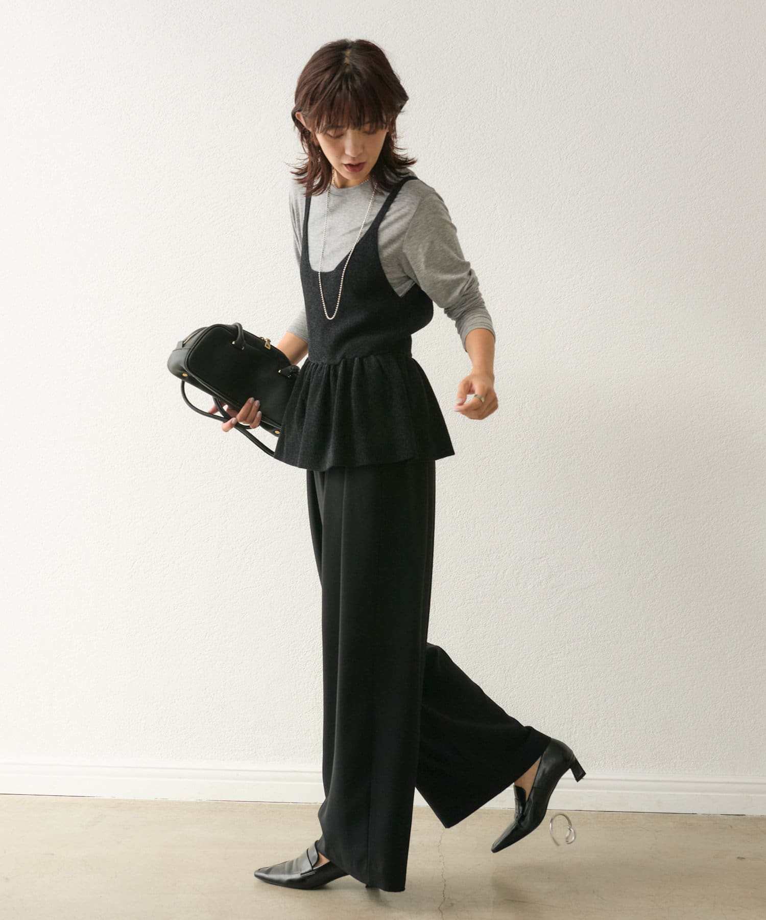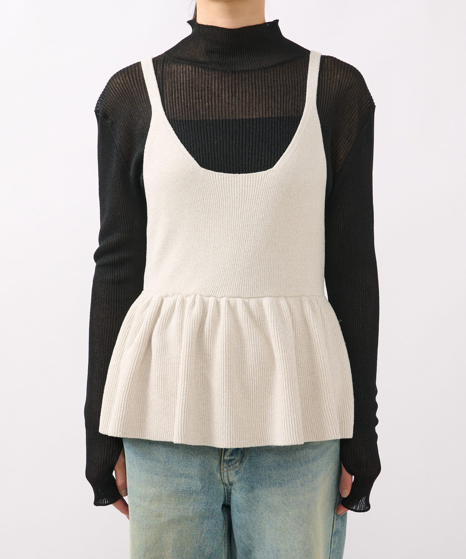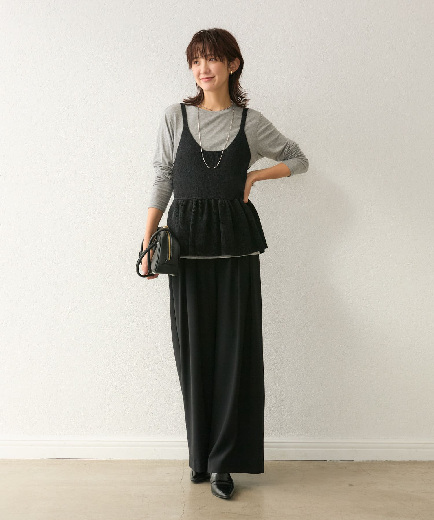【コーデのポイントに】ペプラムニットキャミ