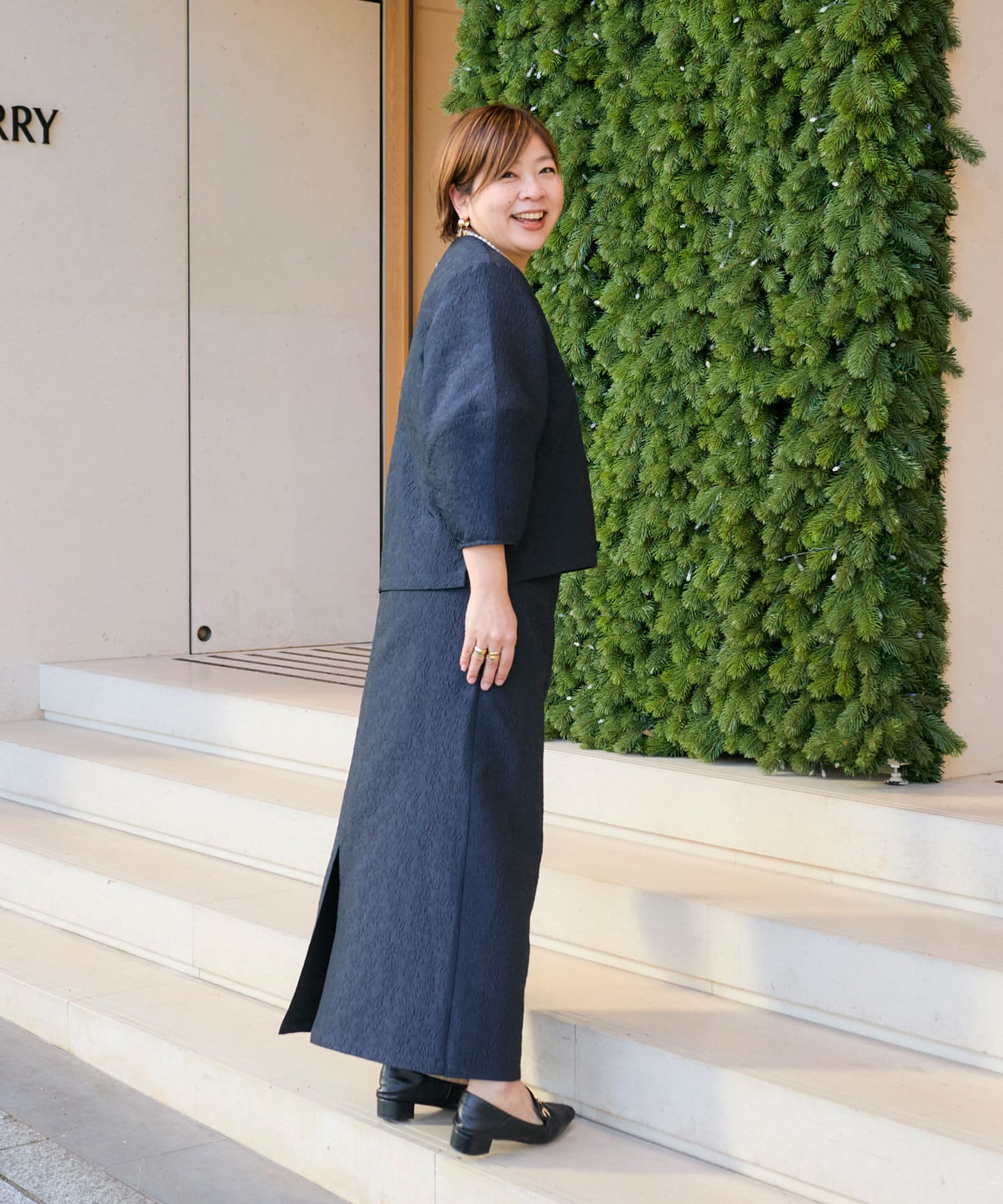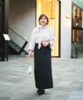 着丈も長めにして脚長効果出しています。後ろスリットもあるので足捌きもバッチリ!歩きやすいです。