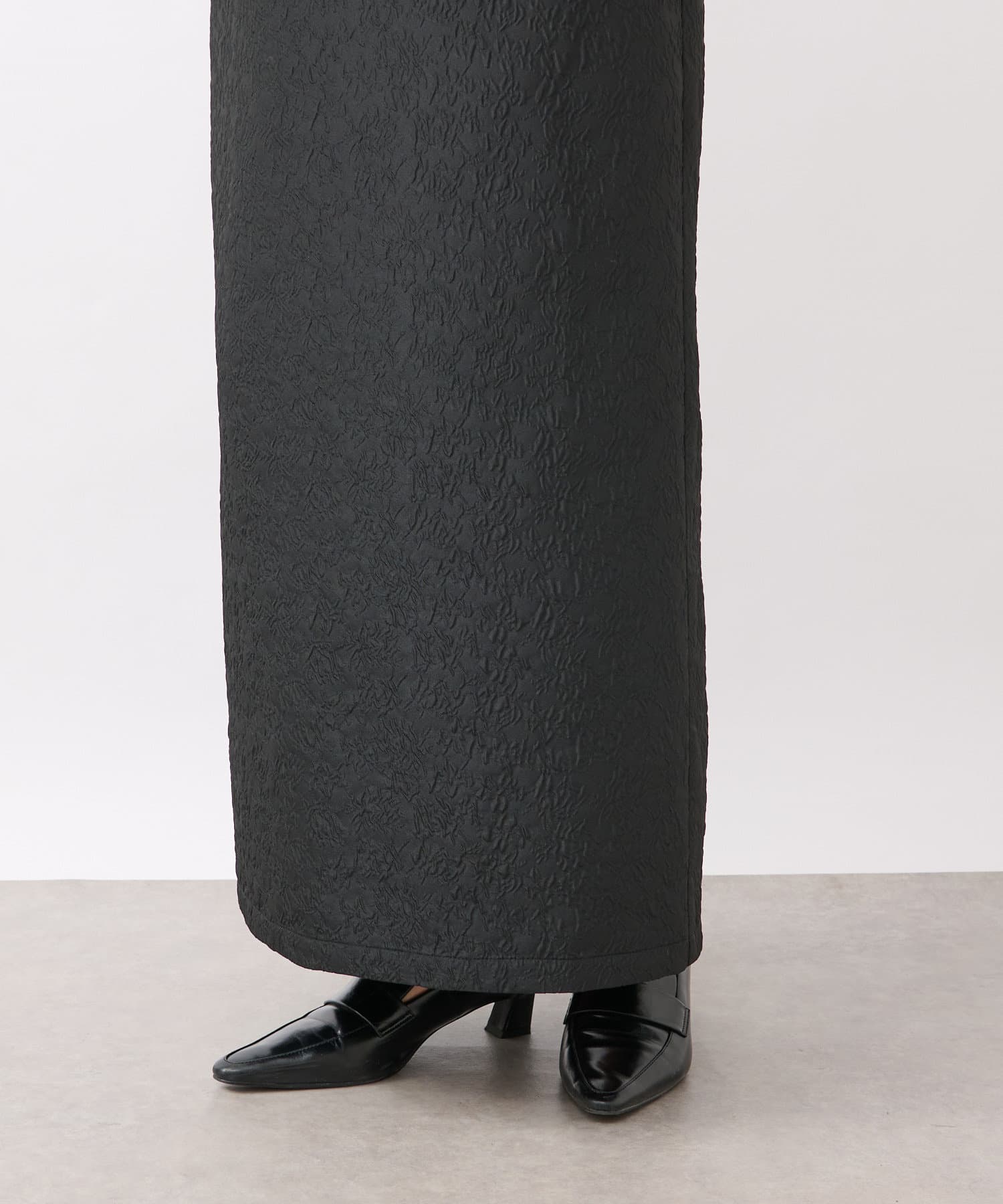 立体感のあるジャガード素材で通年着ていただけるスカート。