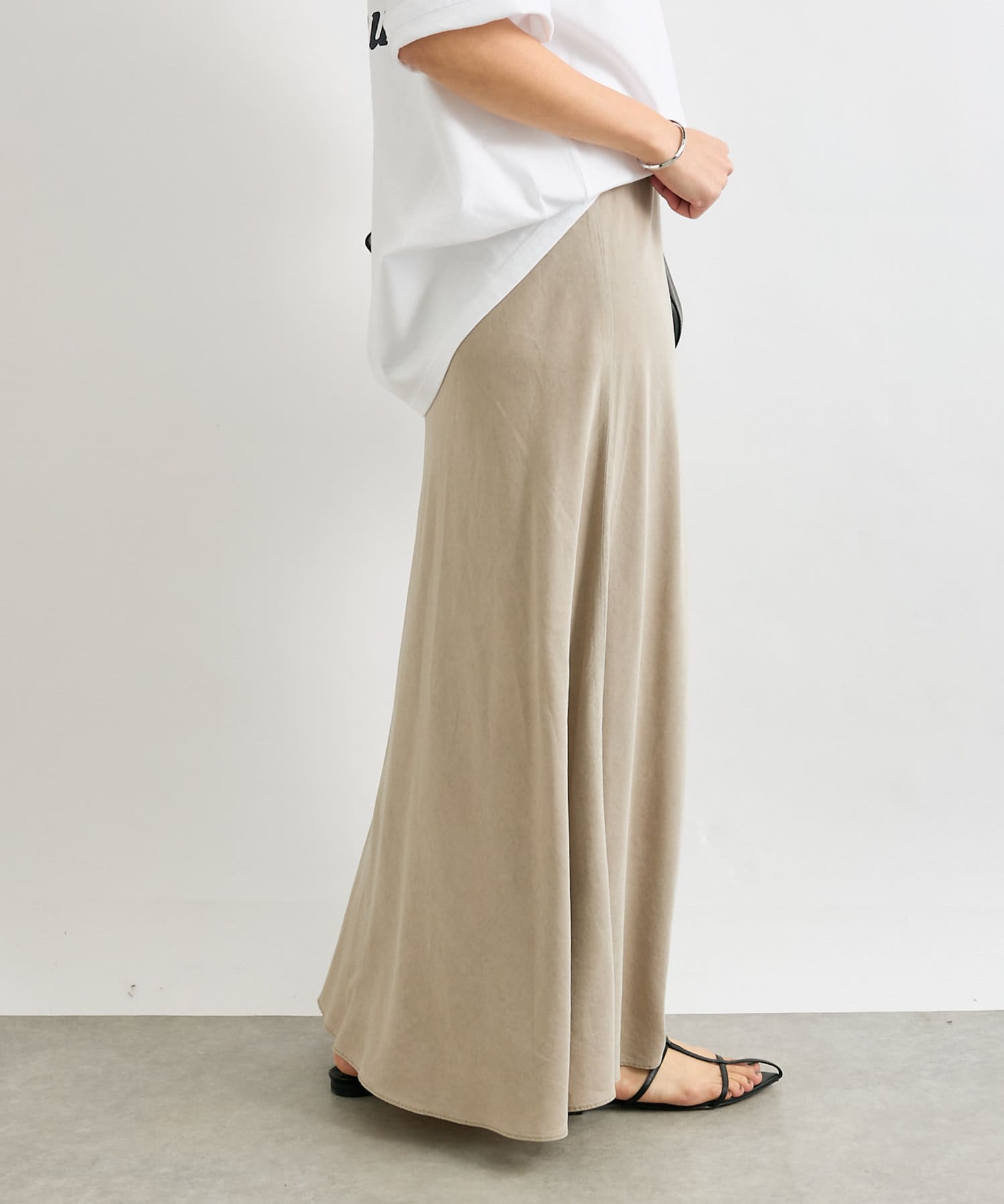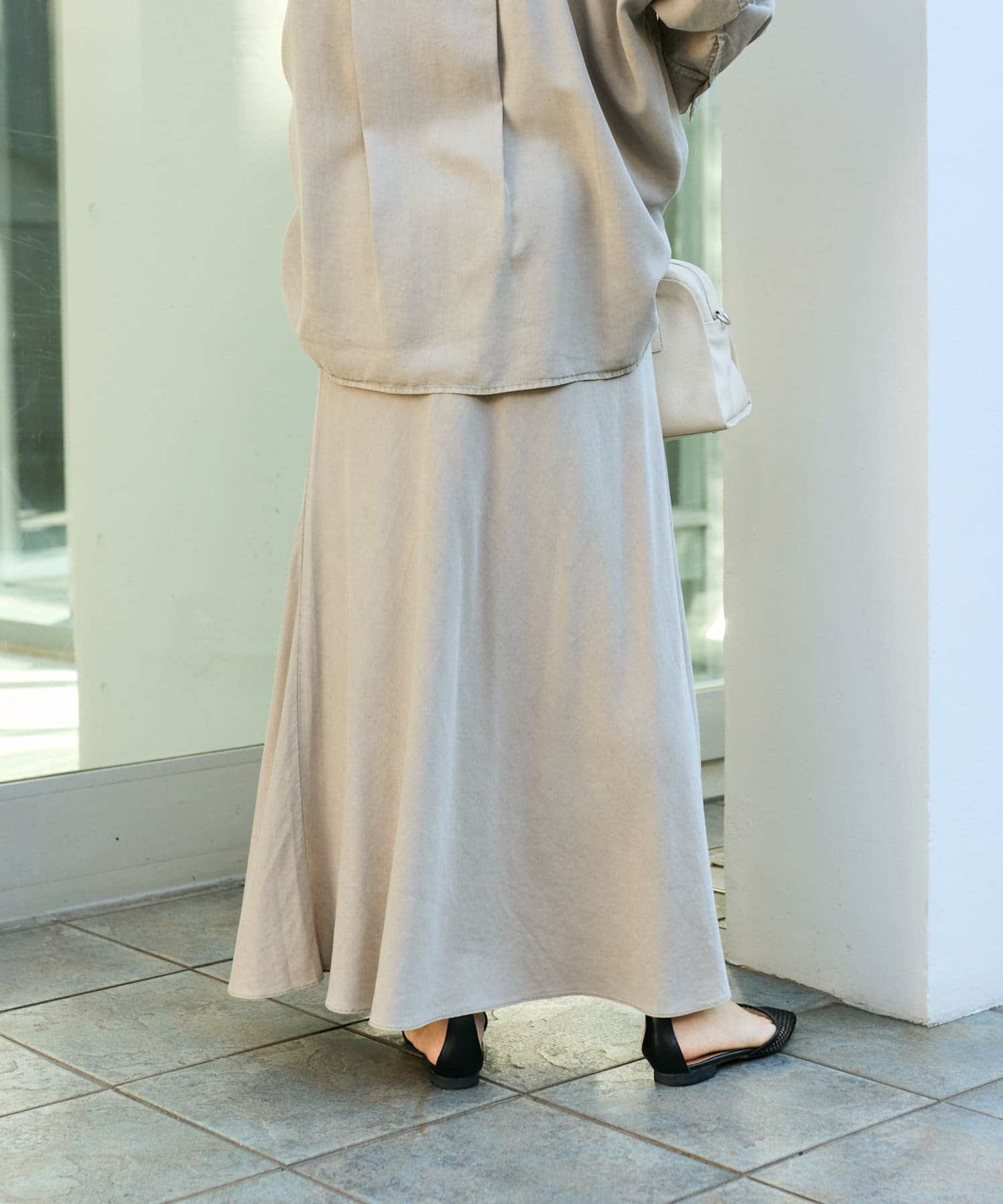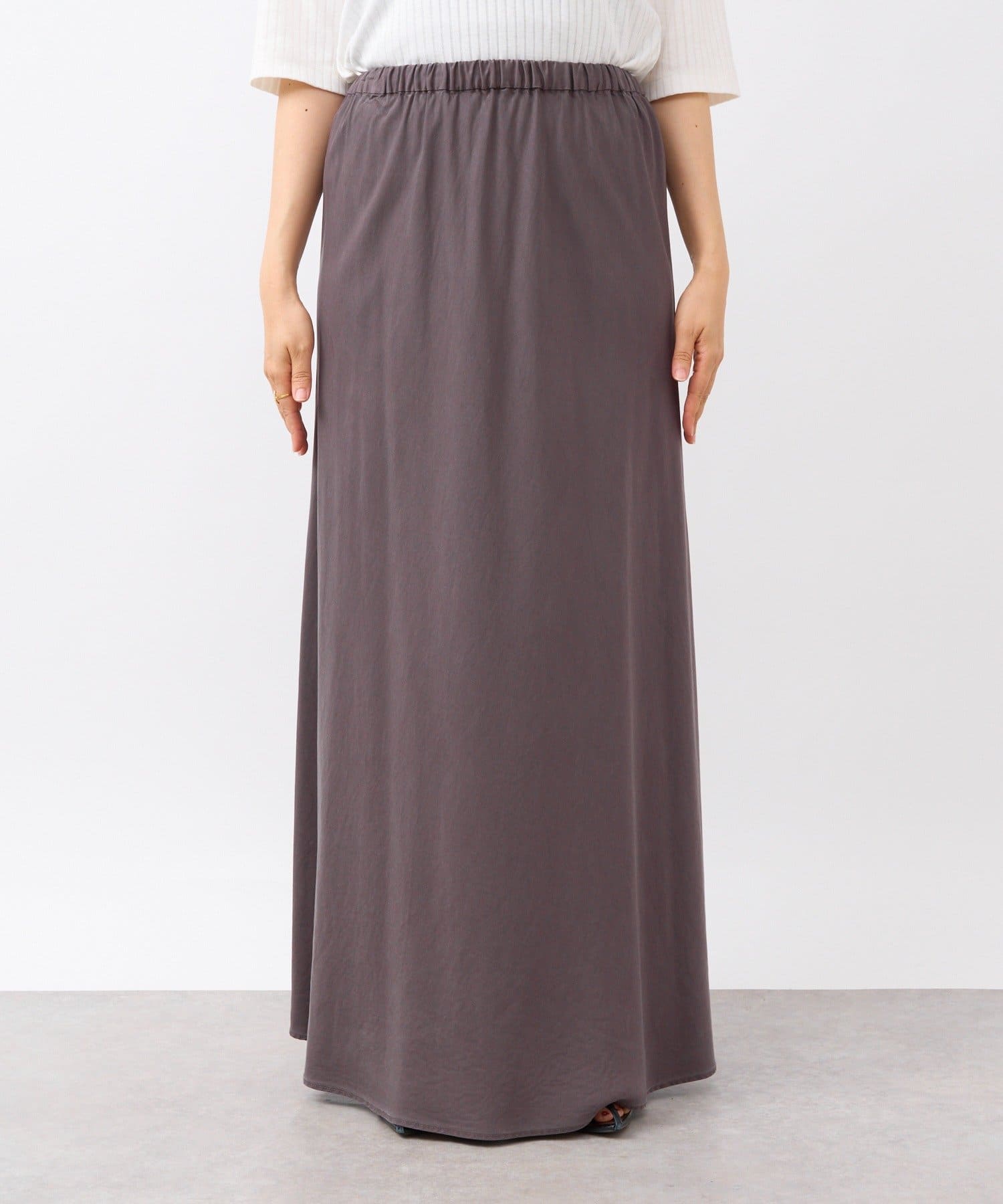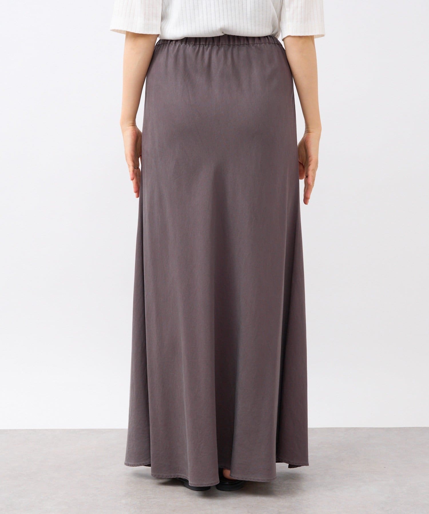 落ち感のあるテンセルツイルを使用し、製品染を施したバイヤススカート。